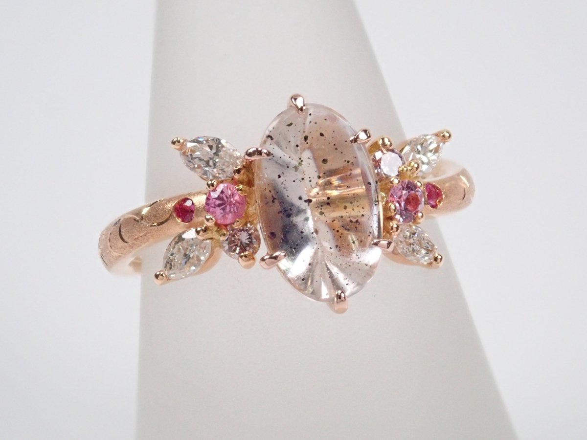 K18PG 小叮噹石英(粉紅火石英)1.512 克拉戒指