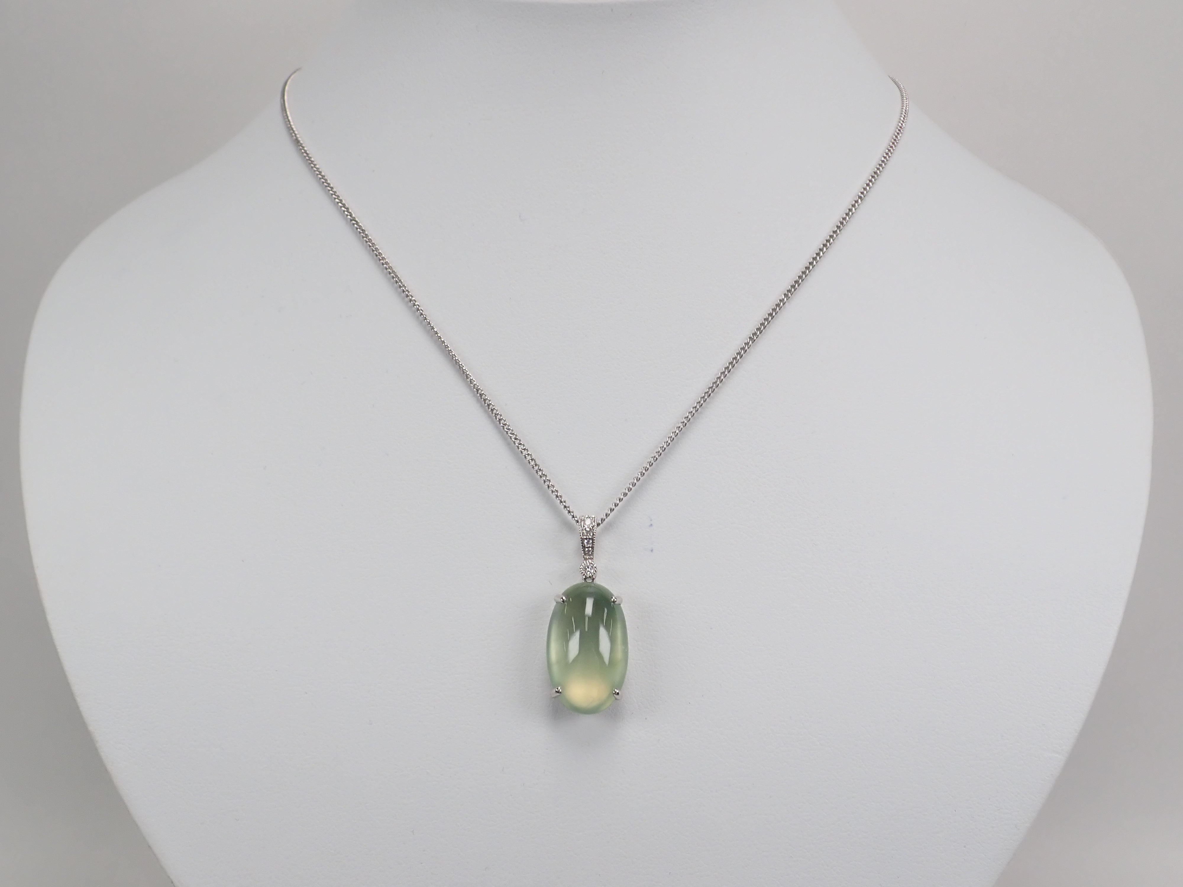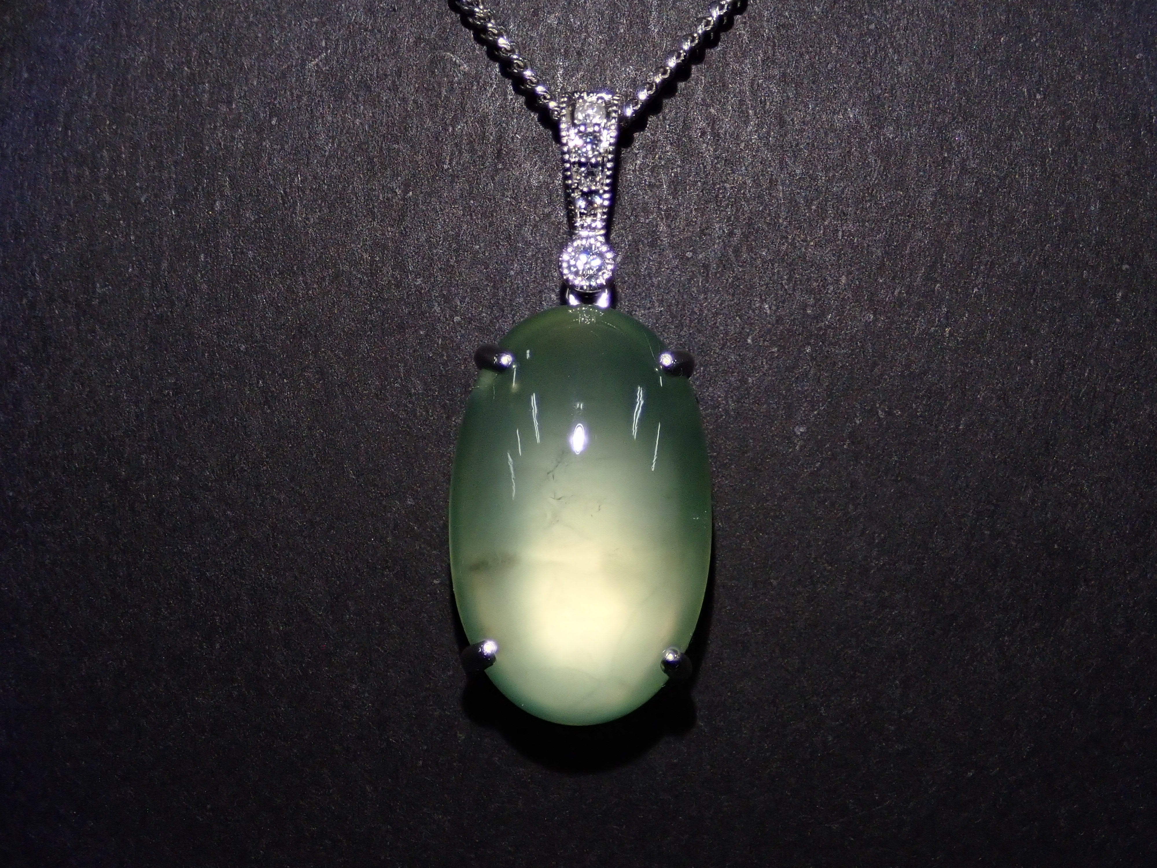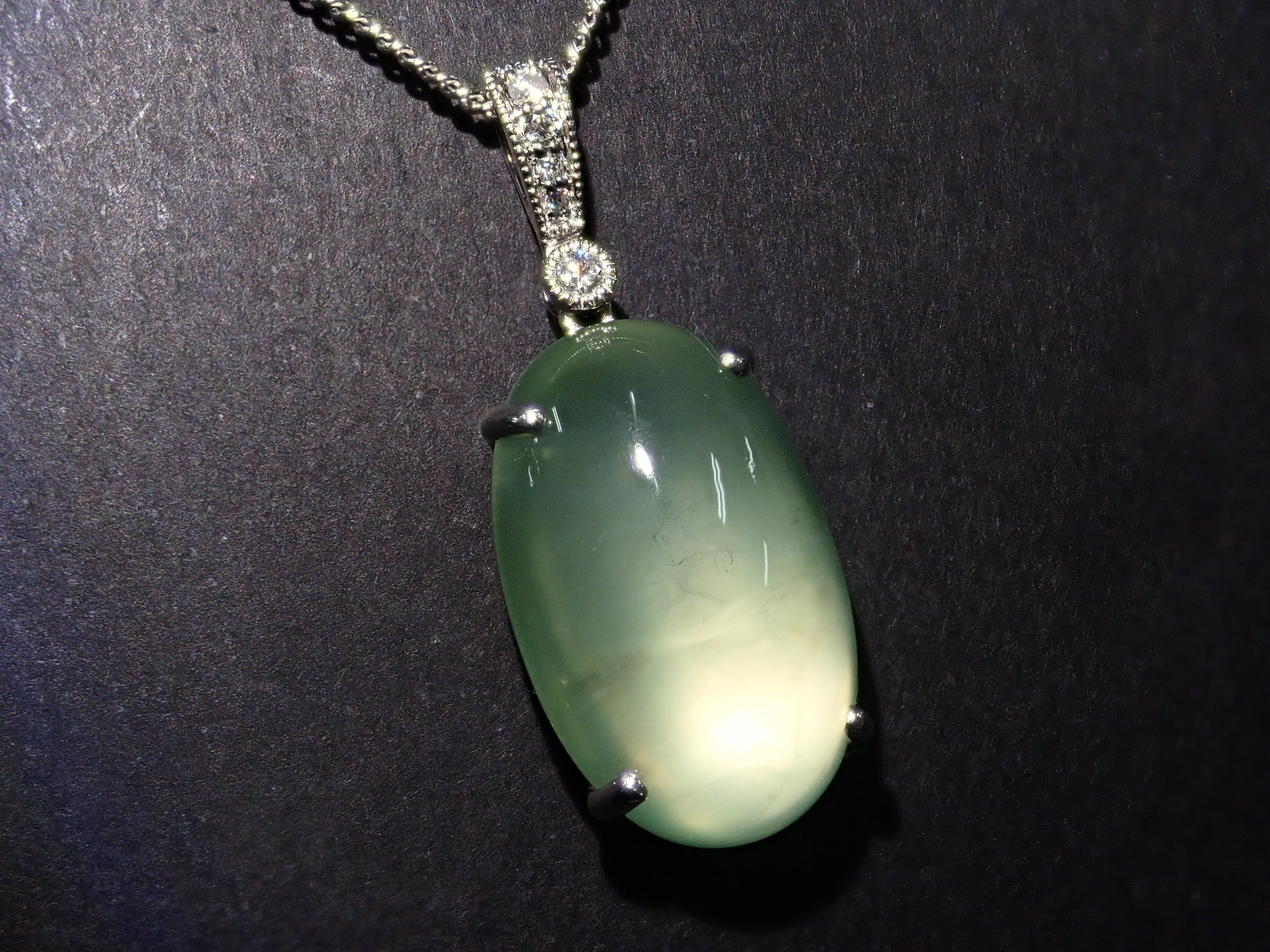 這是一款玩耍之夜項鍊上衣。葡萄石的日文名稱是“葡萄石”,以原石計算,因其呈簇狀出現,如桶狀晶體或葡萄串而得名。油膩的綠色使胸部顯得華麗。它是 Pt950,重 6.6 克。