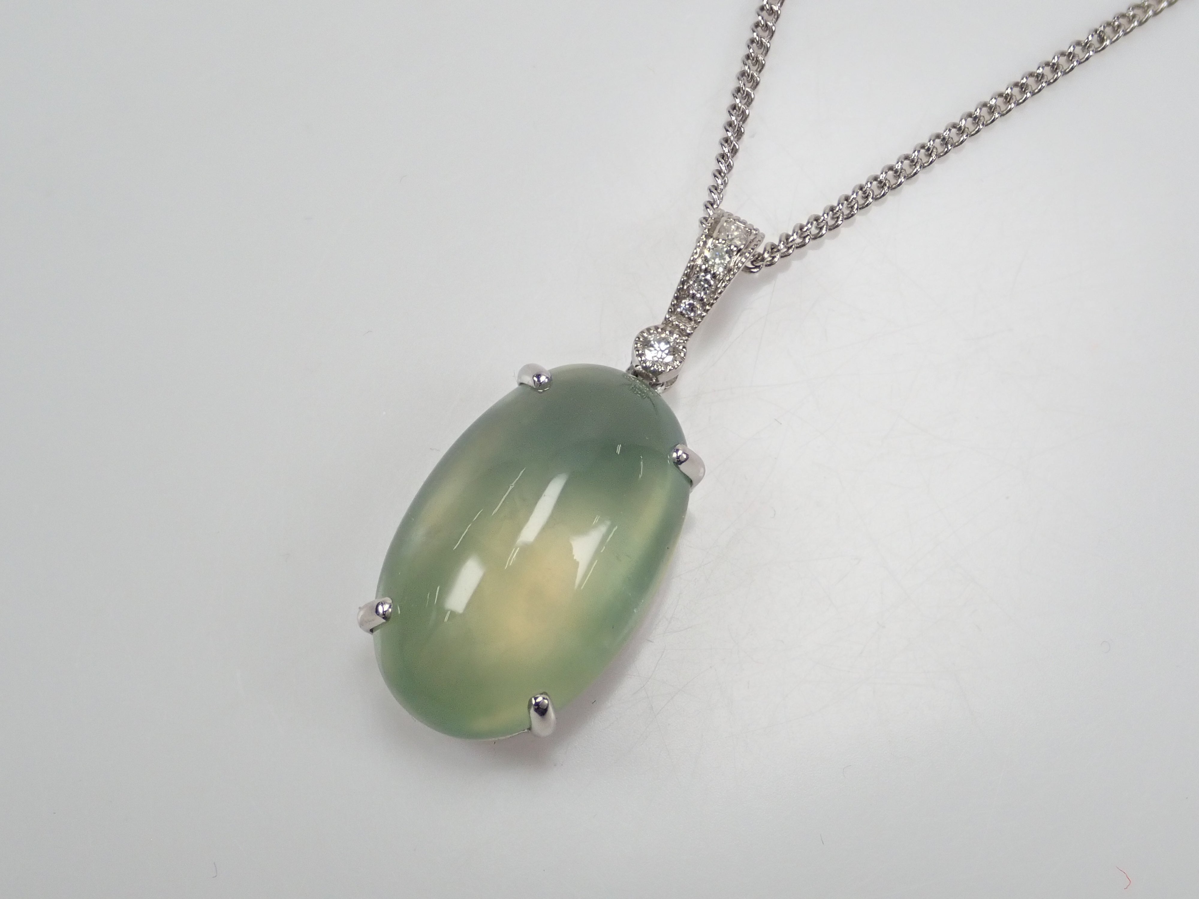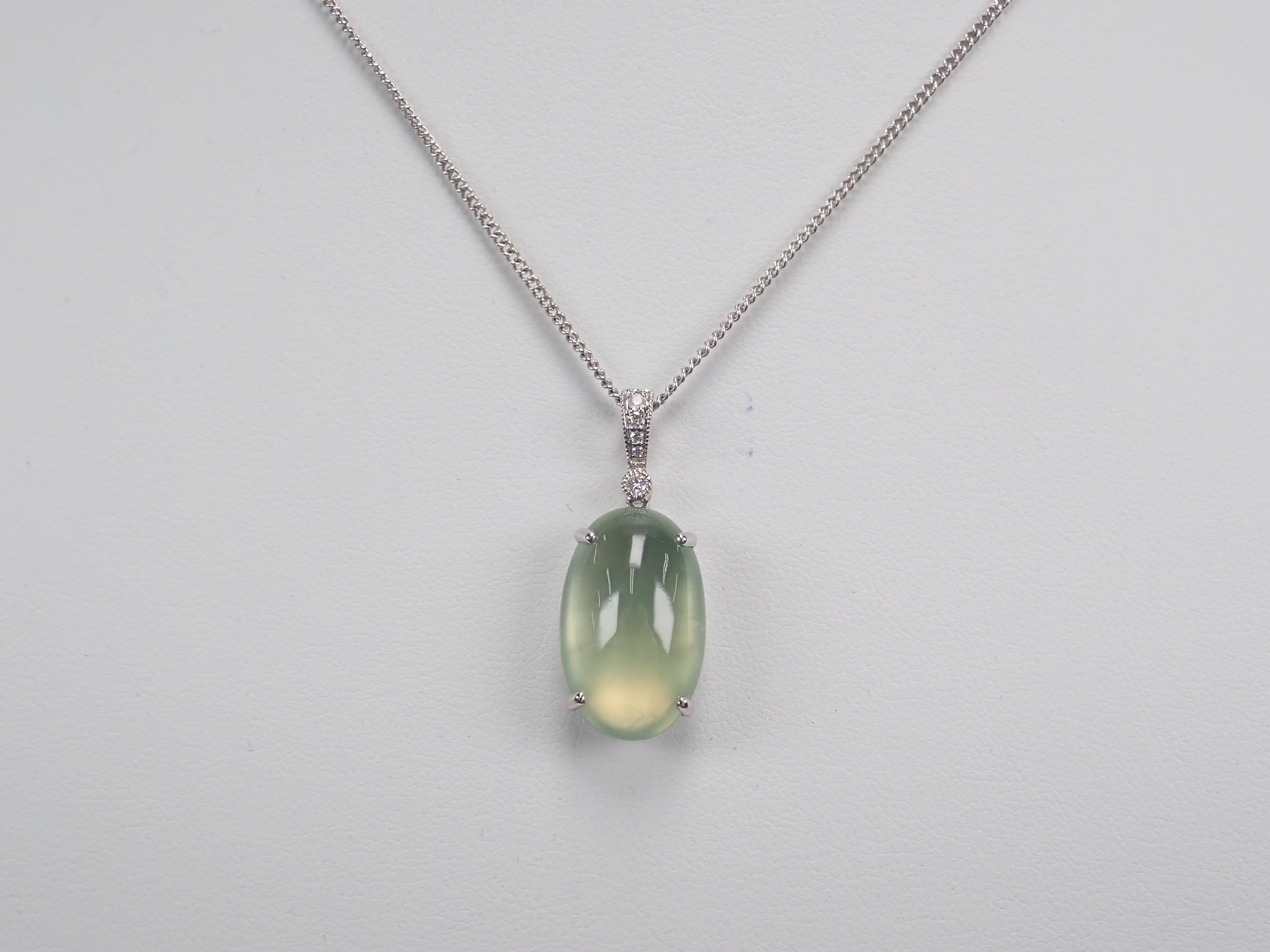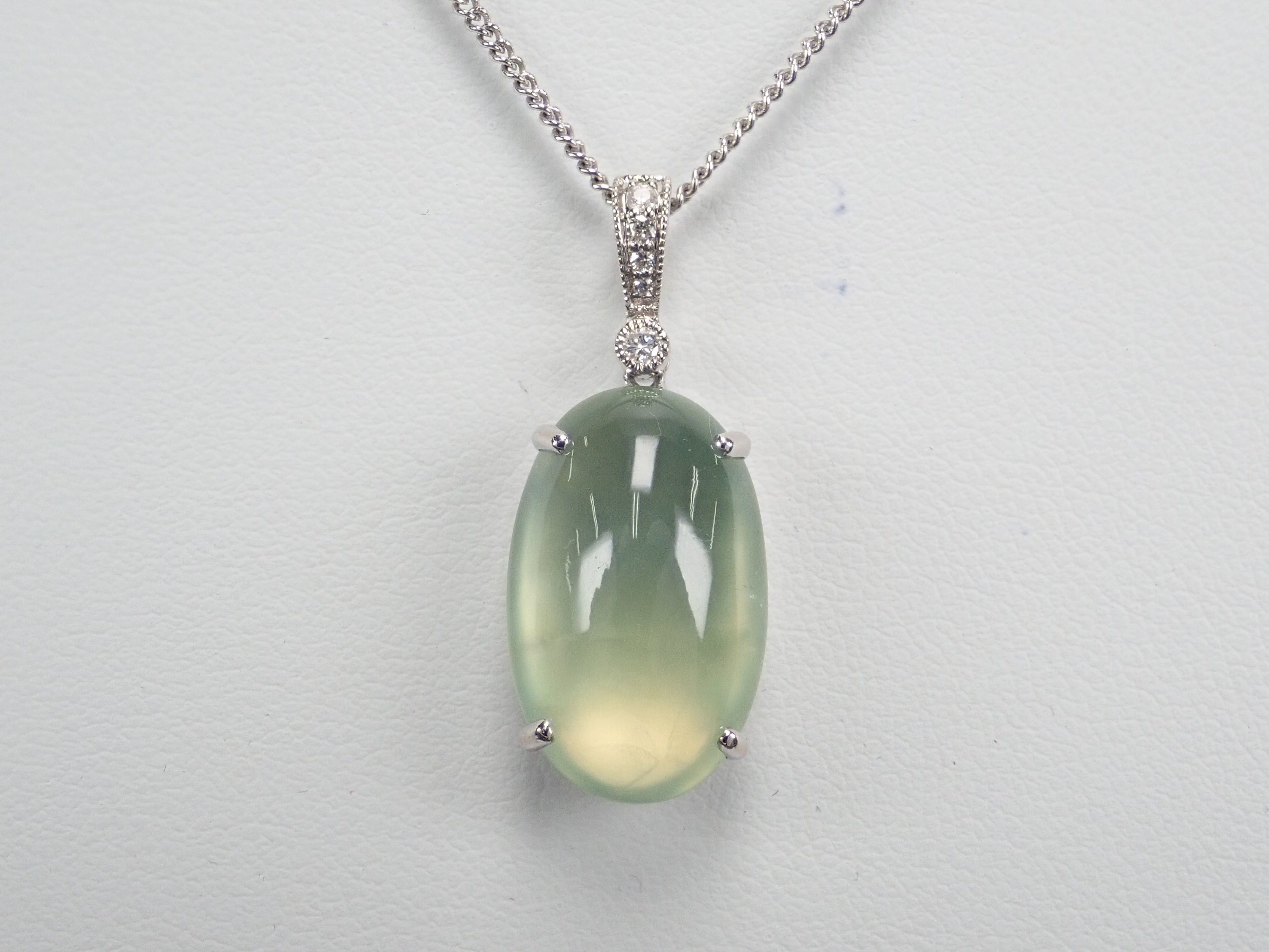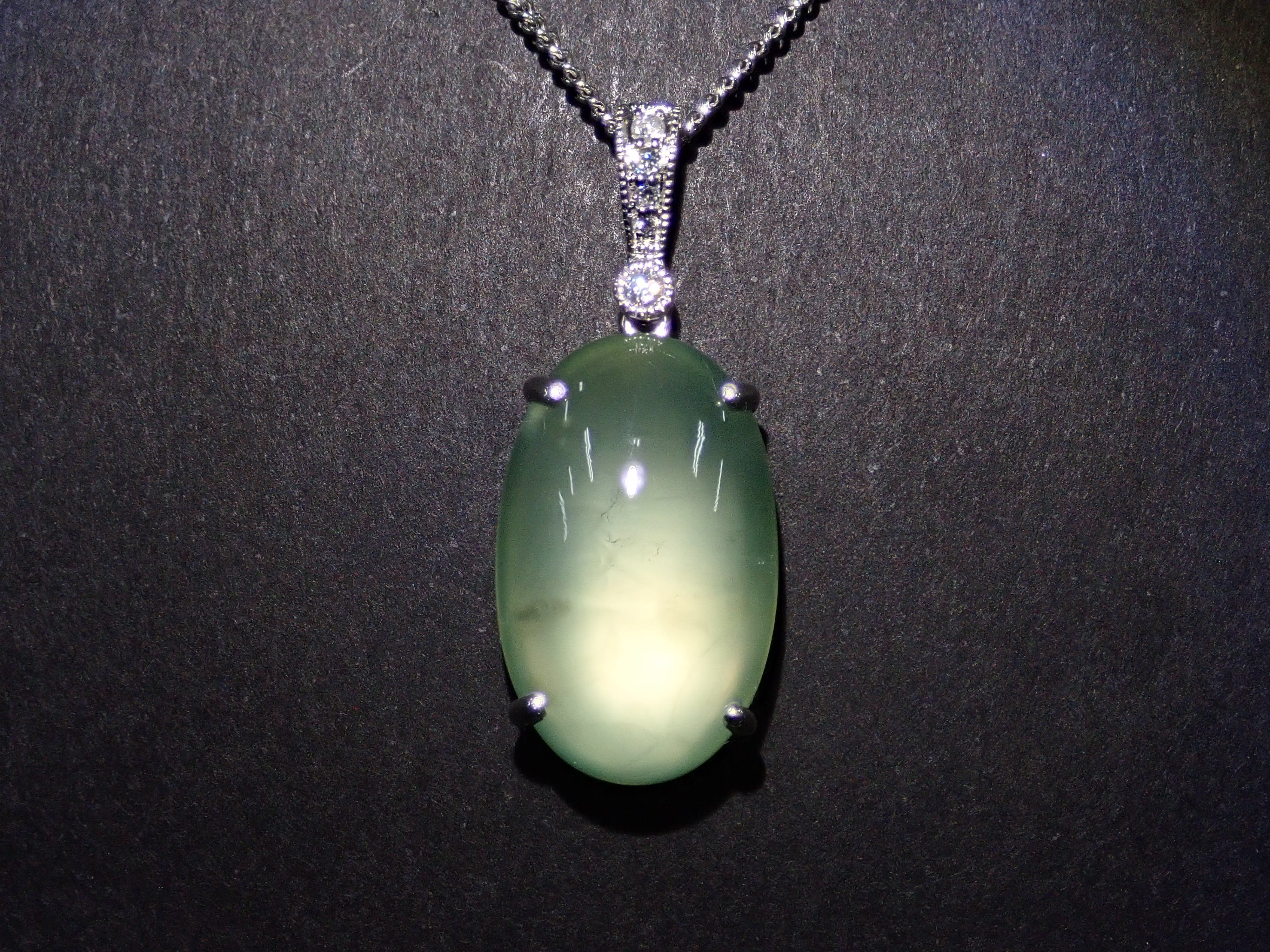 這是一款玩耍之夜項鍊上衣。葡萄石的日文名稱是“葡萄石”,以原石計算,因其呈簇狀出現,如桶狀晶體或葡萄串而得名。油膩的綠色使胸部顯得華麗。它是 Pt950,重 6.6 克。