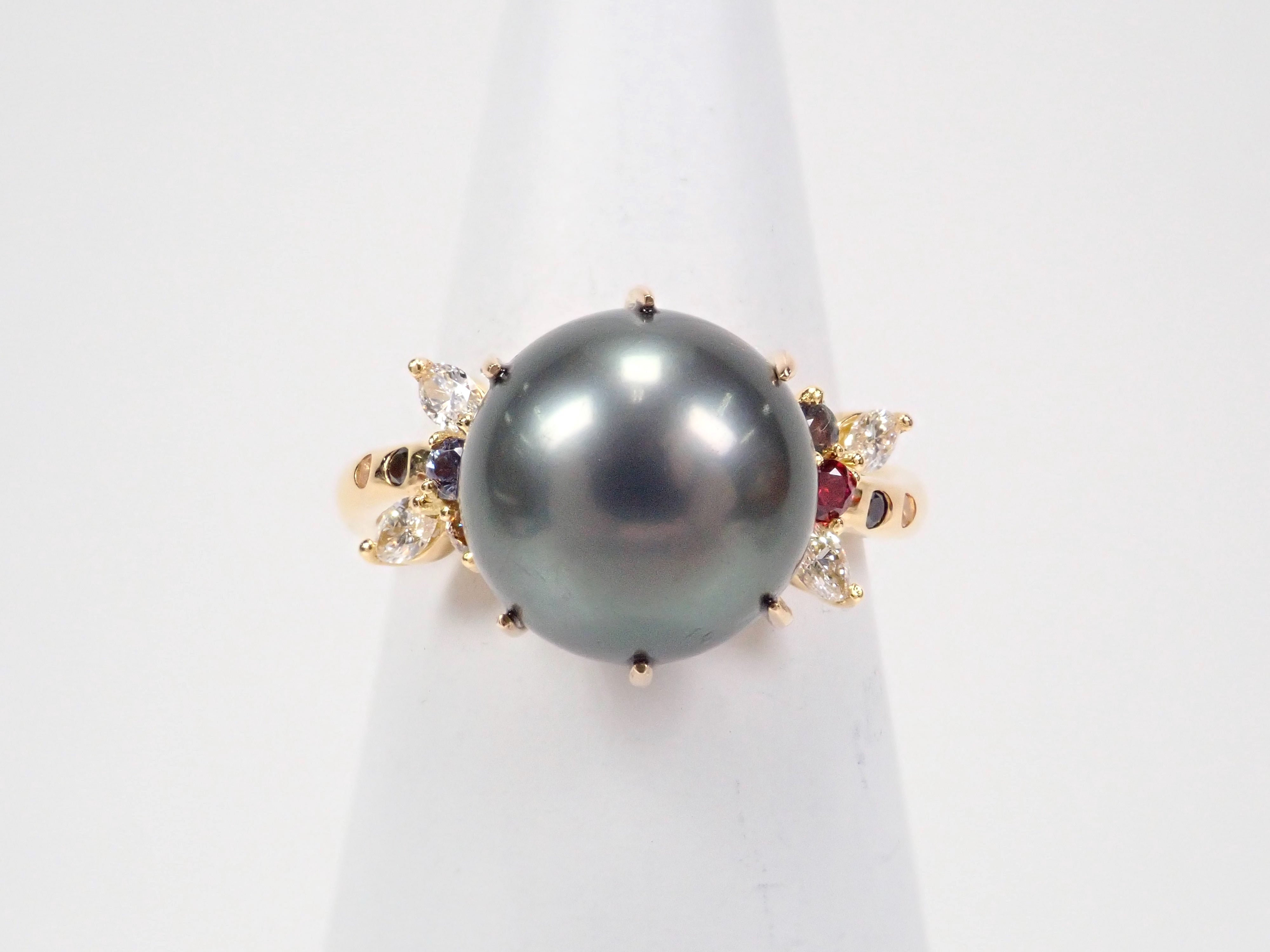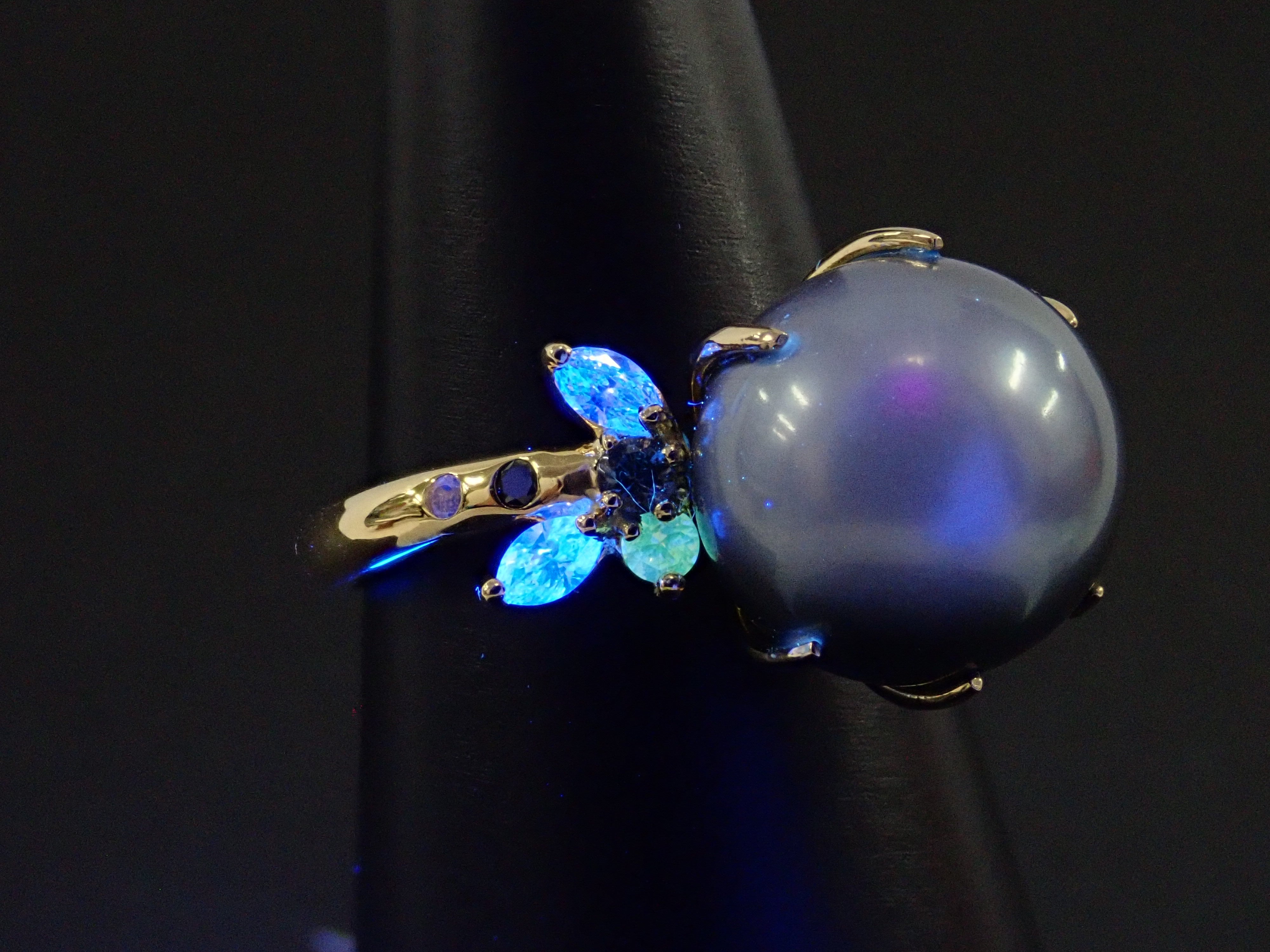 K18YG 南洋珍珠 10.616 克拉 Bekily 藍色石榴石紫翠玉鑽石戒指