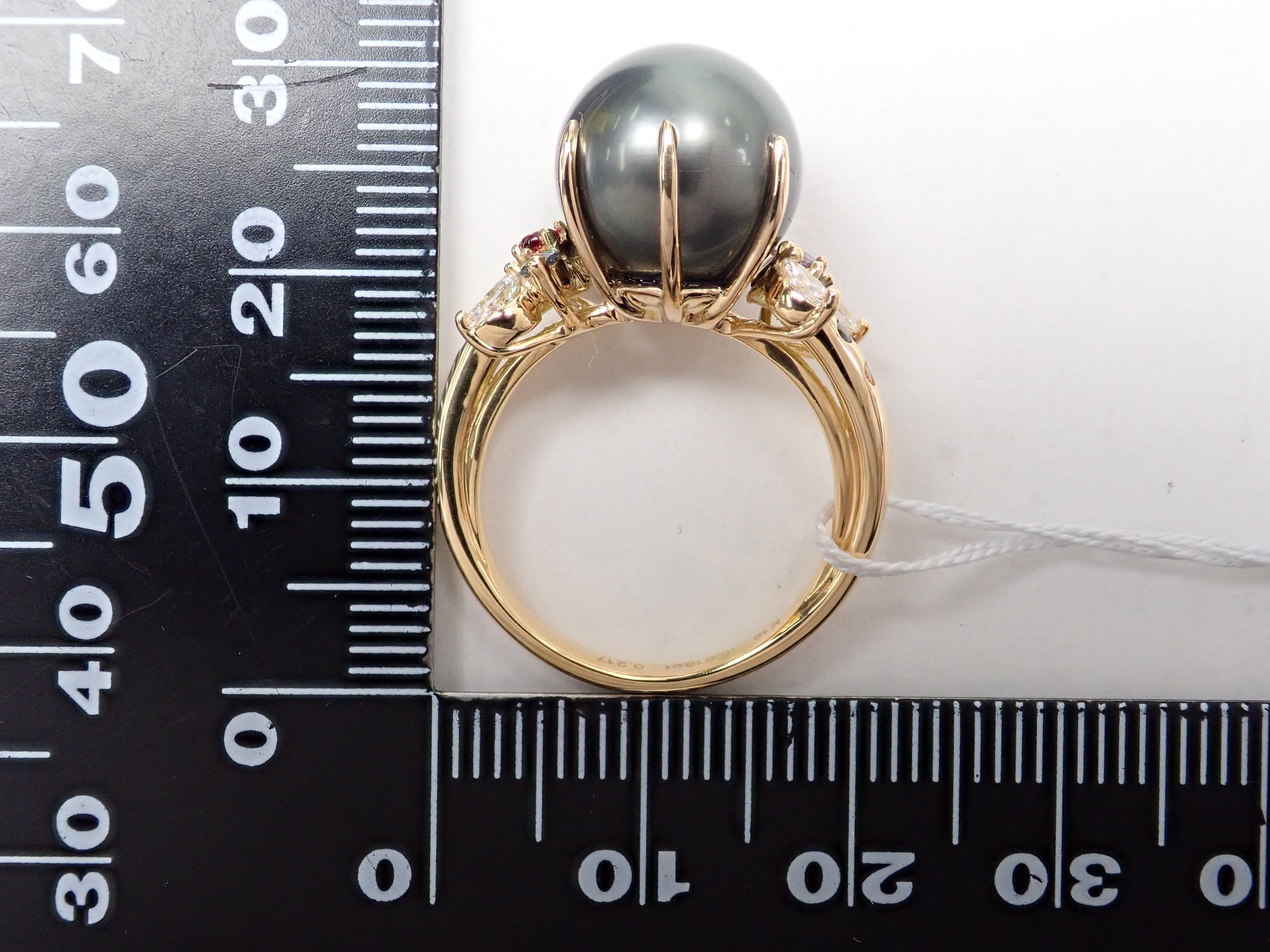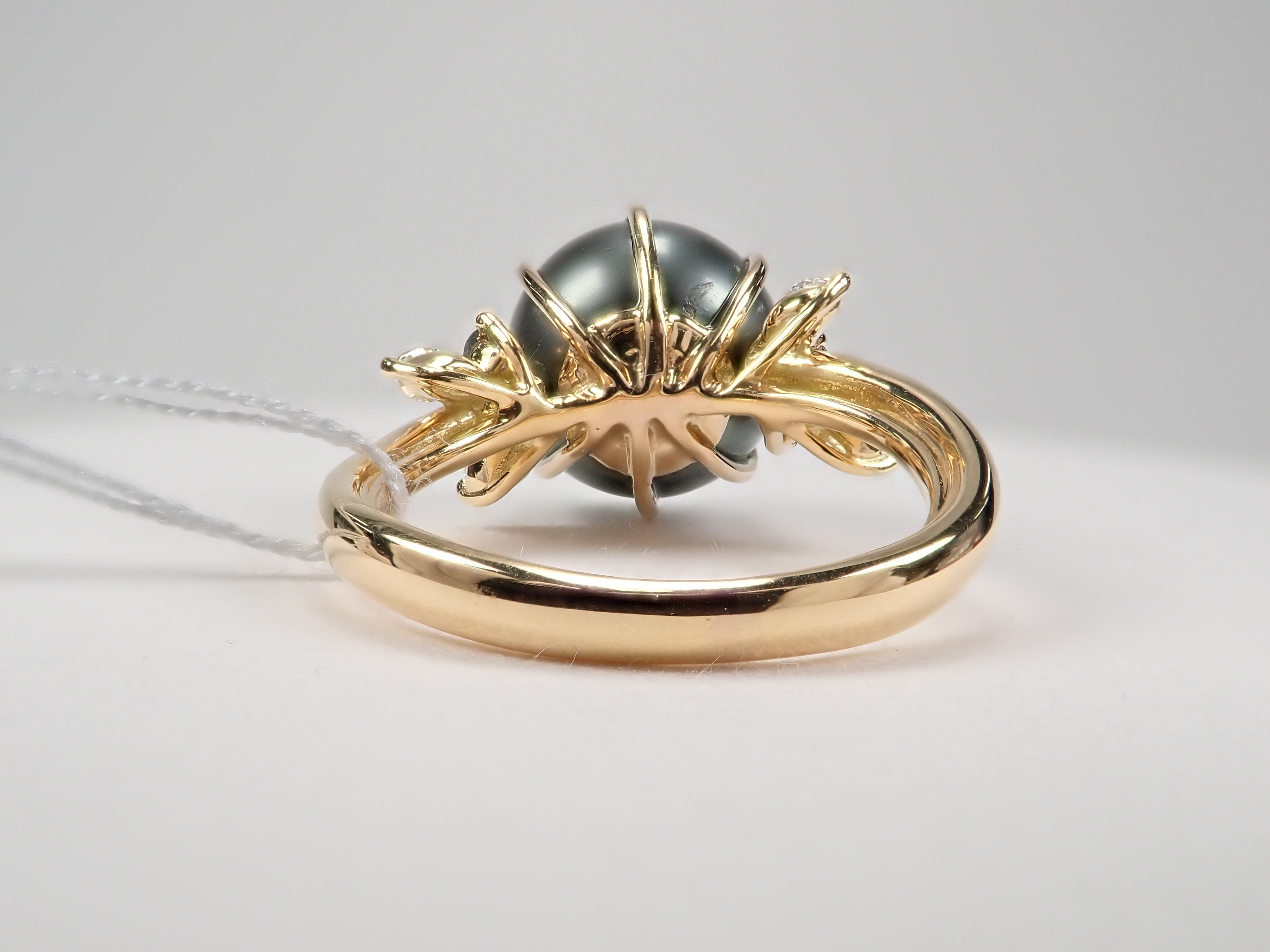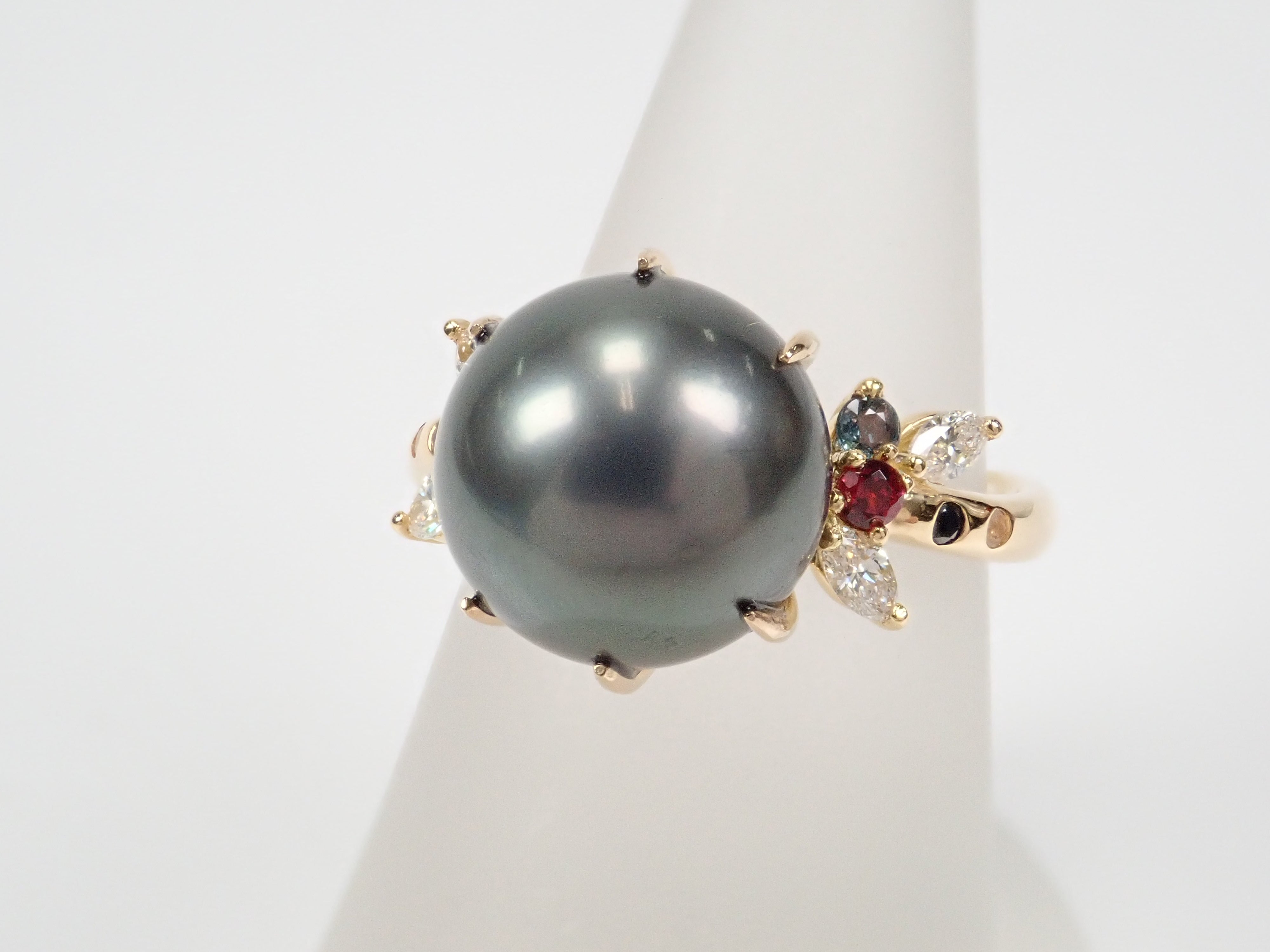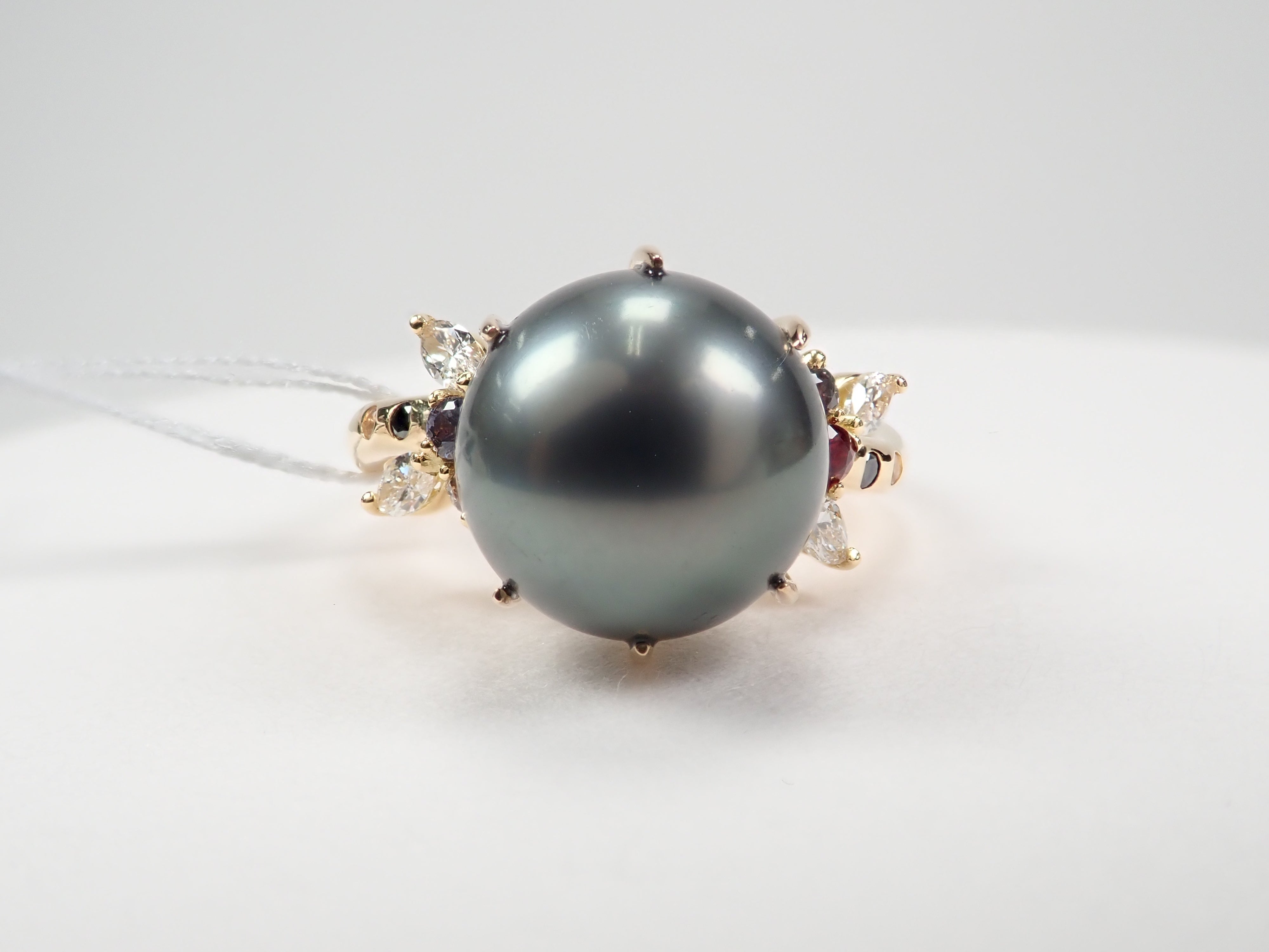南洋珍珠戒指。副石上還添加了與閃亮的黑唇珍珠相得益彰的棕色和黑色鑽石,營造出時尚的氛圍。與黃金的對比也很漂亮。副石包括無色鑽石、黑色鑽石、棕色鑽石、紅榴石和 Bekiru 藍色石榴石。 -使用亞歷山大月光石。所有珠寶,包括珍珠,均由 KARATZ 精心挑選。這枚戒指採用了Karatz原創的半定制框架Einsel 。