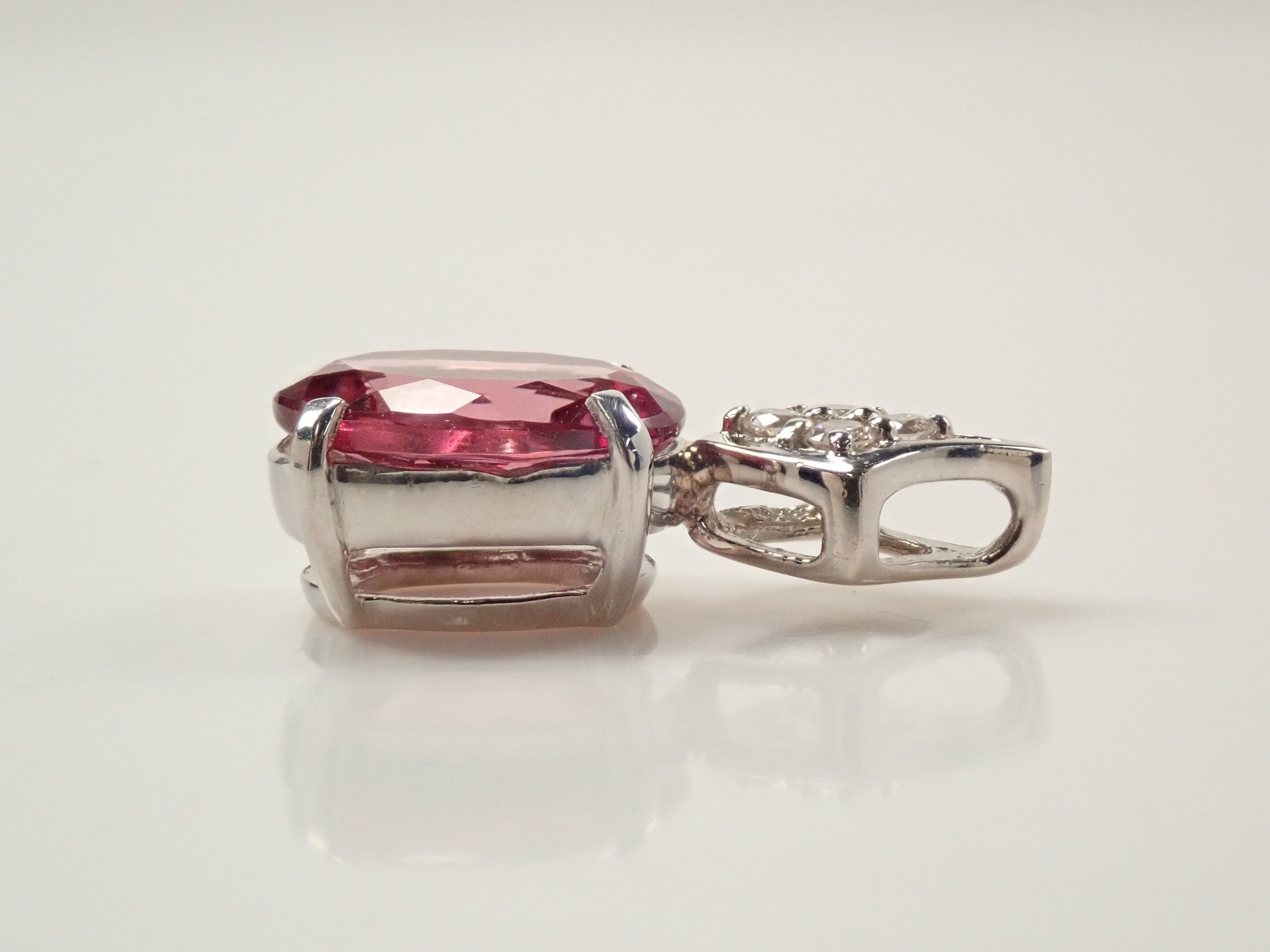 這款吊墜採用坦尚尼亞產的馬來亞石榴石製成。這顆色彩鮮豔、光澤奪目的馬來亞石榴石重達2.0克拉,令人驚艷。鉑金的硬朗光澤更襯托出馬來亞石榴石的鮮活光澤。副石的鑽石堪稱VS級鑽石。