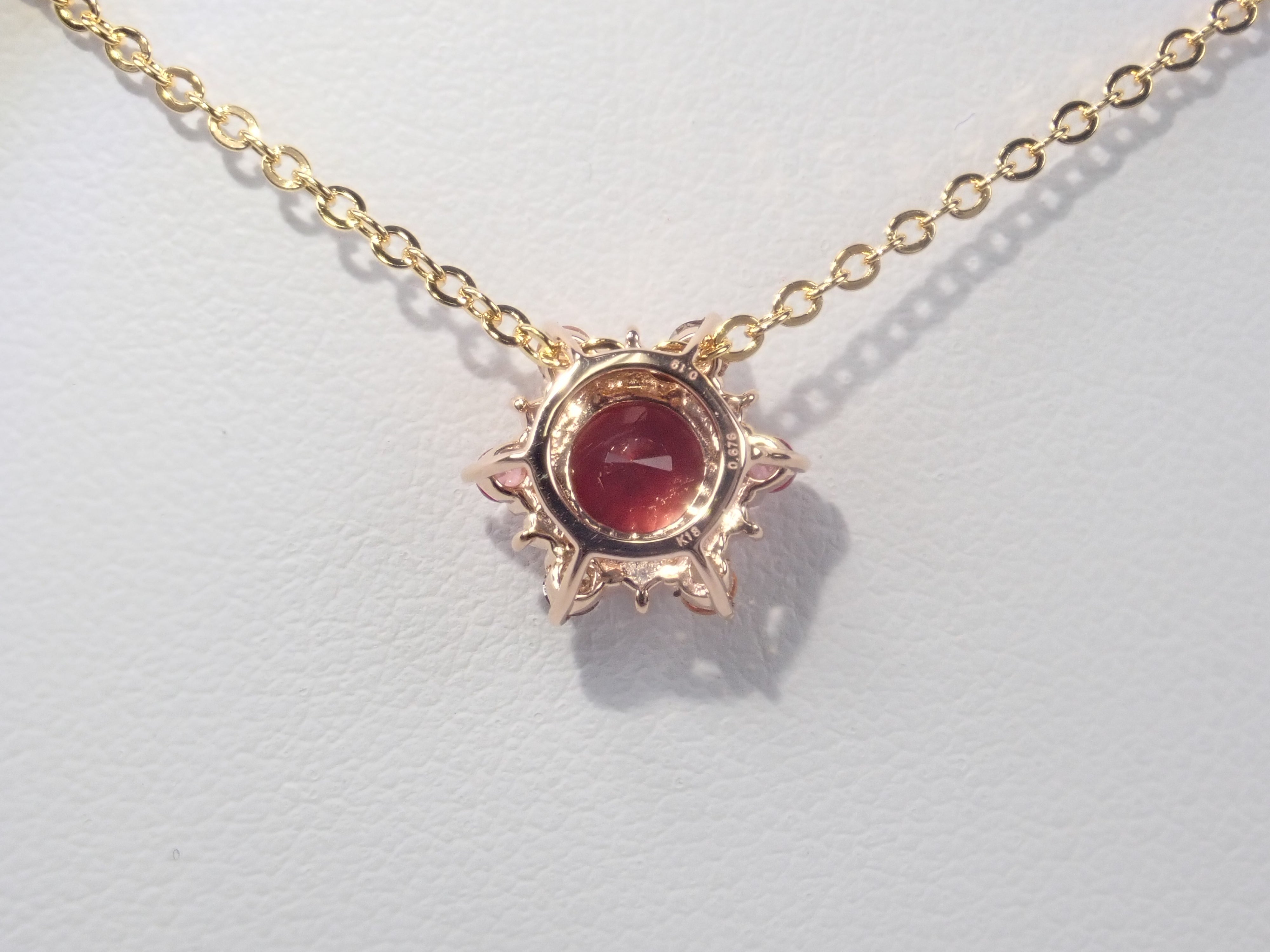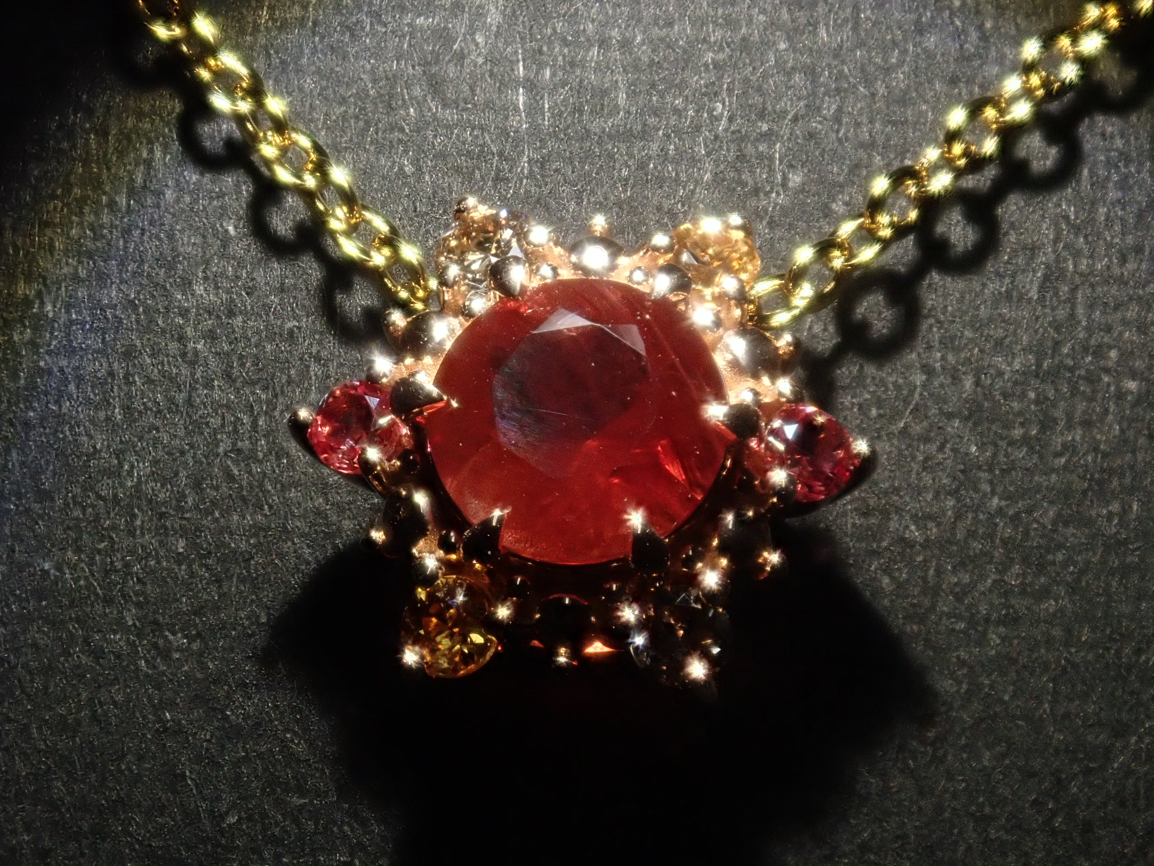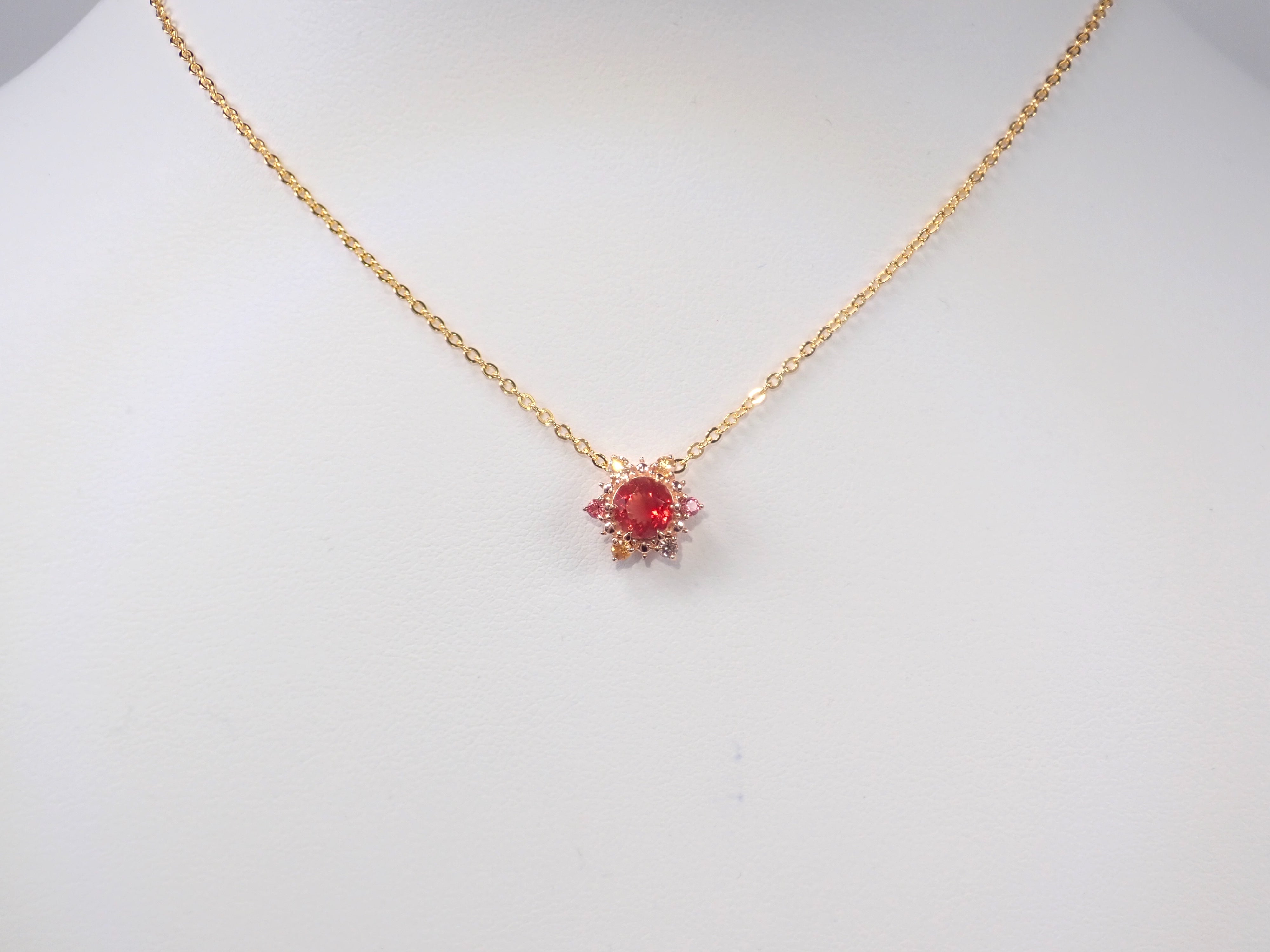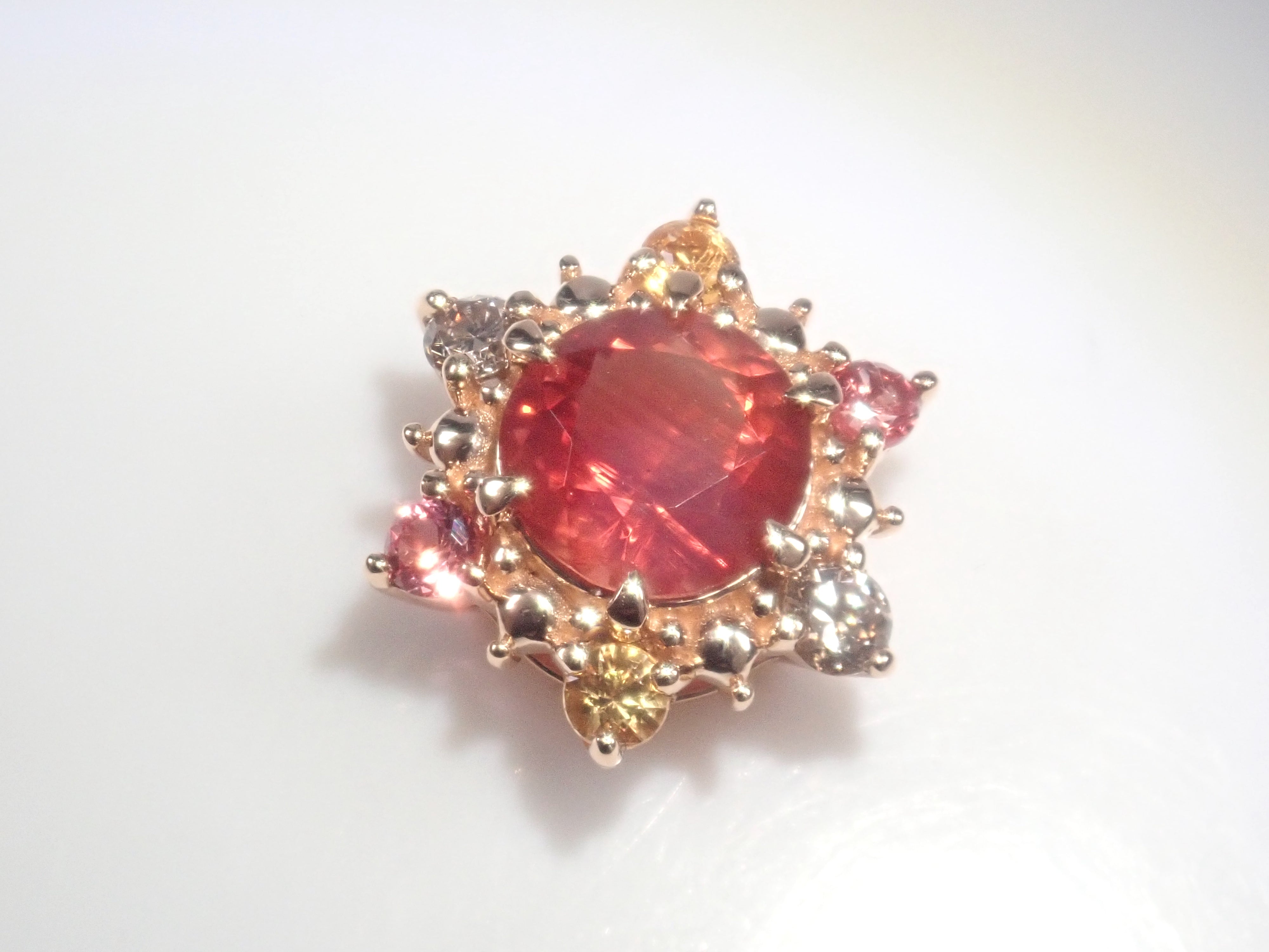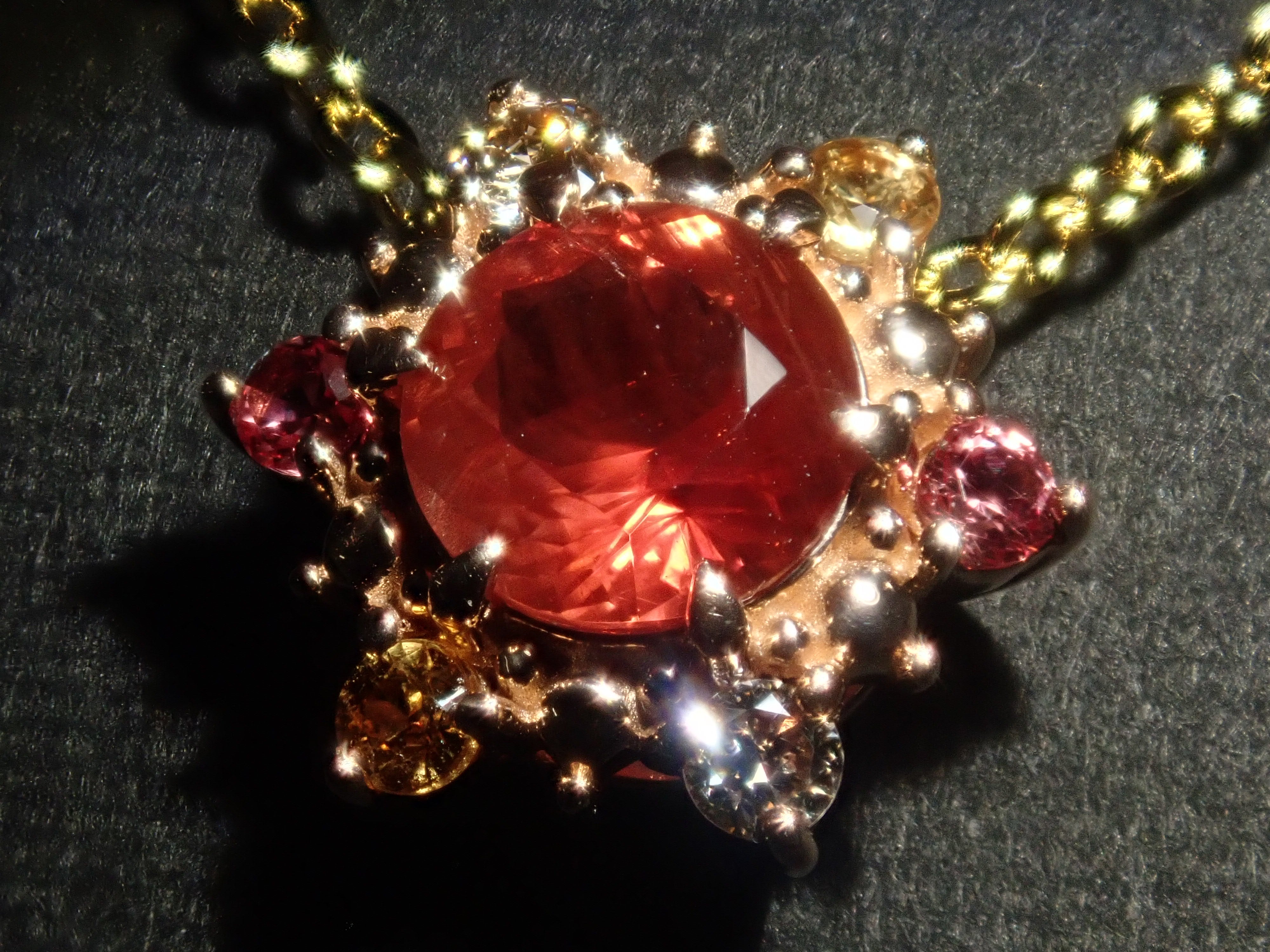 美國俄勒岡州太陽石 0.676 克拉 K18YG、帕帕拉恰彩色藍寶石、棕色鑽石吊墜(項鍊)