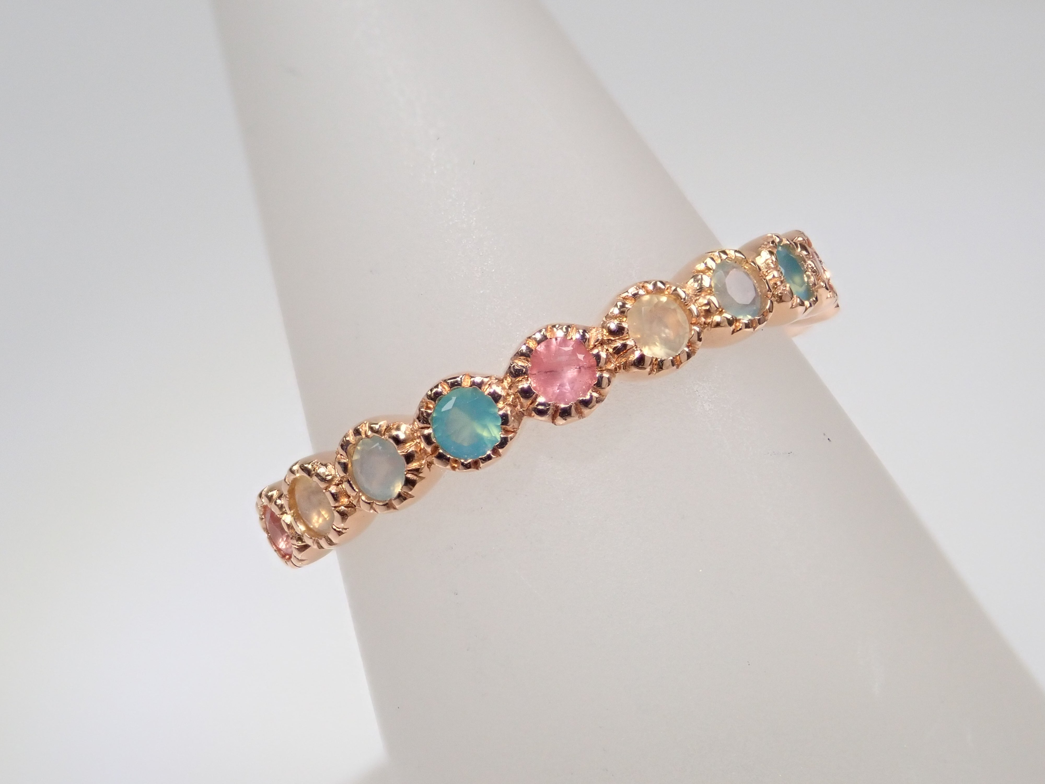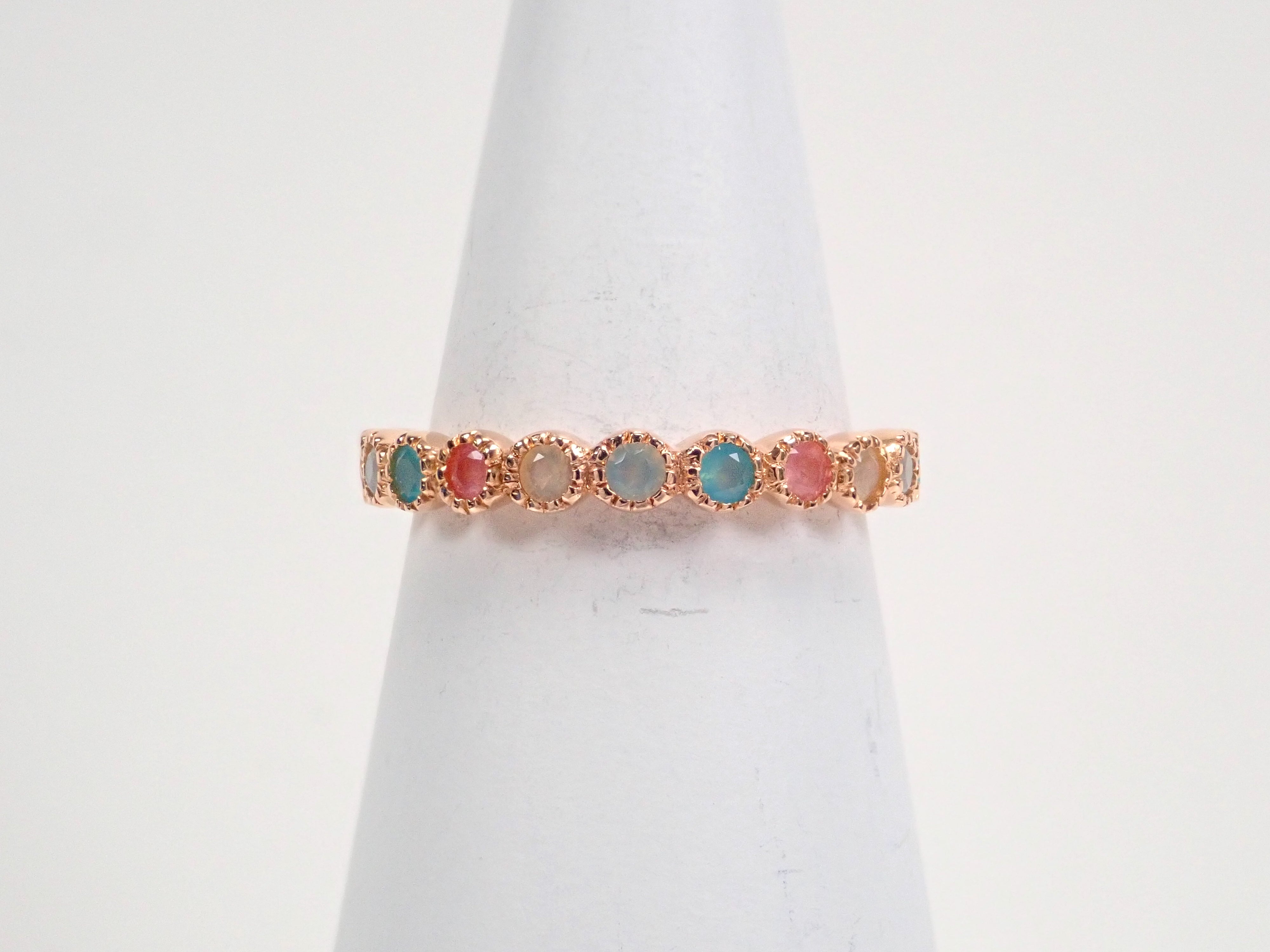 K18YG 馬達加斯加綠松石和海藍色玉髓半永恆戒指