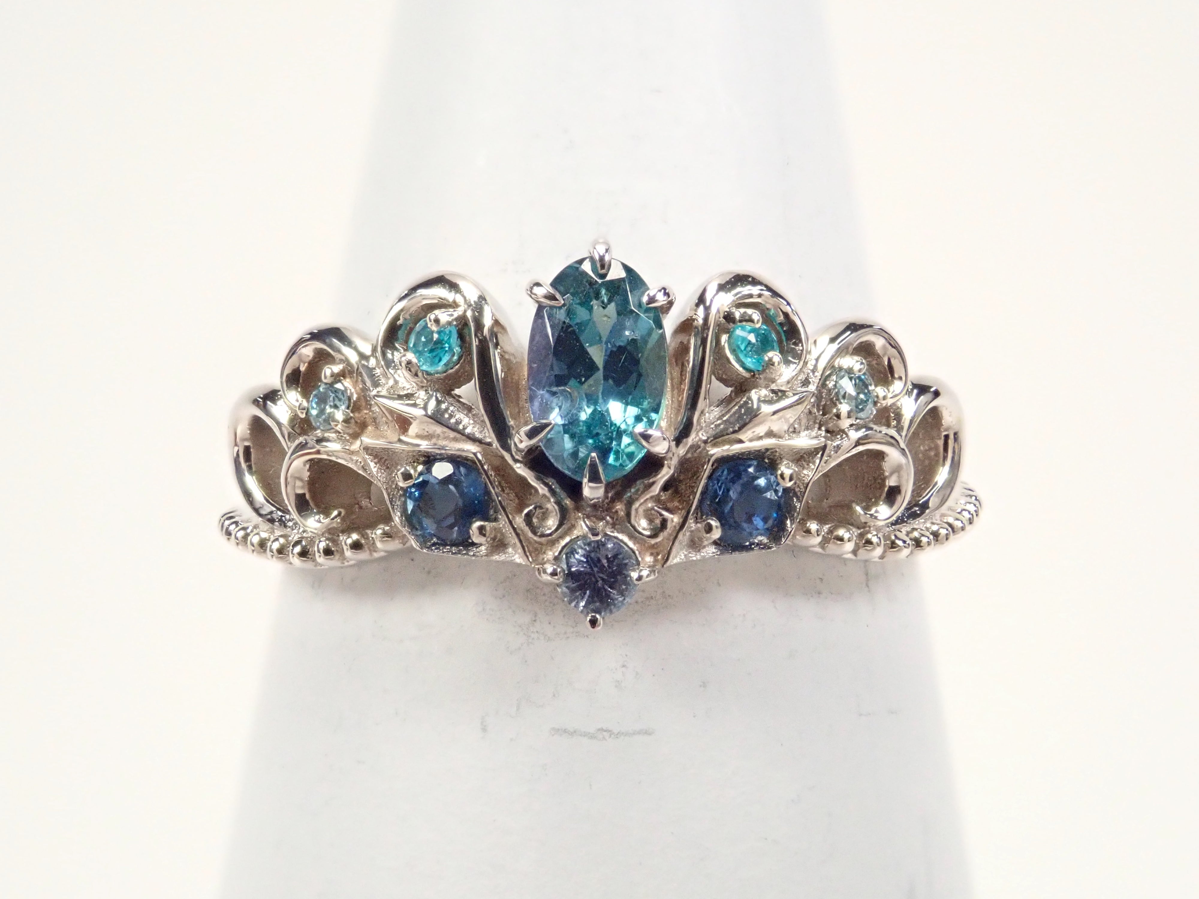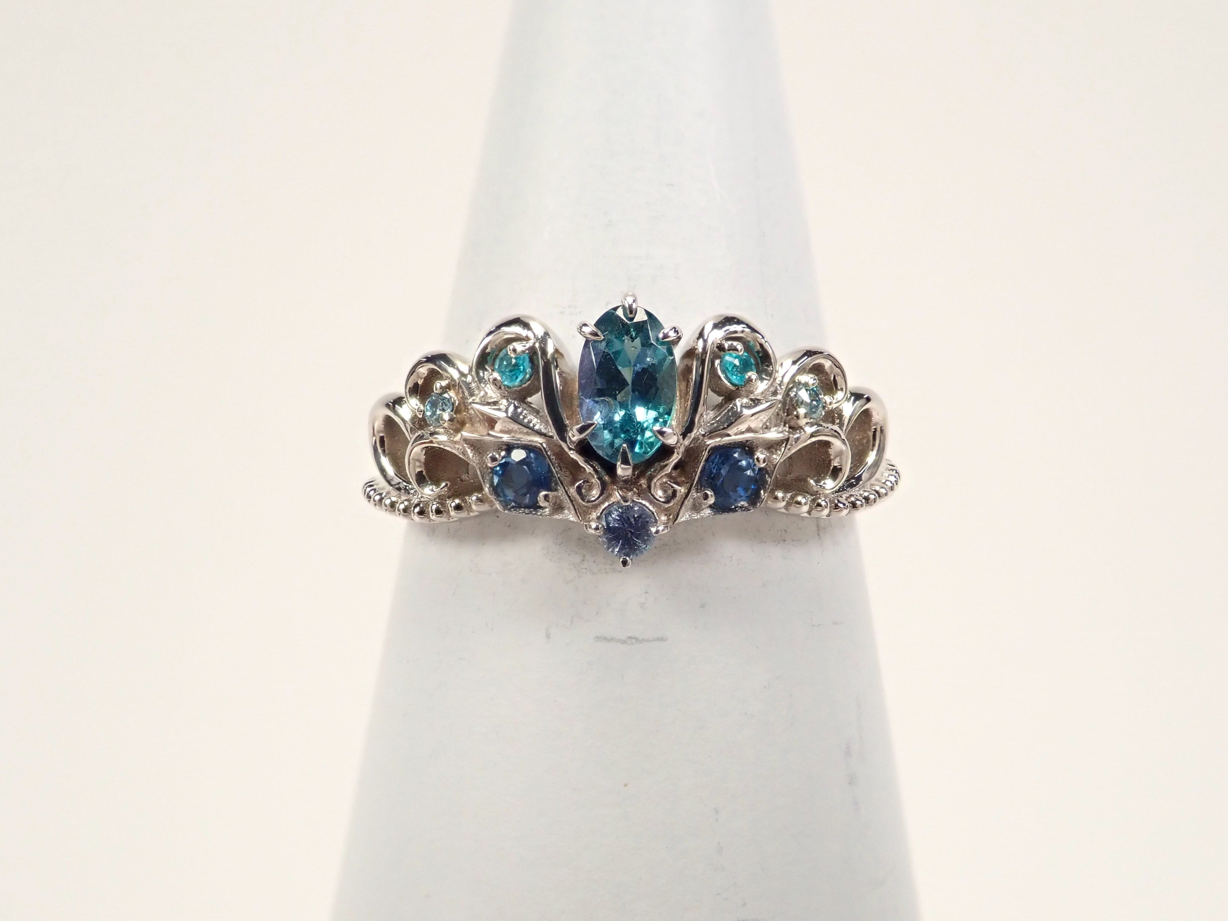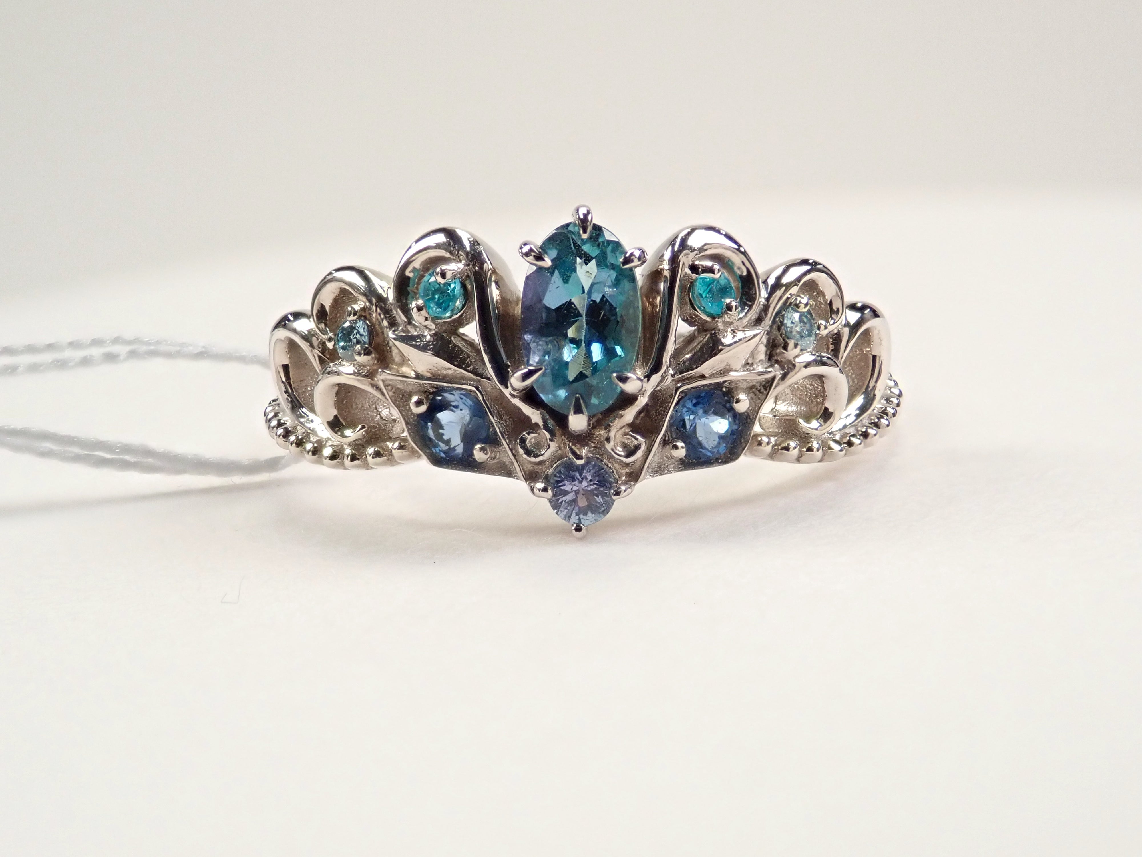 Pt950 坦尚尼亞 Kornerupine 0.269ct、帕拉伊巴碧璽和聖瑪麗亞海藍寶石戒指