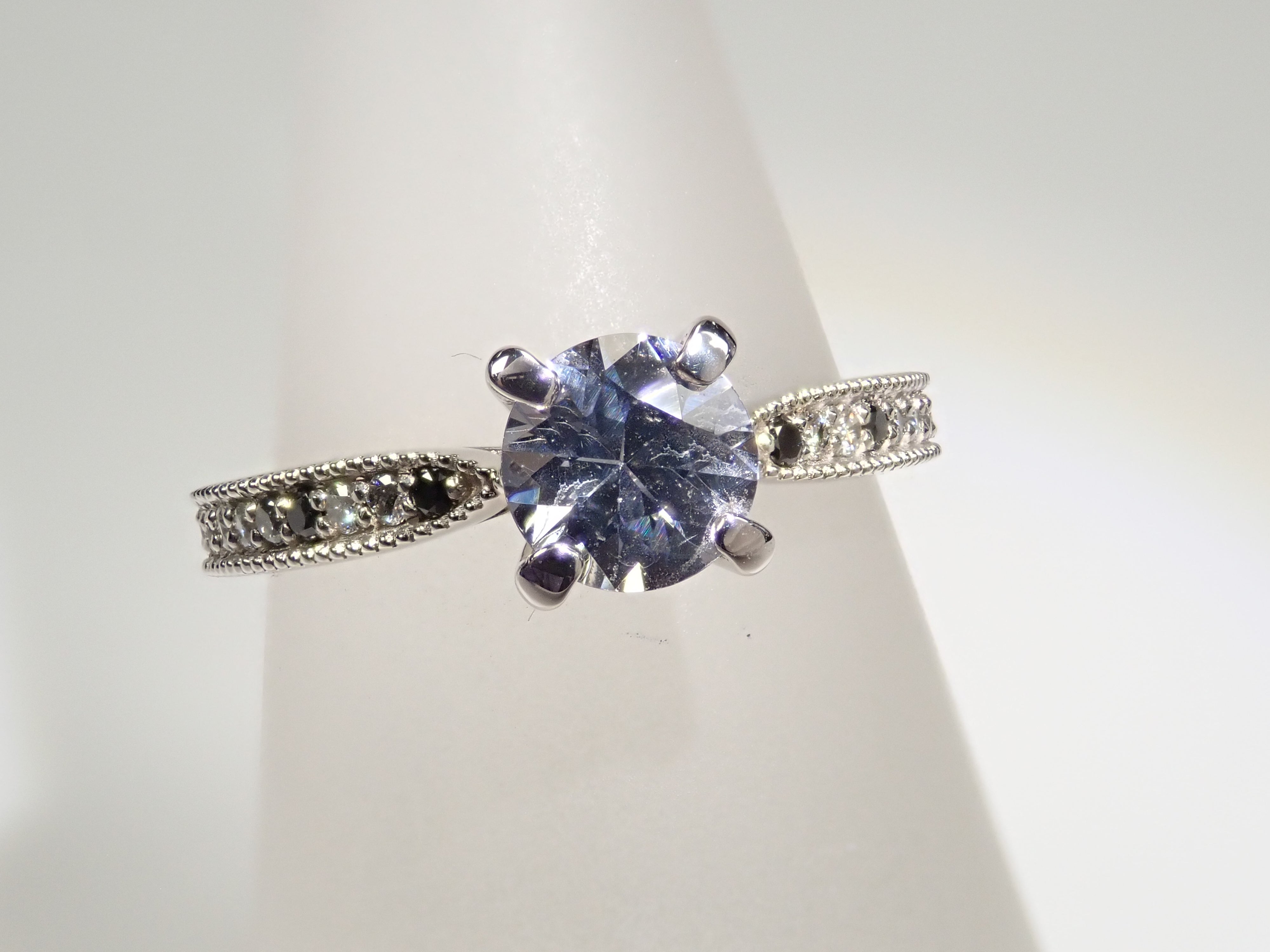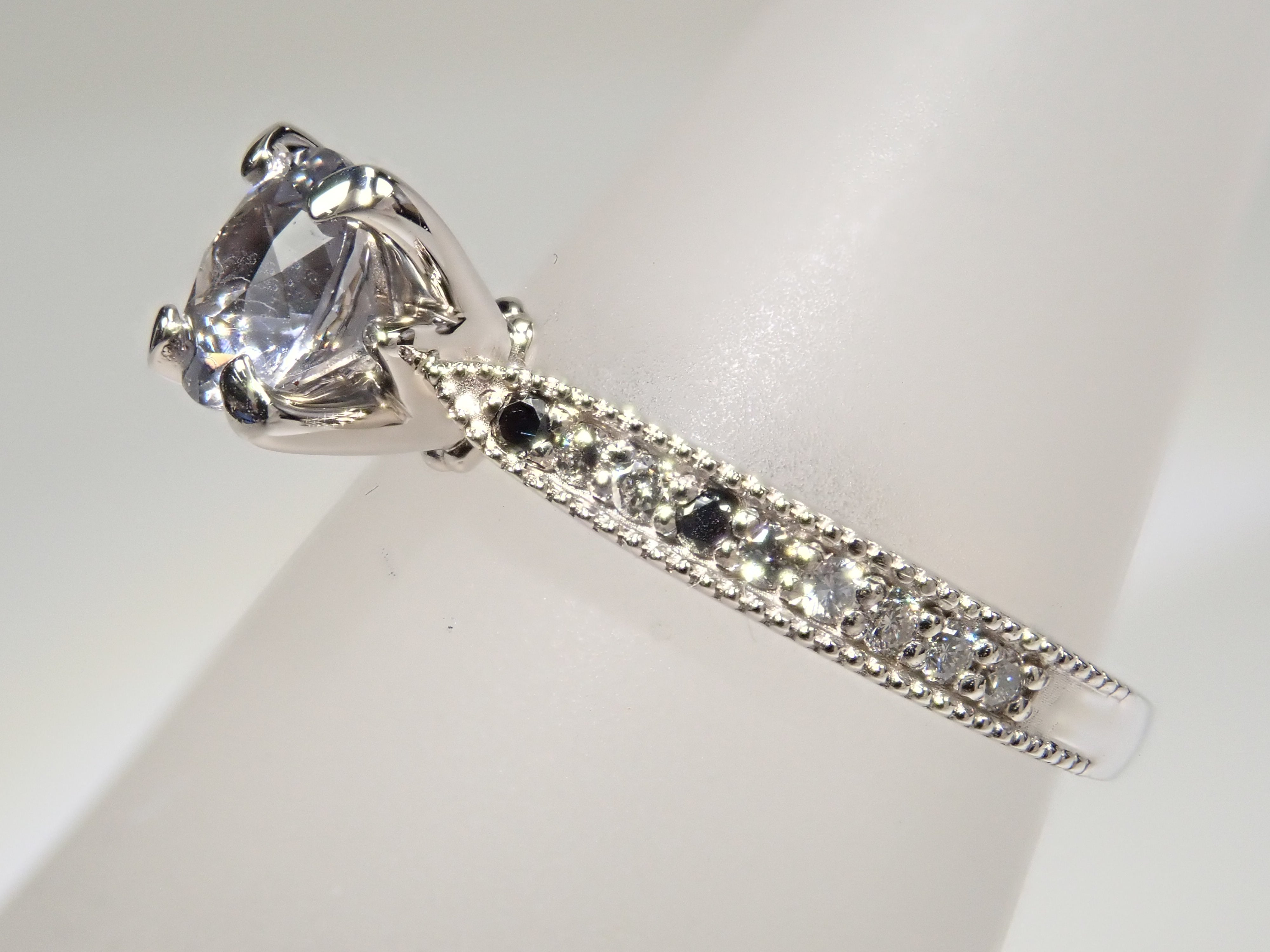 【9月5日晚10點開售】Pt950緬甸灰尖晶石(鉑金尖晶石)5.5mm/0.685ct黑鑽戒指