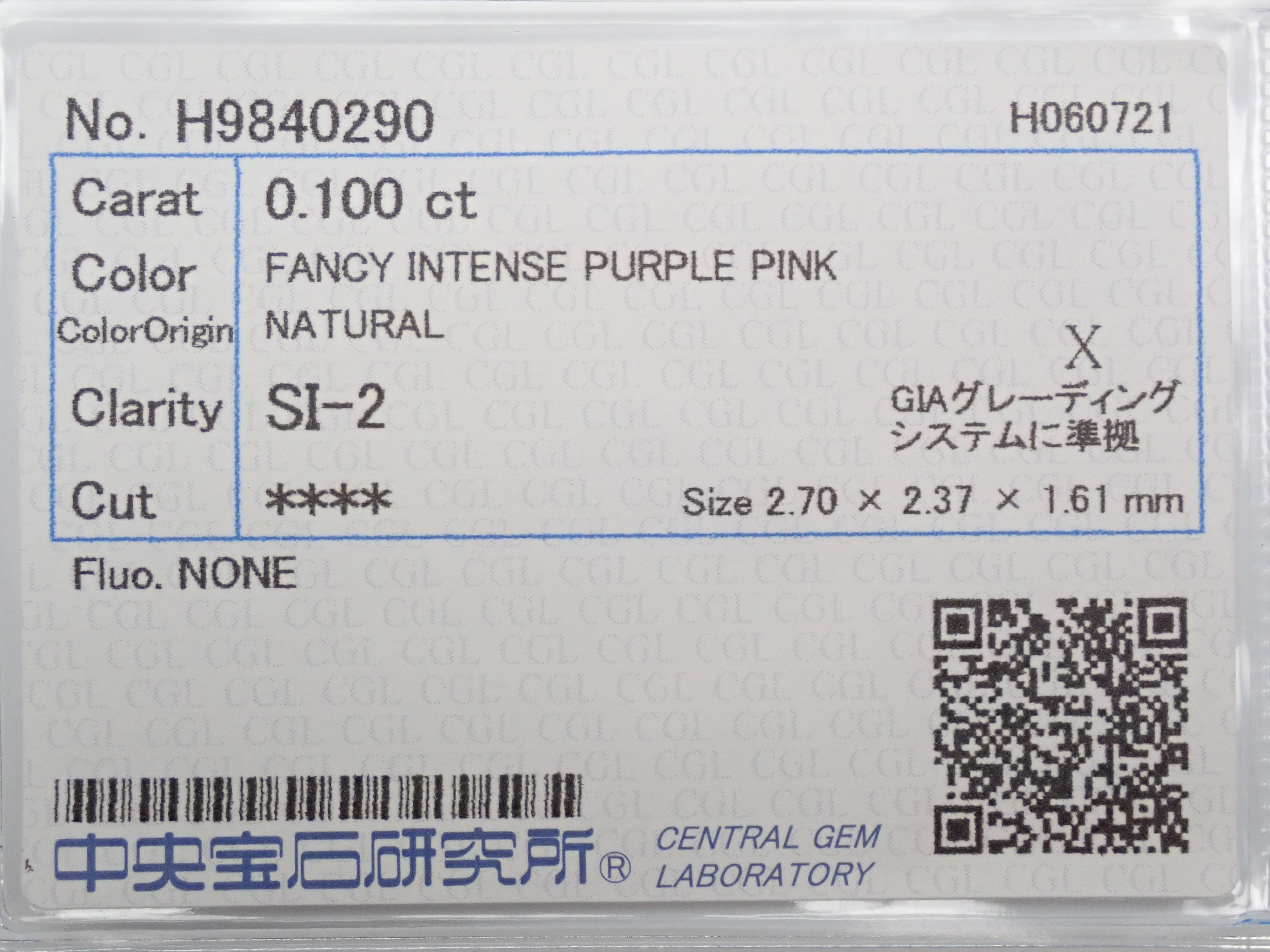 粉紅鑽 0.100 克拉裸鑽(濃彩紫粉紅,SI2)