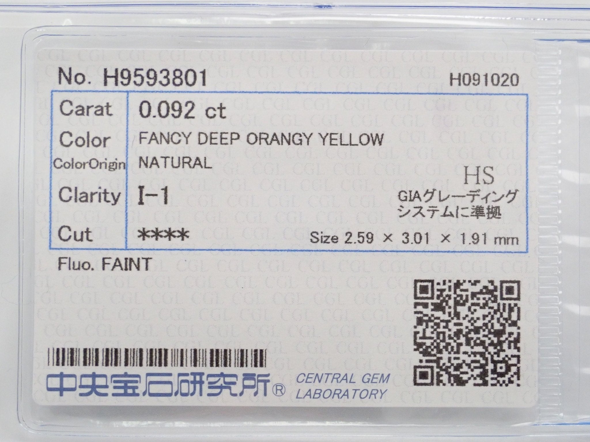 黃鑽 0.092 克拉裸鑽(深彩橙黃,I1)