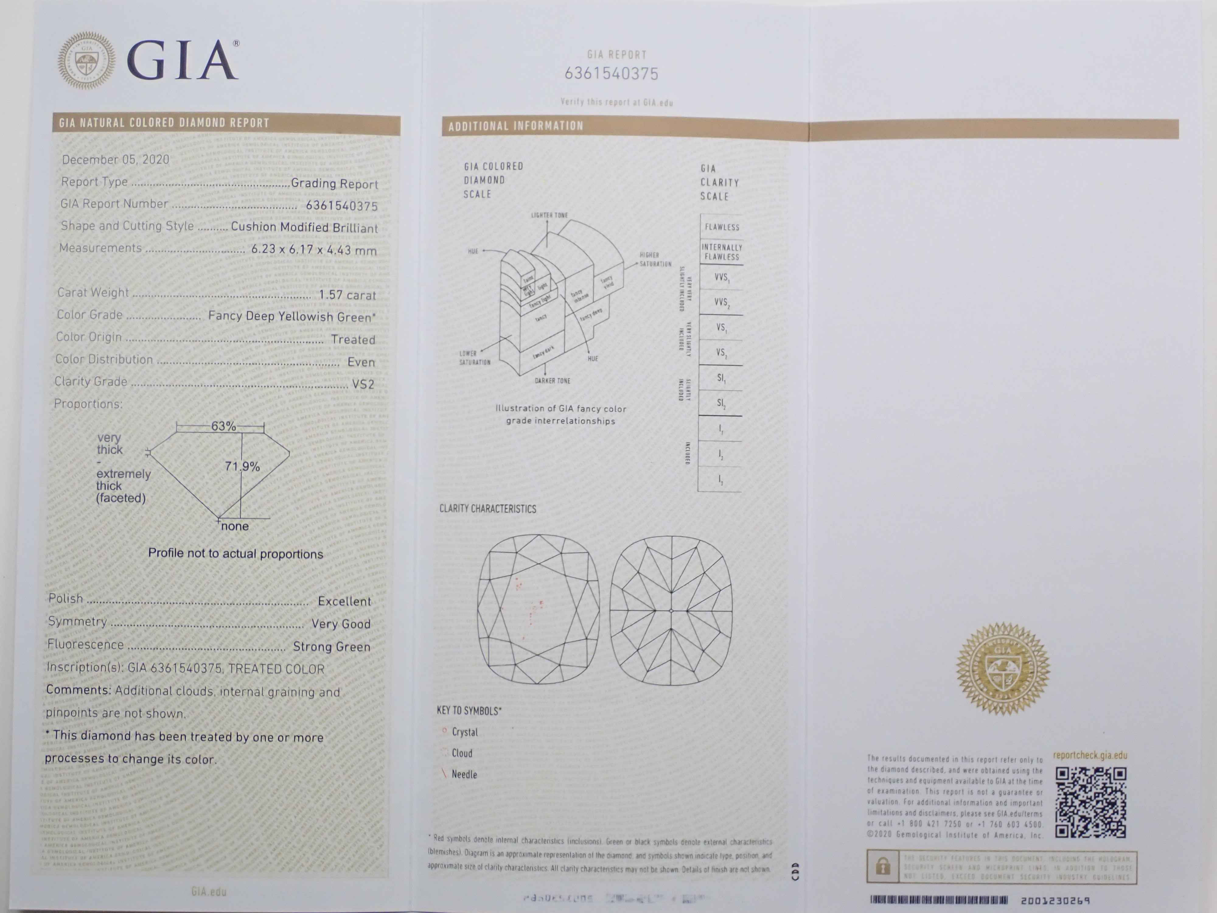 深彩黃綠色鑽石(處理)1.570克拉裸鑽(深彩黃綠色,VS2)GIA