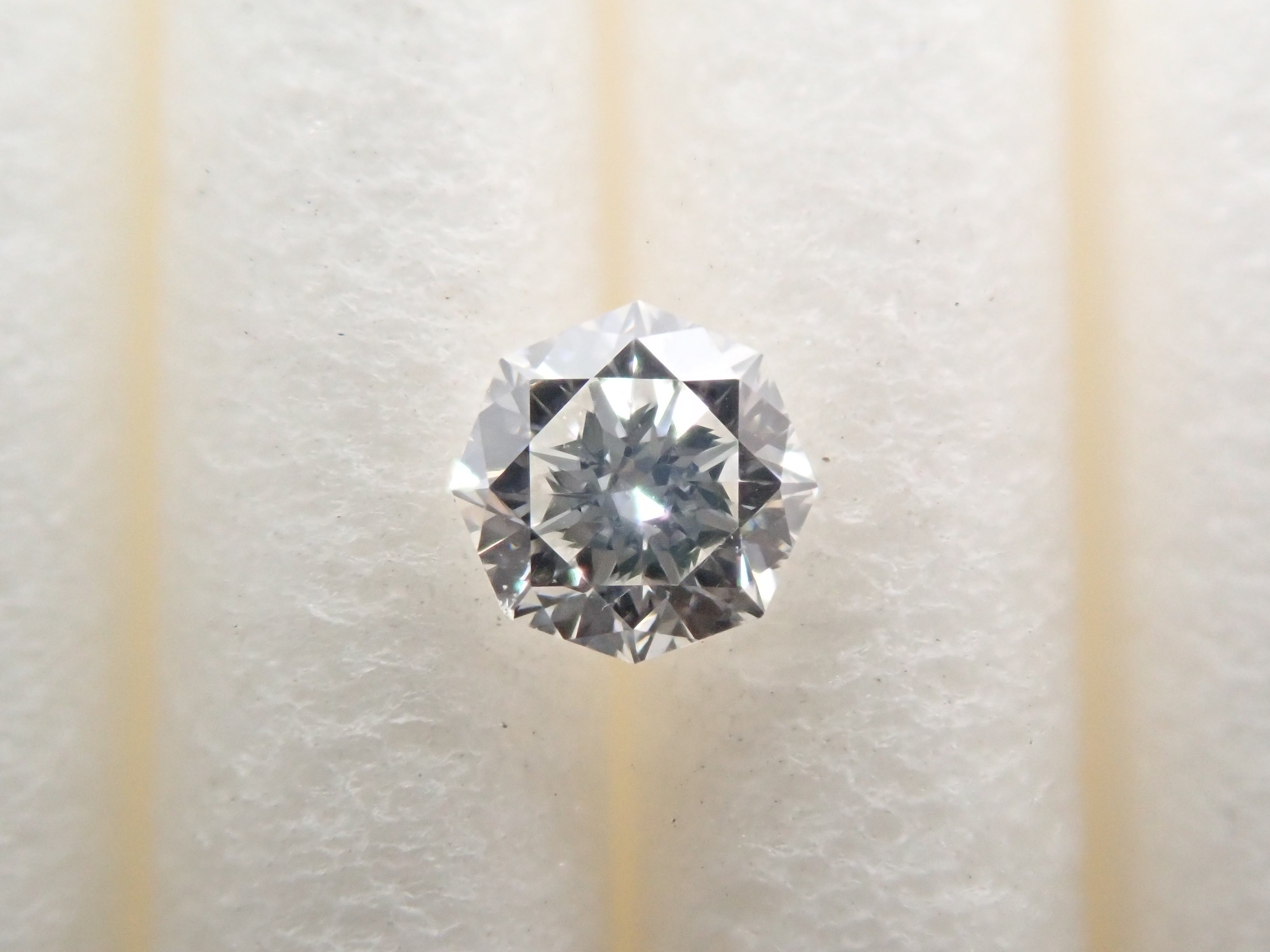 0.126 克拉裸鑽(F、VS2、八角形切割)。由中央寶石研究所進行分類。