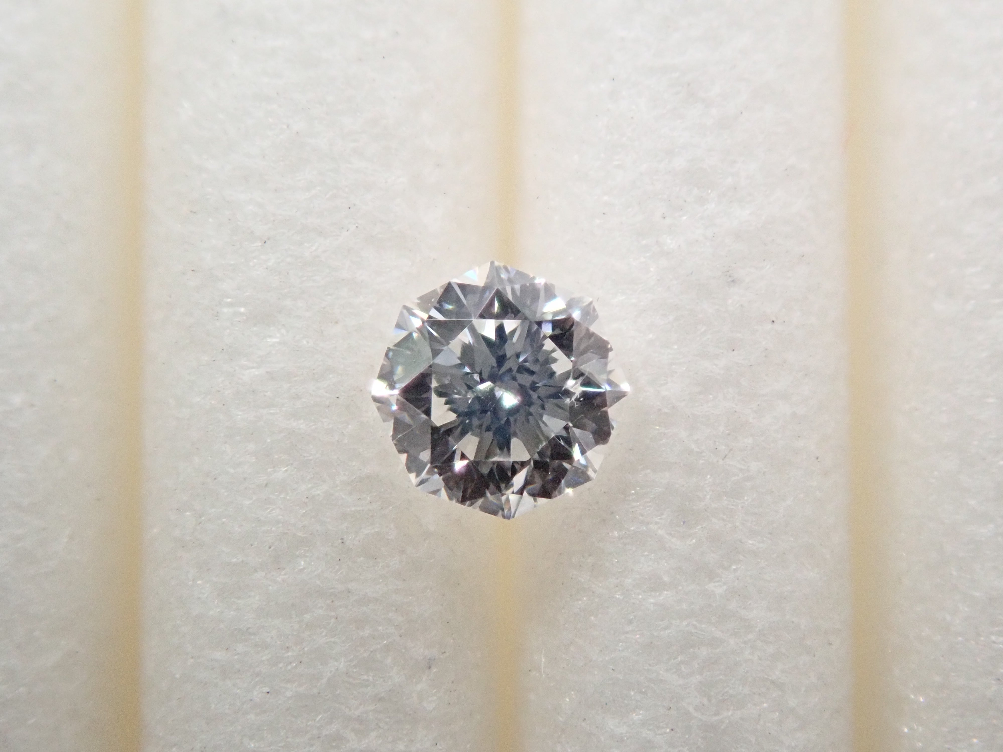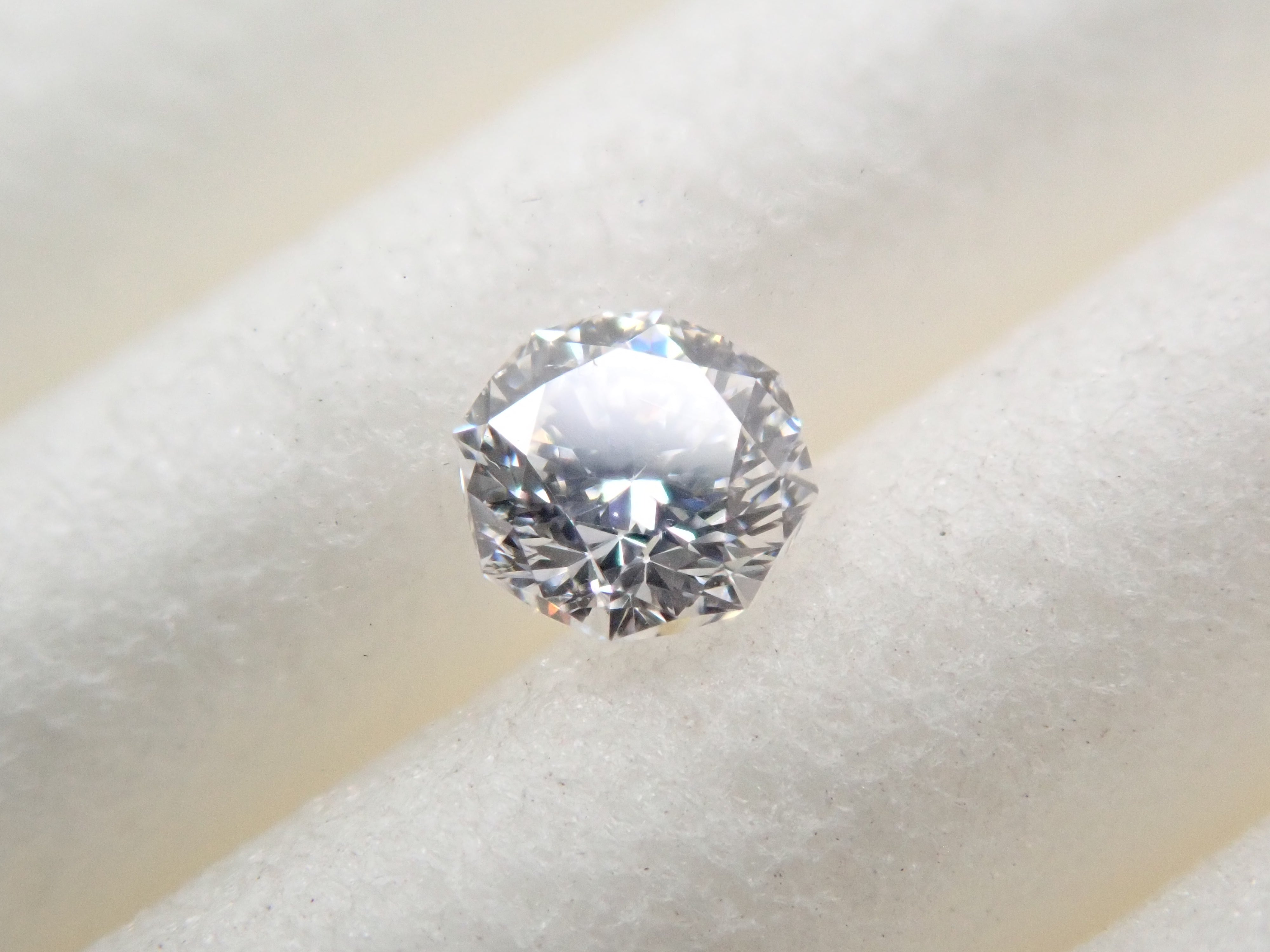 0.096 克拉裸鑽(D、SI1、八角形切割)。由中央寶石研究所進行分類。