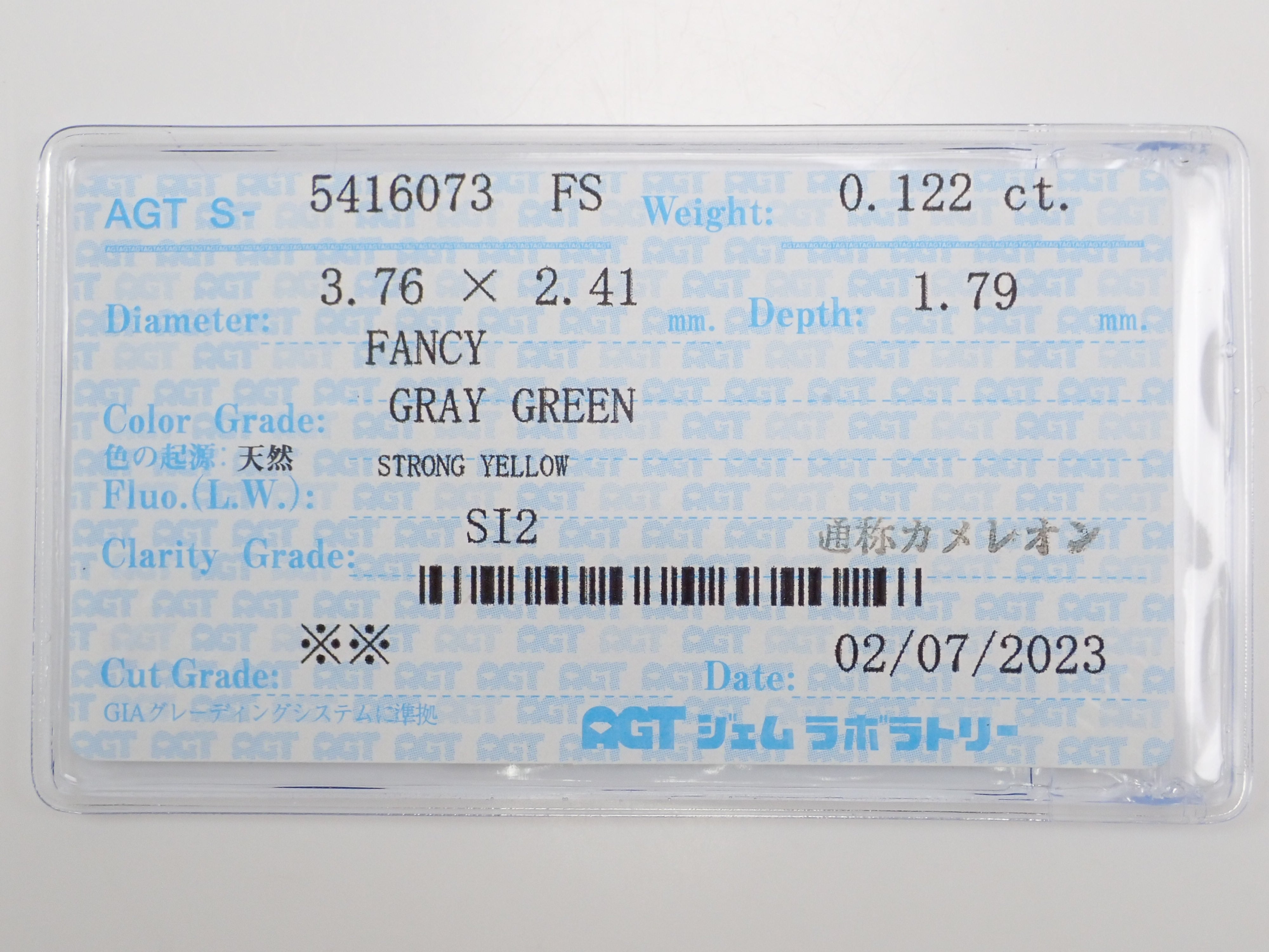 變色龍鑽石綠鑽 0.122 克拉裸鑽(花式灰綠,SI2)。
