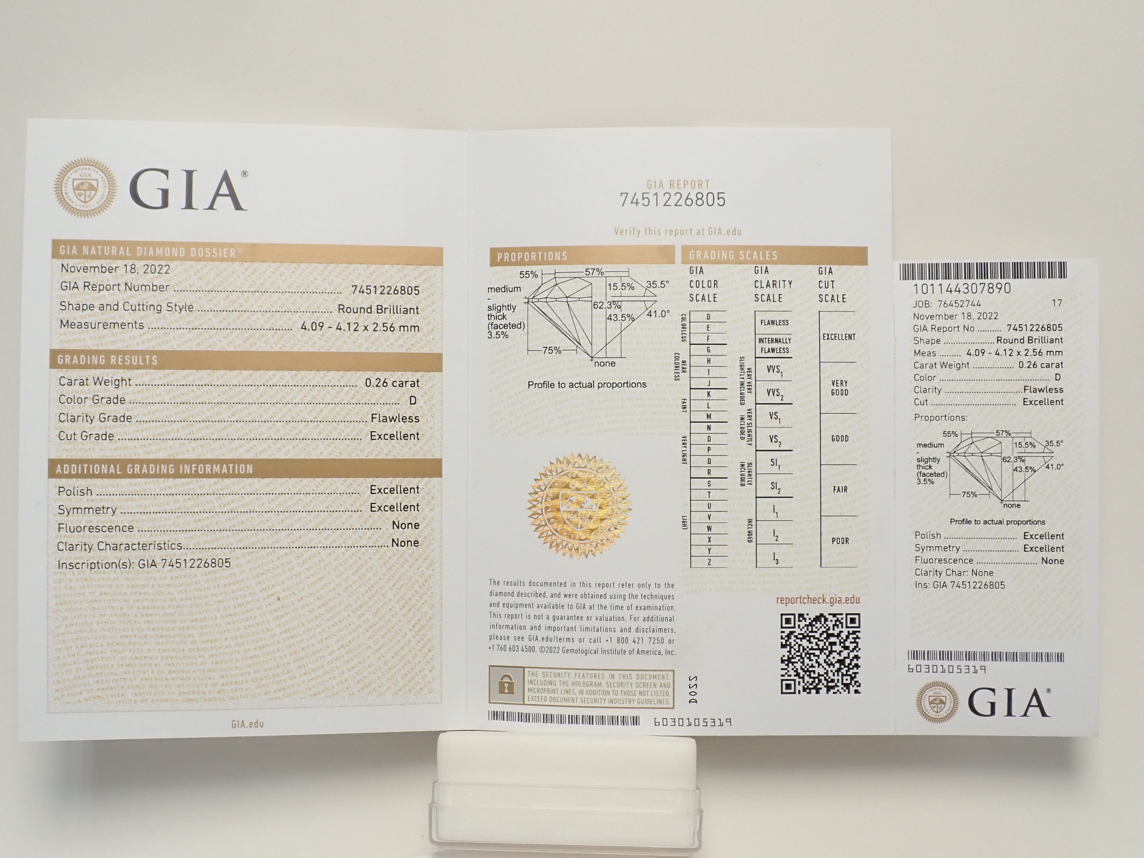 無瑕鑽石(H&C)4.0 mm/0.266 克拉裸石(D、FL、3Excellent H&C)。