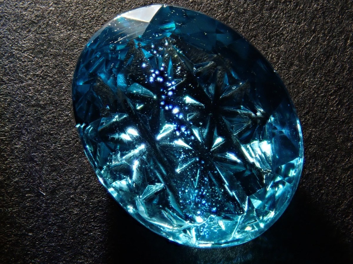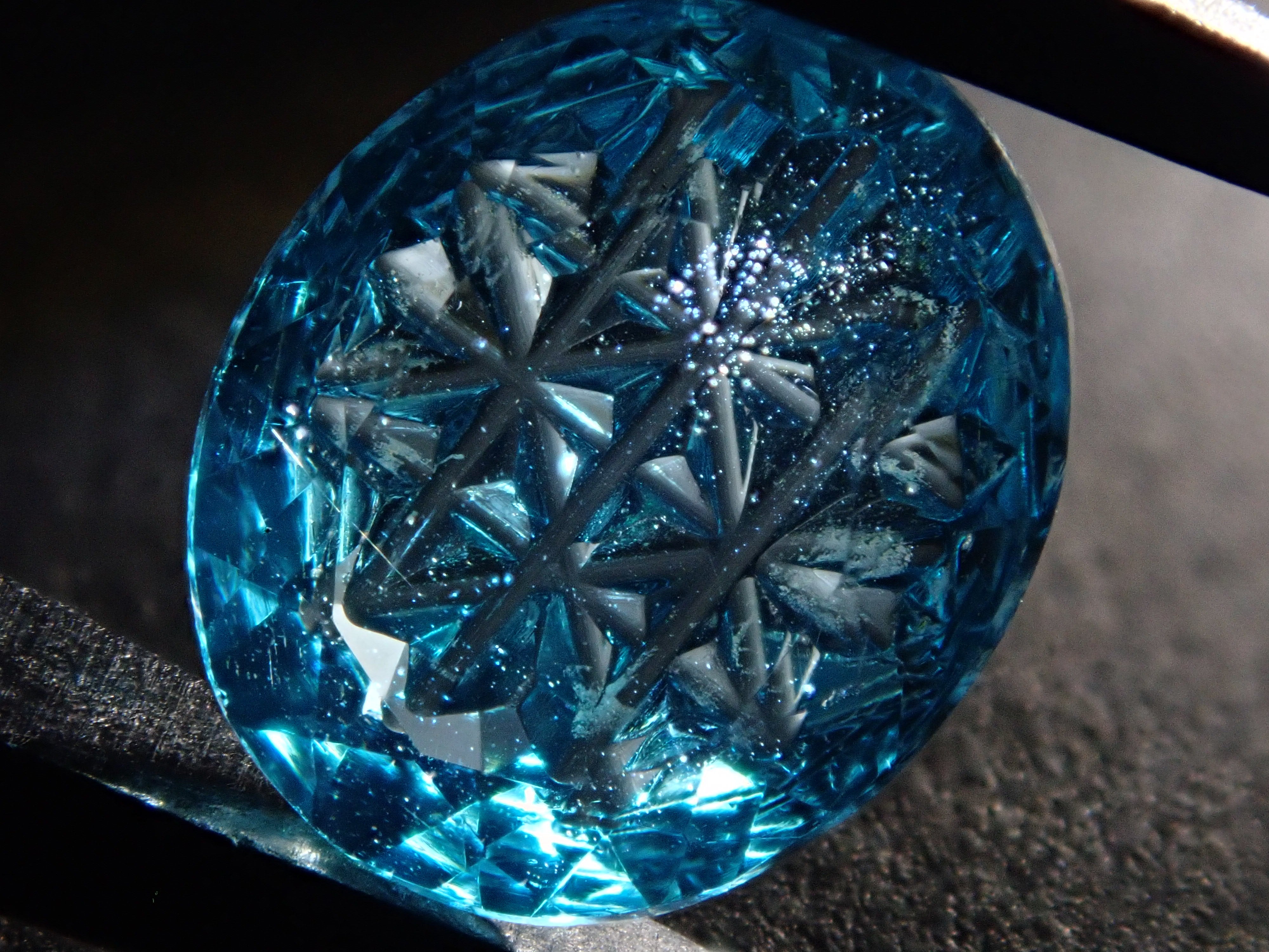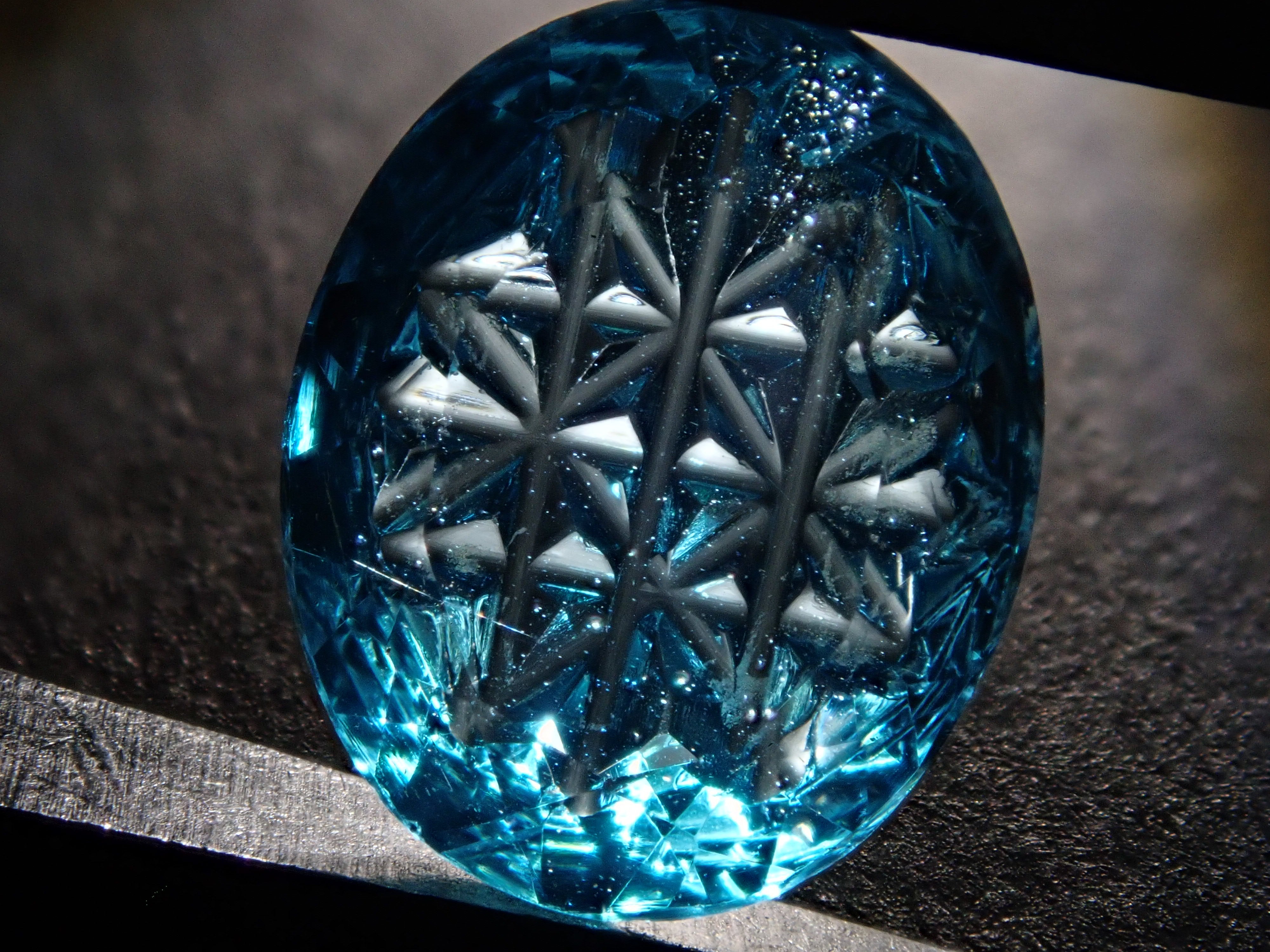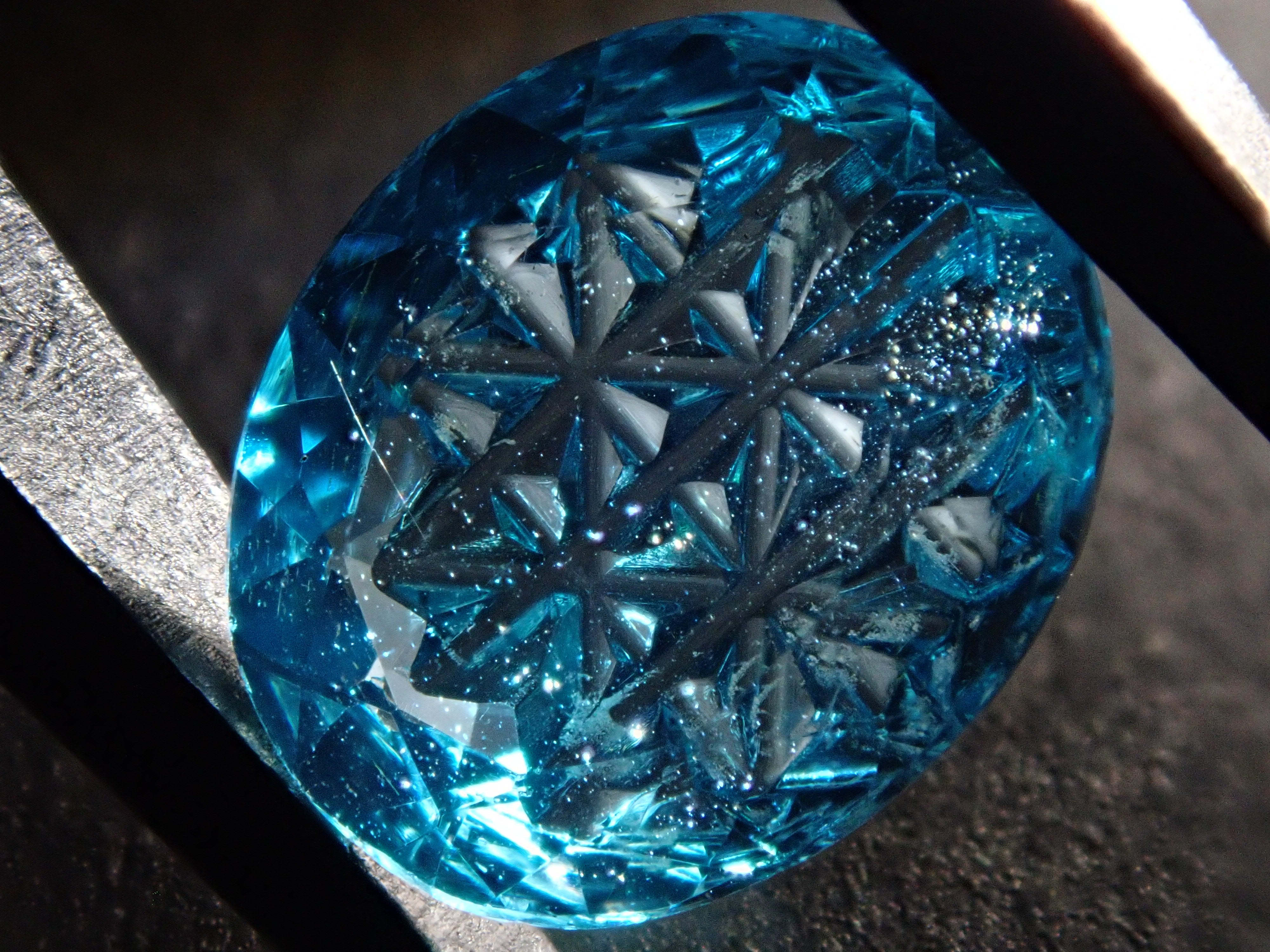 這是甲州寶石切割鑽石的創始人深澤洋一 (Yoichi Fukazawa) 全新設計的甲州寶石切割鑽石配三顆磷灰石“Irodori” 。鑽石內含的內含物在黑色背景下,光線照射下會閃閃發光。附贈特殊補丁。點此閱讀深澤洋一的訪談。