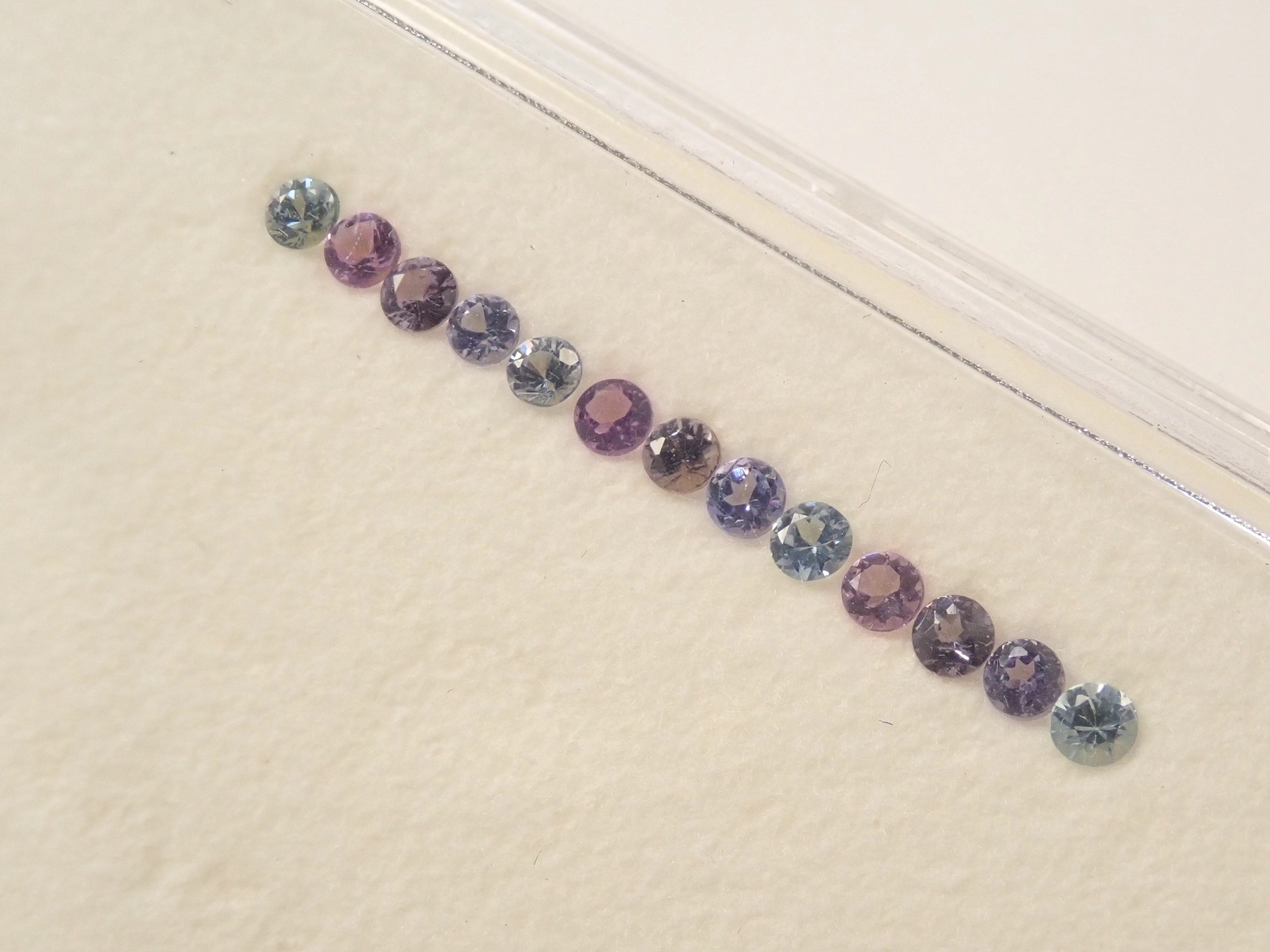 アイスブルーサファイア、アメシスト、ベキリーブルーガーネット、タンザナイトを使ったオーダーメイドのハーフエタニティリングセット「紫陽夜」です。どの宝石も特に美しいものを厳選しています。今回1点限定で販売いたします。