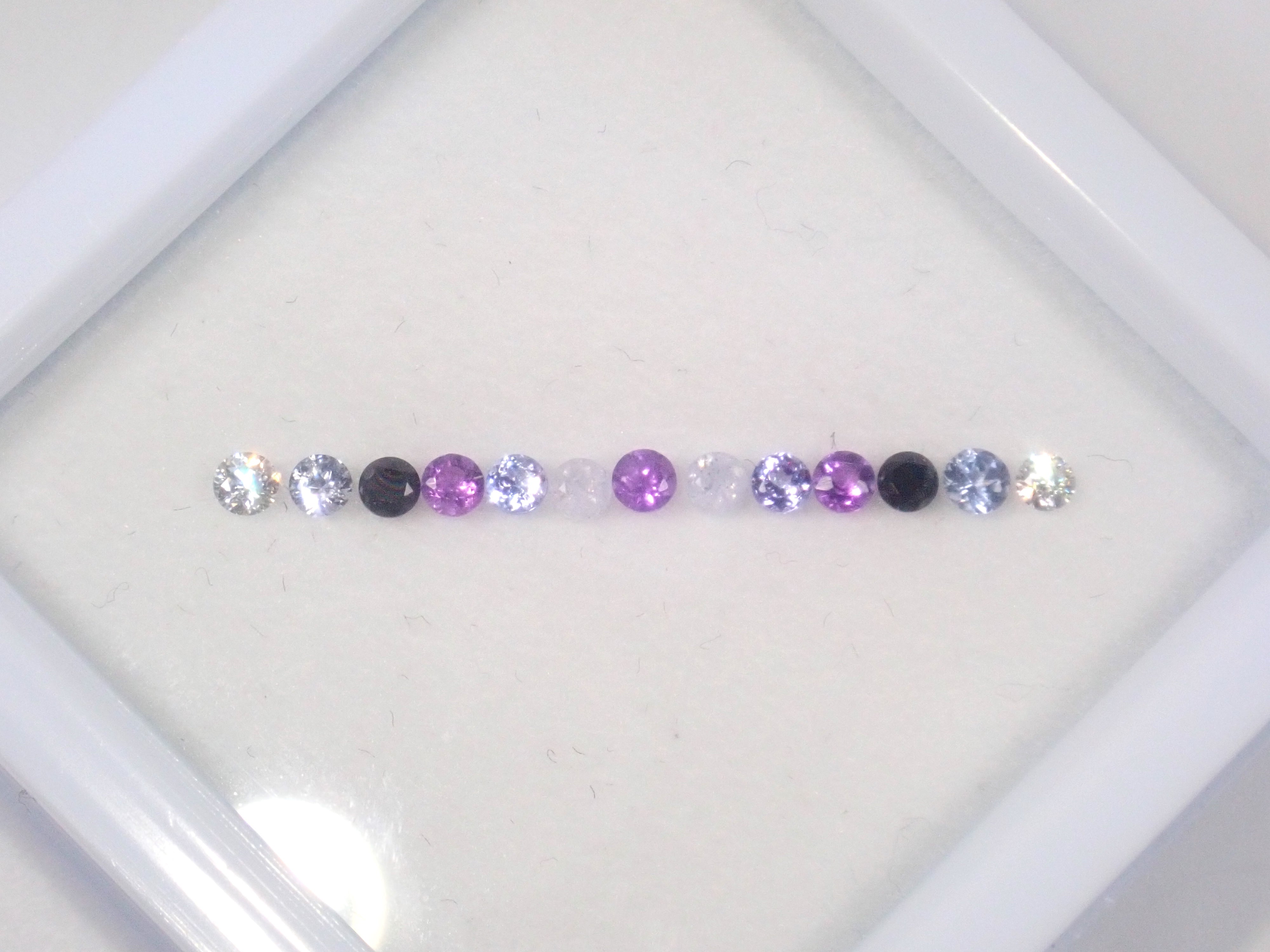 3 顆紫水晶、2 顆黑曜石、2 顆坦桑石、2 顆黑色尖晶石、2 顆海藍寶石和 2 顆鑽石。