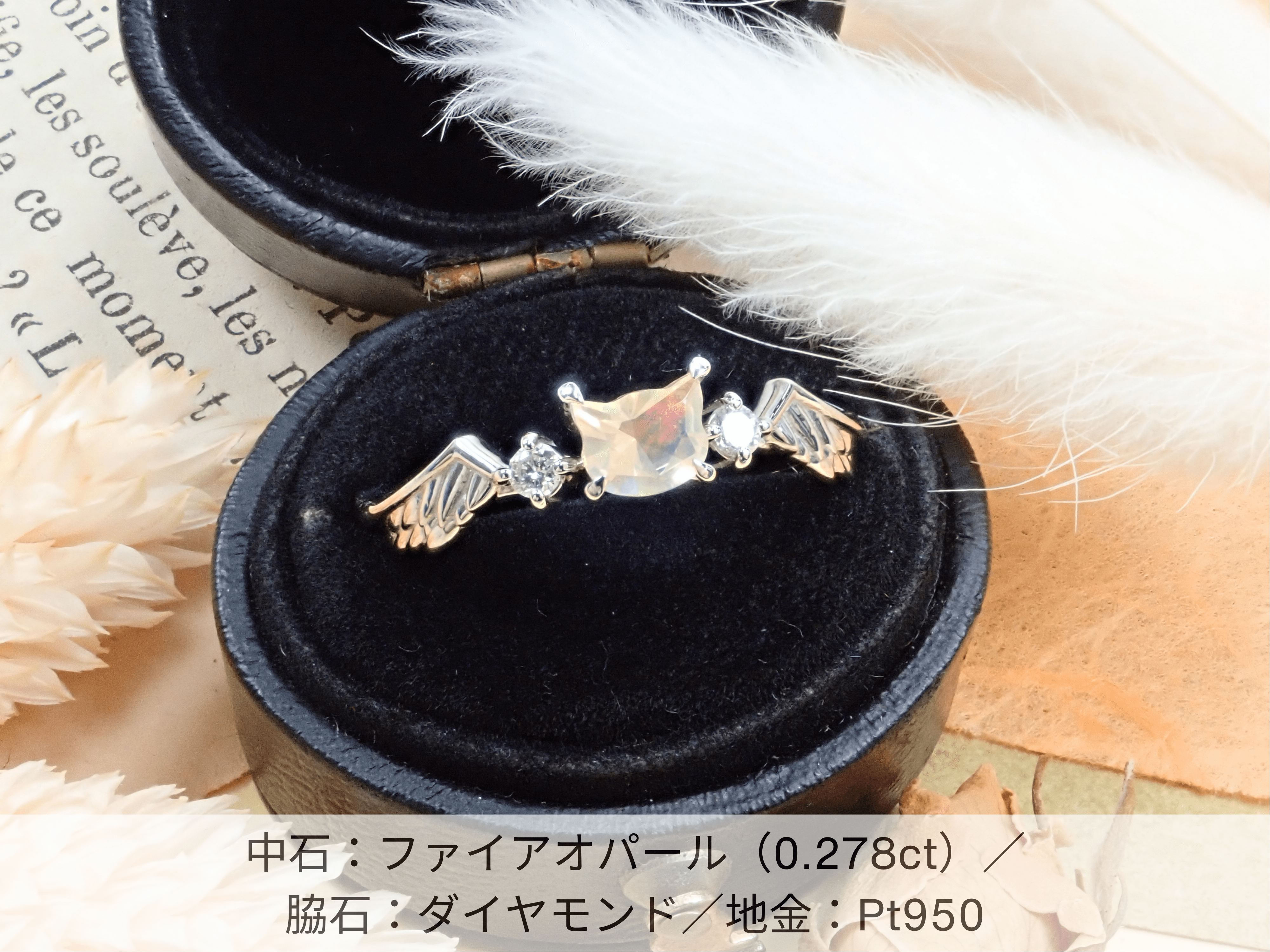 *對於半訂製框架的石座部分,熟練的工匠會根據石頭的形狀和大小打造新的石座。副石鑽石為無色鑽石,光澤度相當於 VS ~ SI 級。