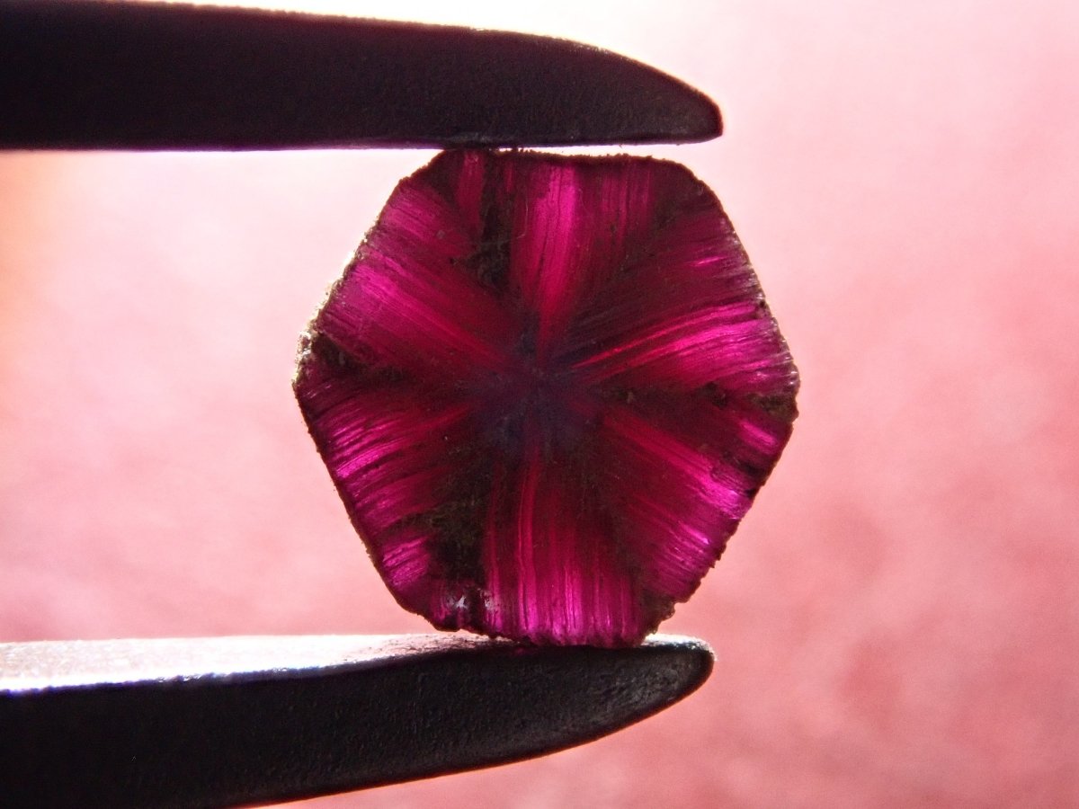 達碧茲圖案也稱為碳線。其中,trapichelby 是一種產量很少的稀有寶石。它的特點是這種 6 線星狀圖案。此外,有很多類型的達碧茲都有划痕和缺口,而不僅僅是紅寶石。這是我在緬甸買的一隻緬甸特拉比謝蜂。