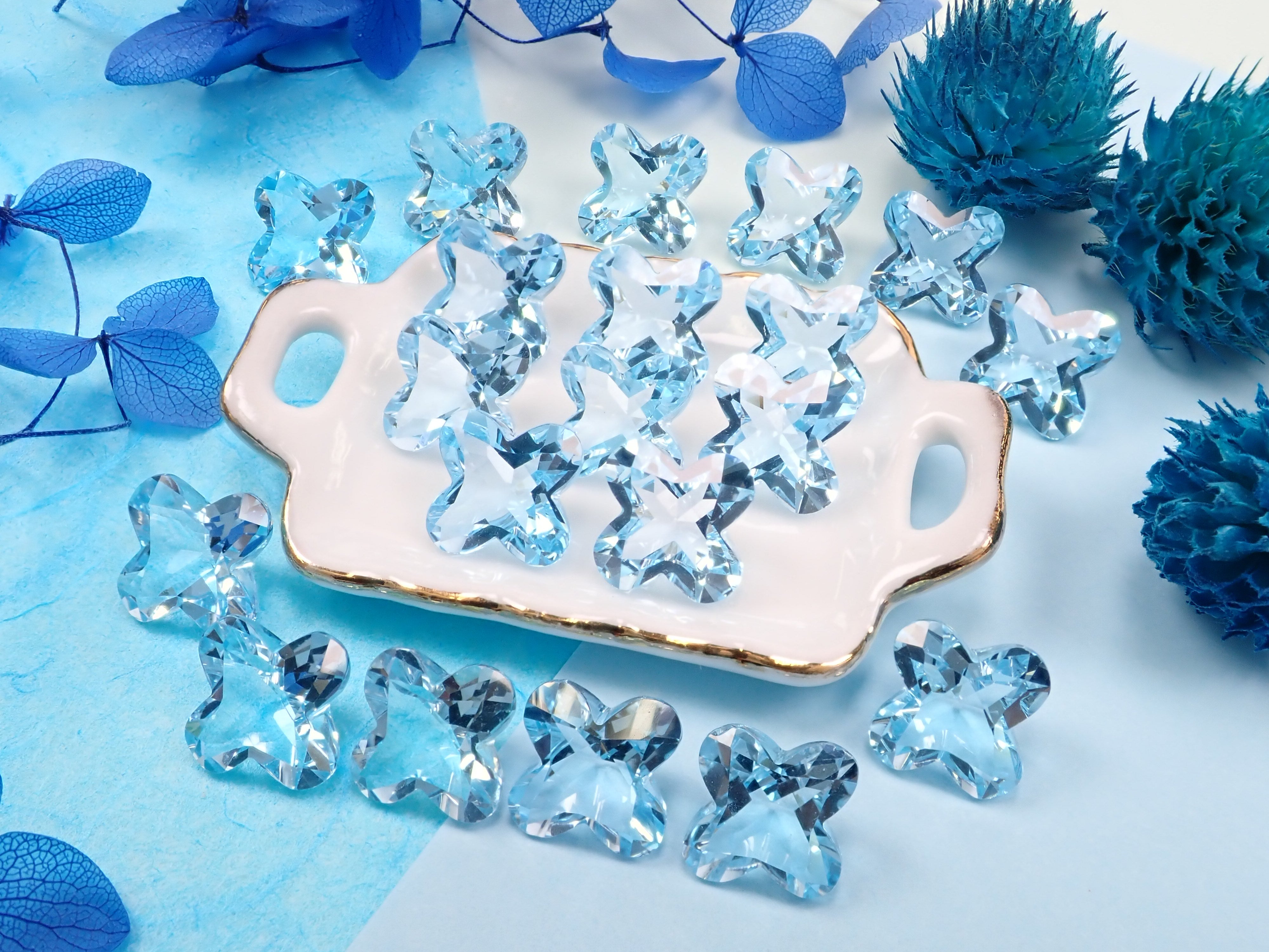 天藍色托帕石1顆(10mm,花朵切割)《多買有優惠》