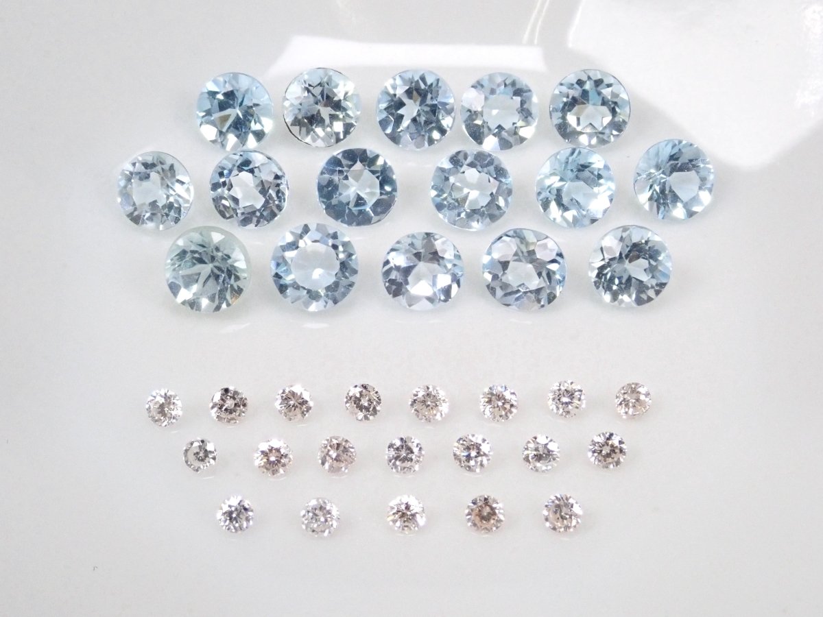 作為獎勵,我們將贈送您一顆米勒大小的鑽石(約 1.5 毫米,相當於 VS~SI 級)和一顆圓形切割天藍色托帕石。