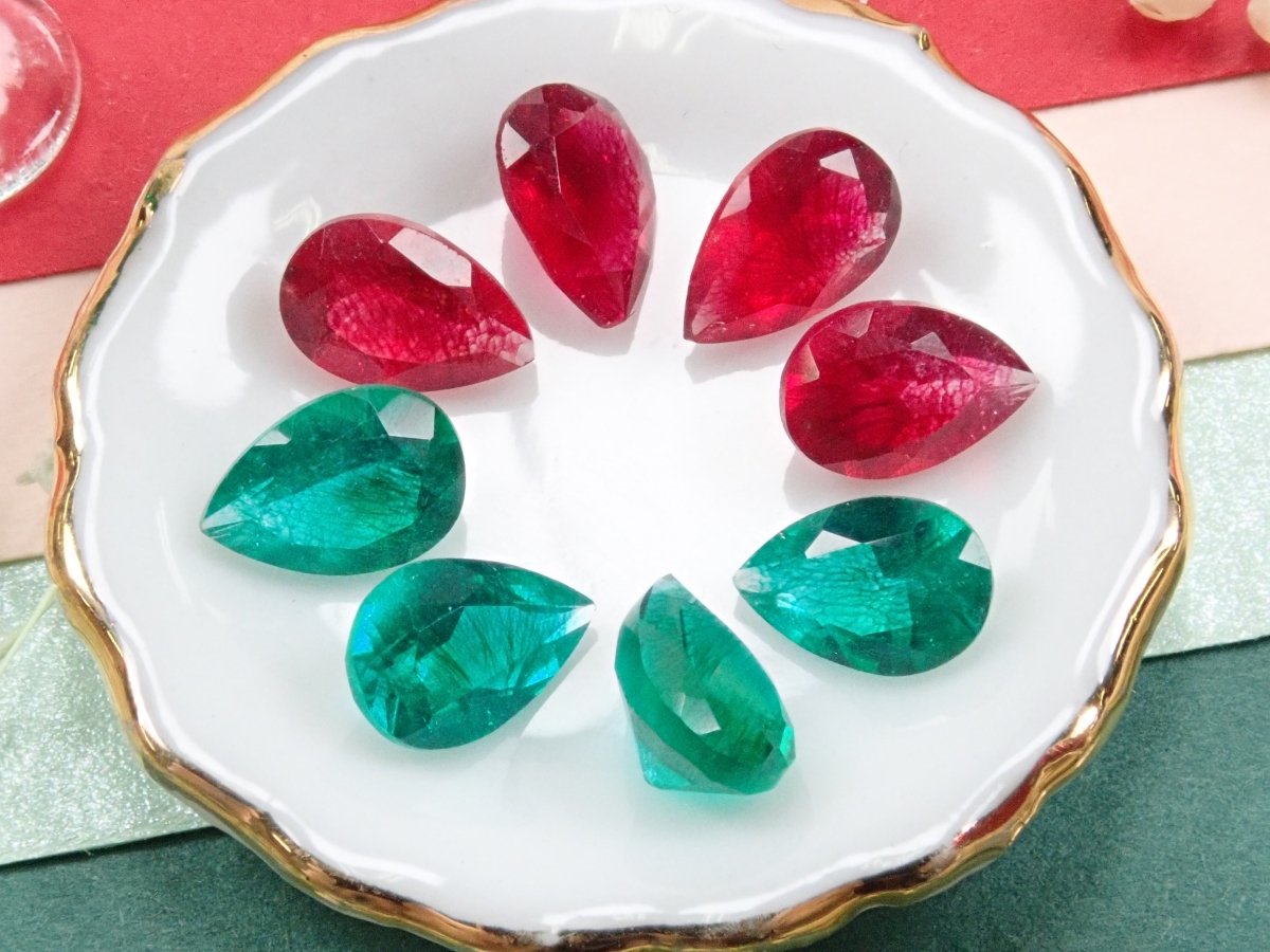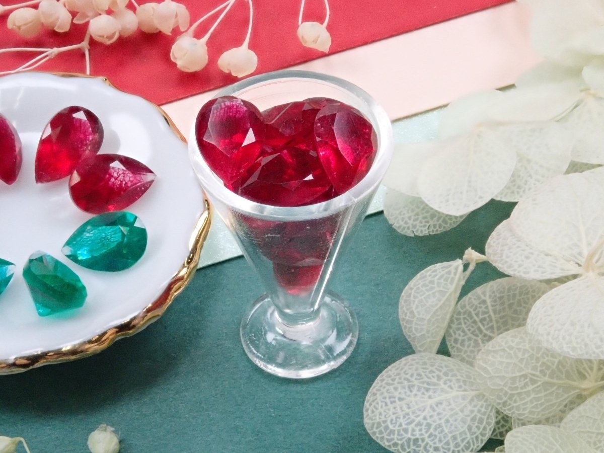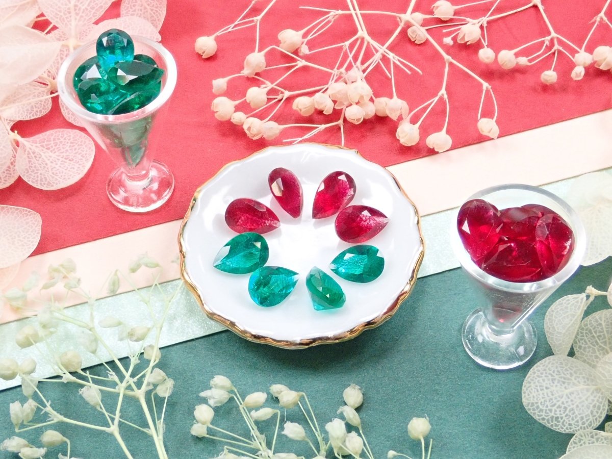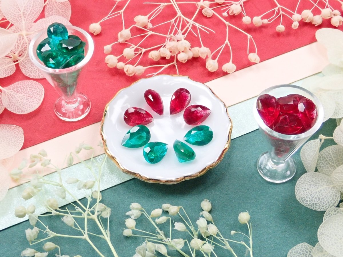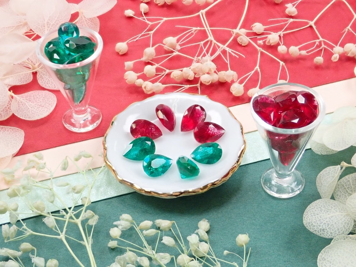 這是來自想要親眼目睹的顧客的聲音。 冷卻裂痕染色石英」 2 顆不同顏色的寶石套裝。特別是具有類似紅寶石顏色的「冷硬裂紋染色石英」並未大量生產,因此石英的流通量很少。兩者都有可愛的顏色。