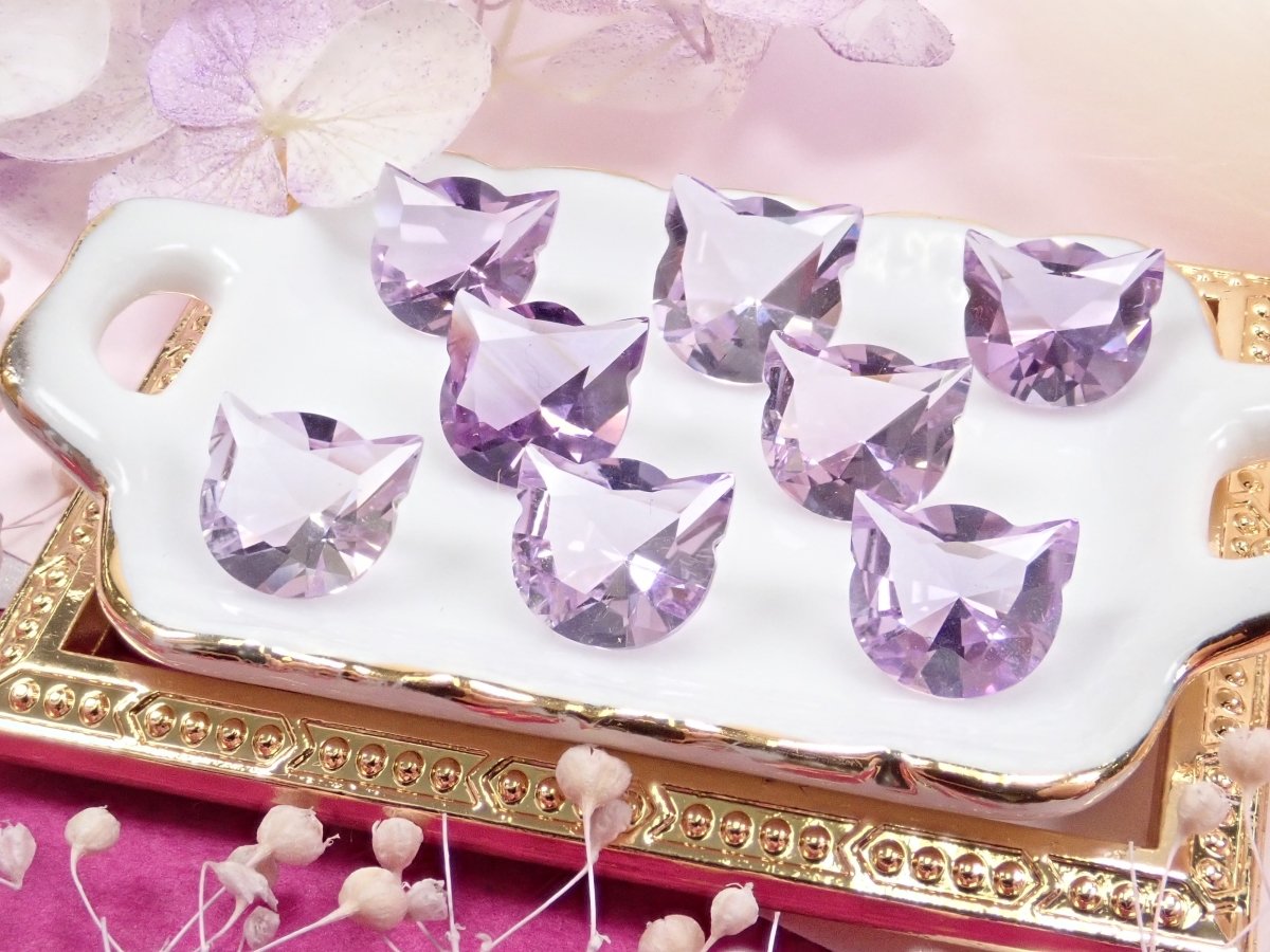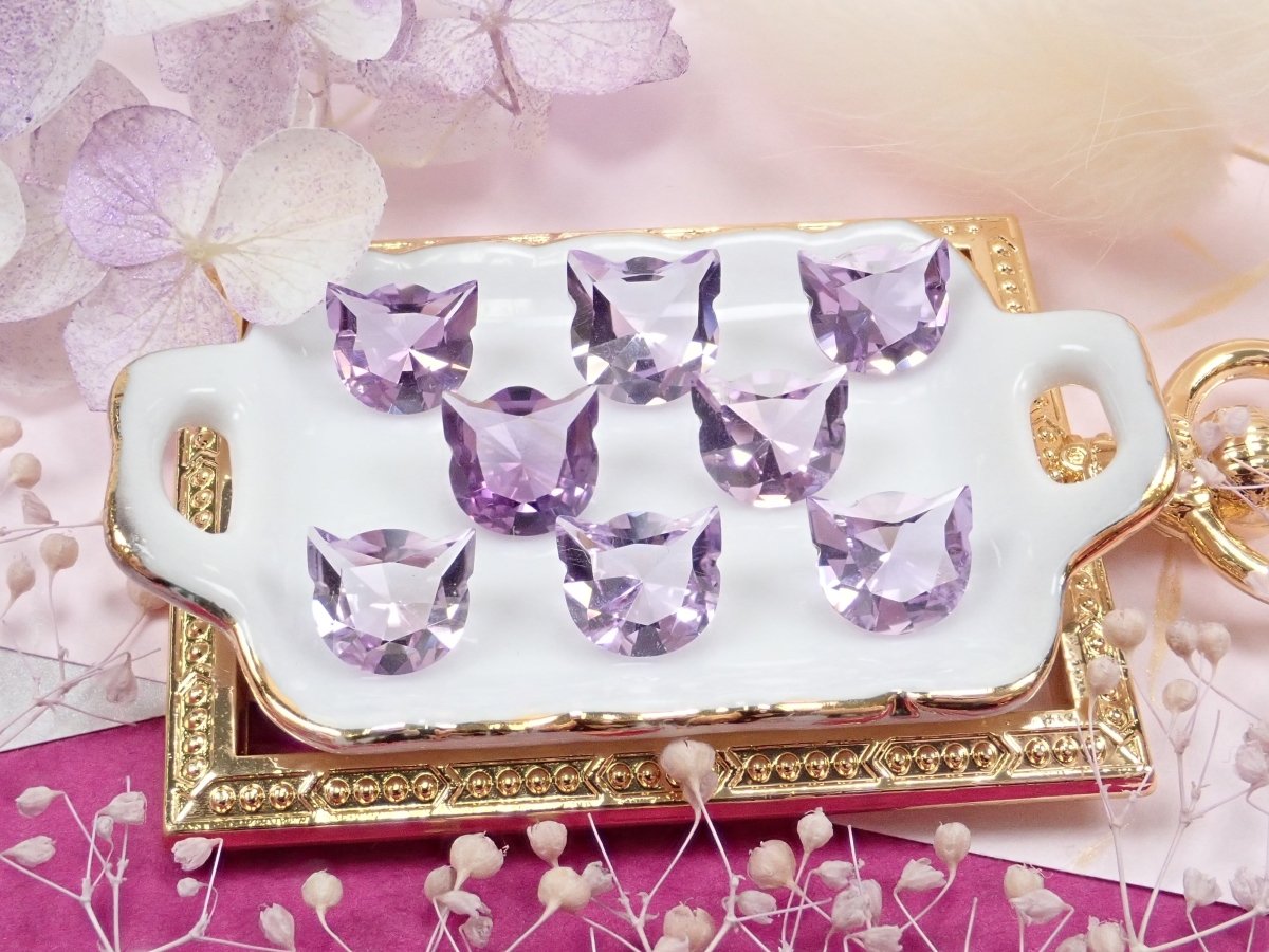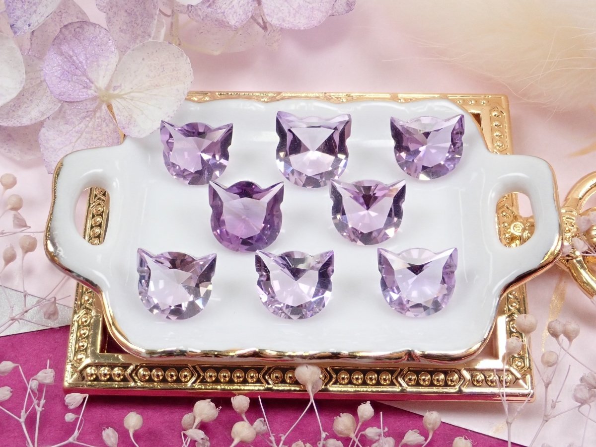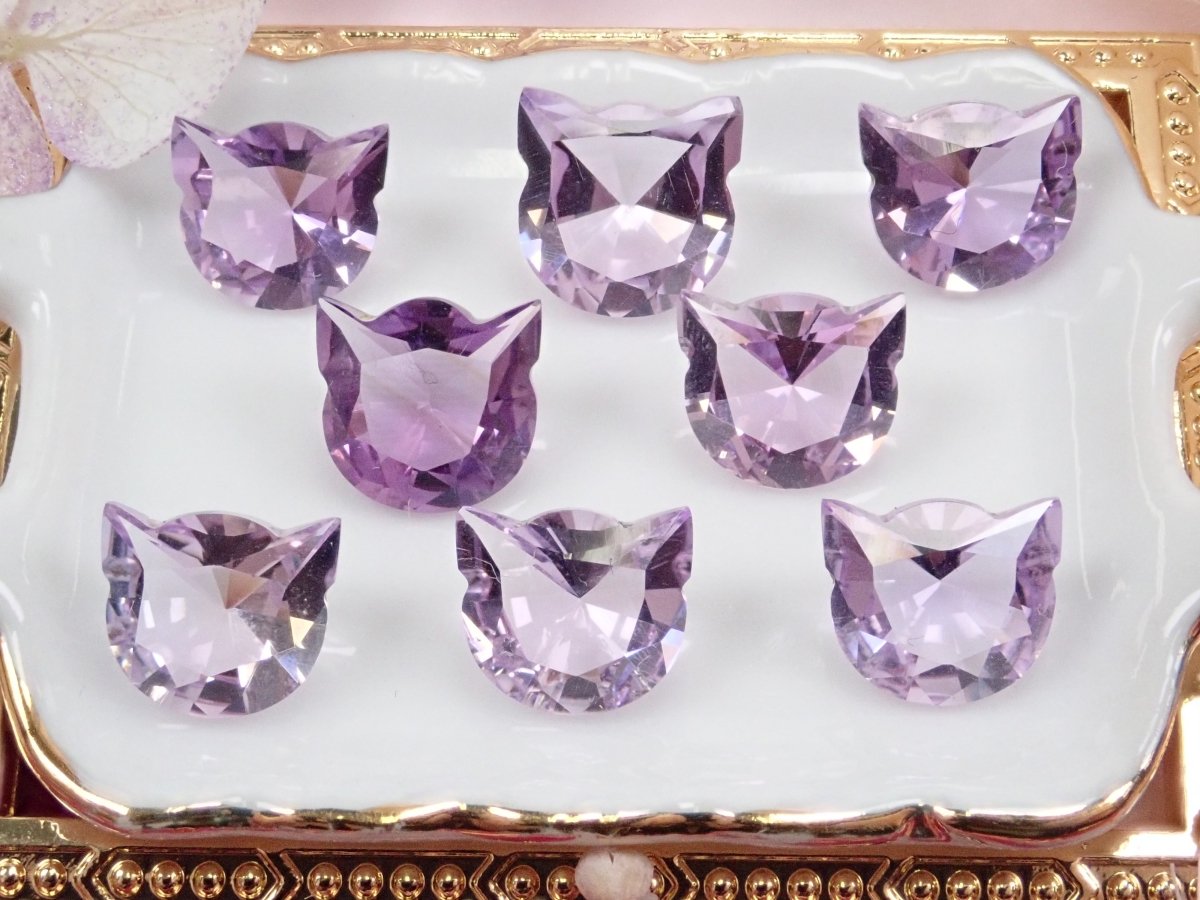 它被切割成貓臉的形狀,最初是由居住在泰國曼谷的 NOBU 先生經營的珠寶拋光工廠 NOBU 生產的。 [ 貓切]紫水晶8mm 。由於所有工作都是手工完成,即使是同一隻貓的形狀也可能略有不同,每隻貓都獨特而美妙。每天的產量限制在10件左右,這並不奇怪。 [ 貓切]