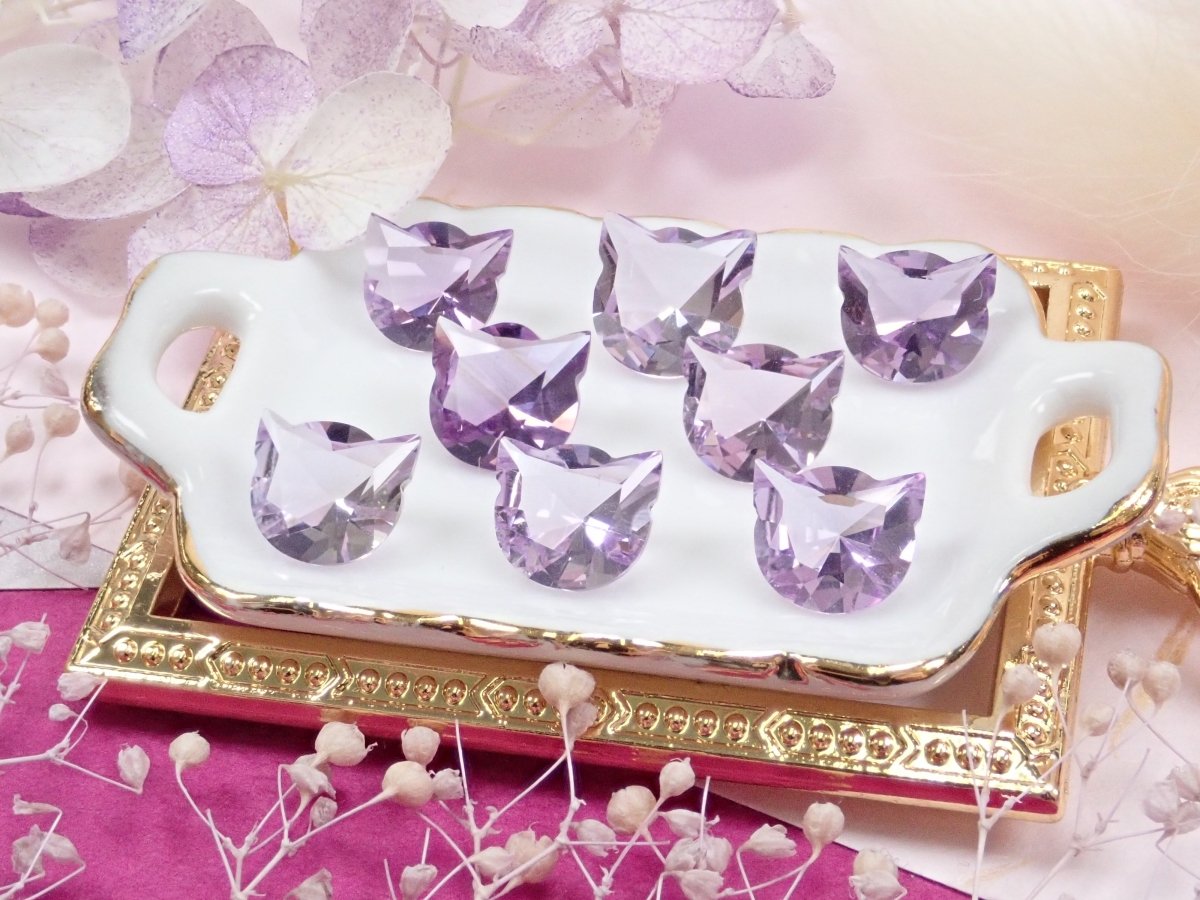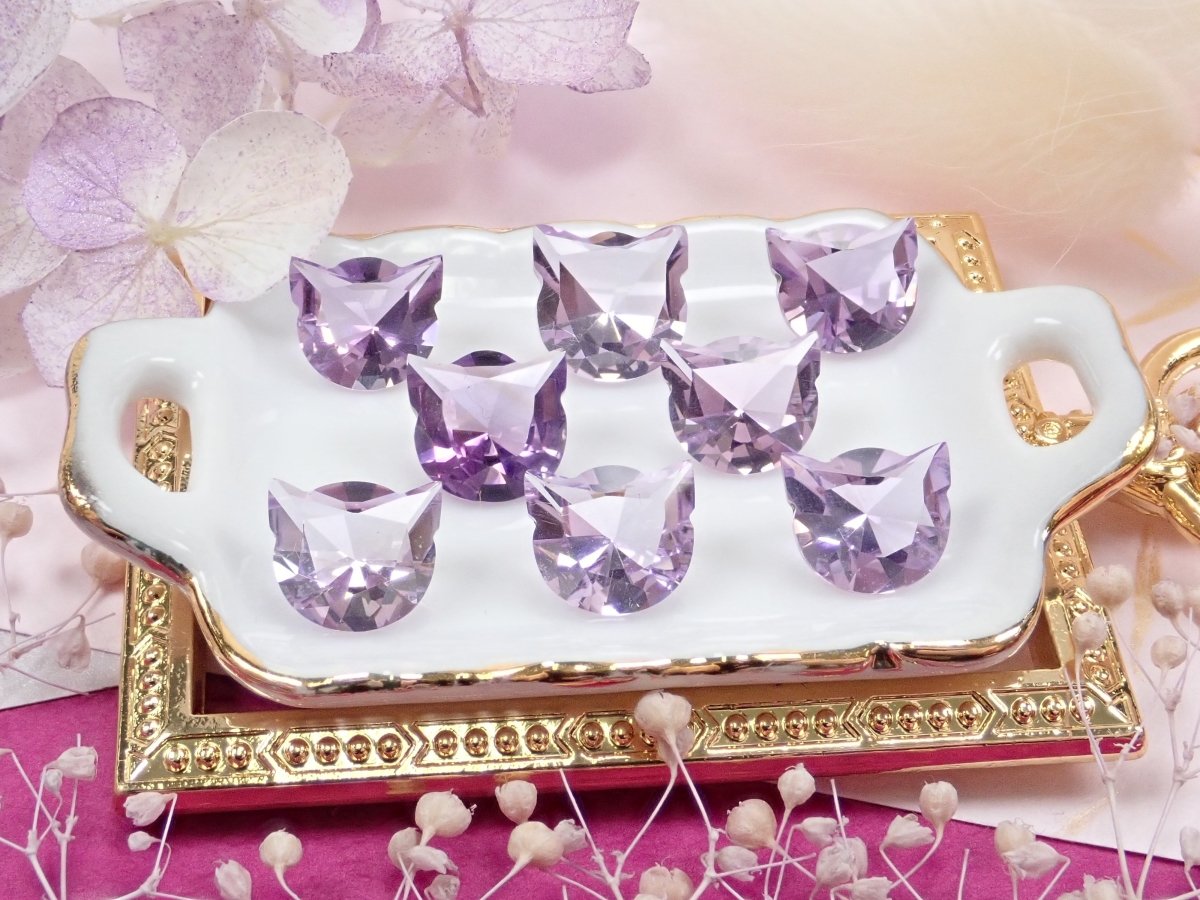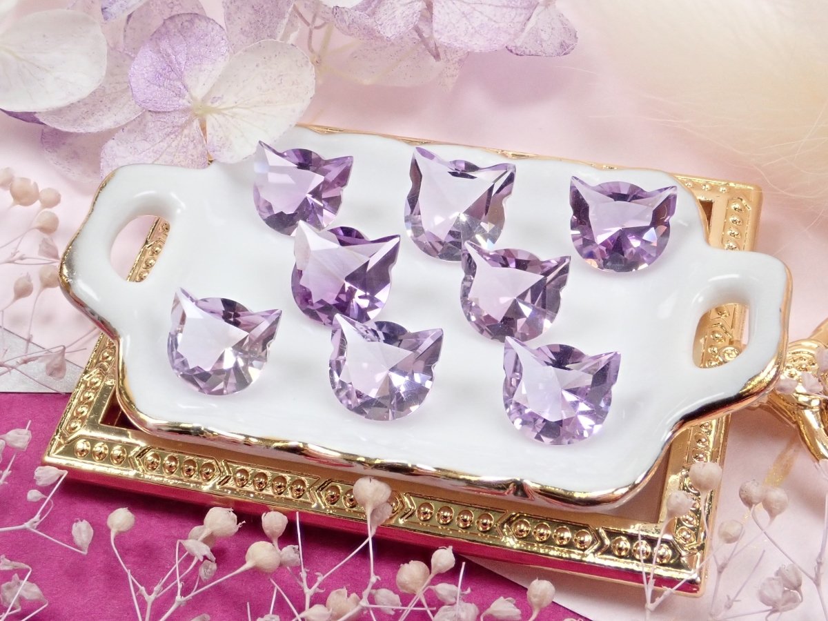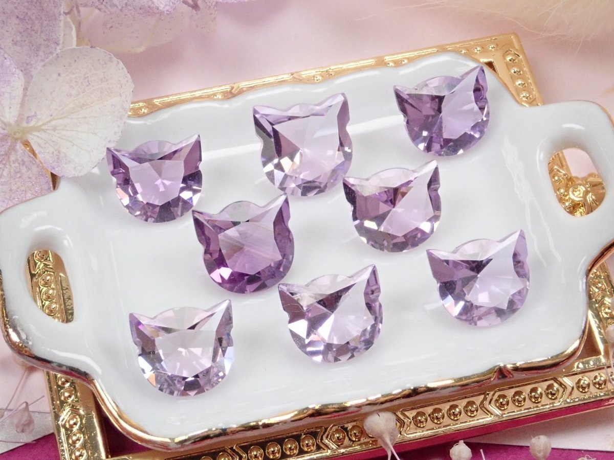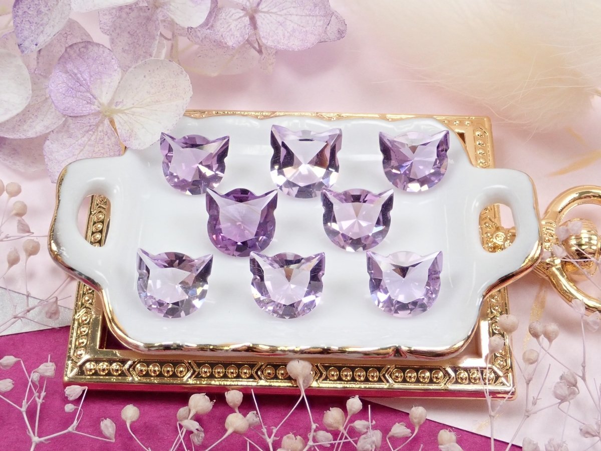 它被切割成貓臉的形狀,最初是由居住在泰國曼谷的 NOBU 先生經營的珠寶拋光工廠 NOBU 生產的。 [ 貓切]紫水晶8mm 。由於所有工作都是手工完成,即使是同一隻貓的形狀也可能略有不同,每隻貓都獨特而美妙。每天的產量限制在10件左右,這並不奇怪。 [ 貓切]