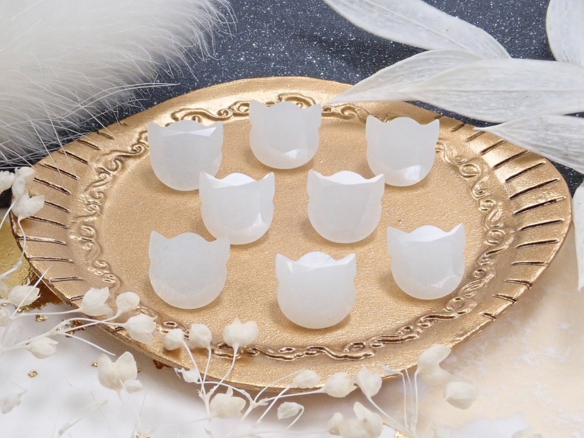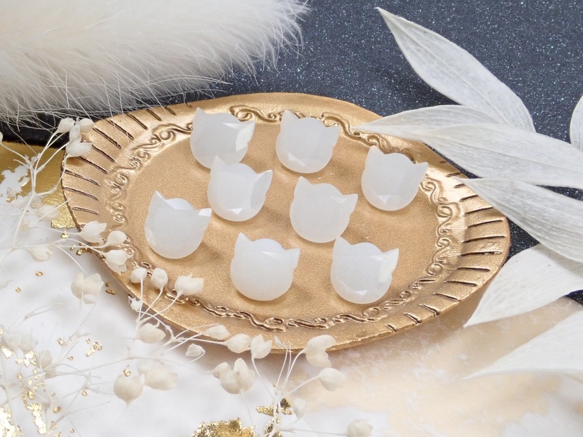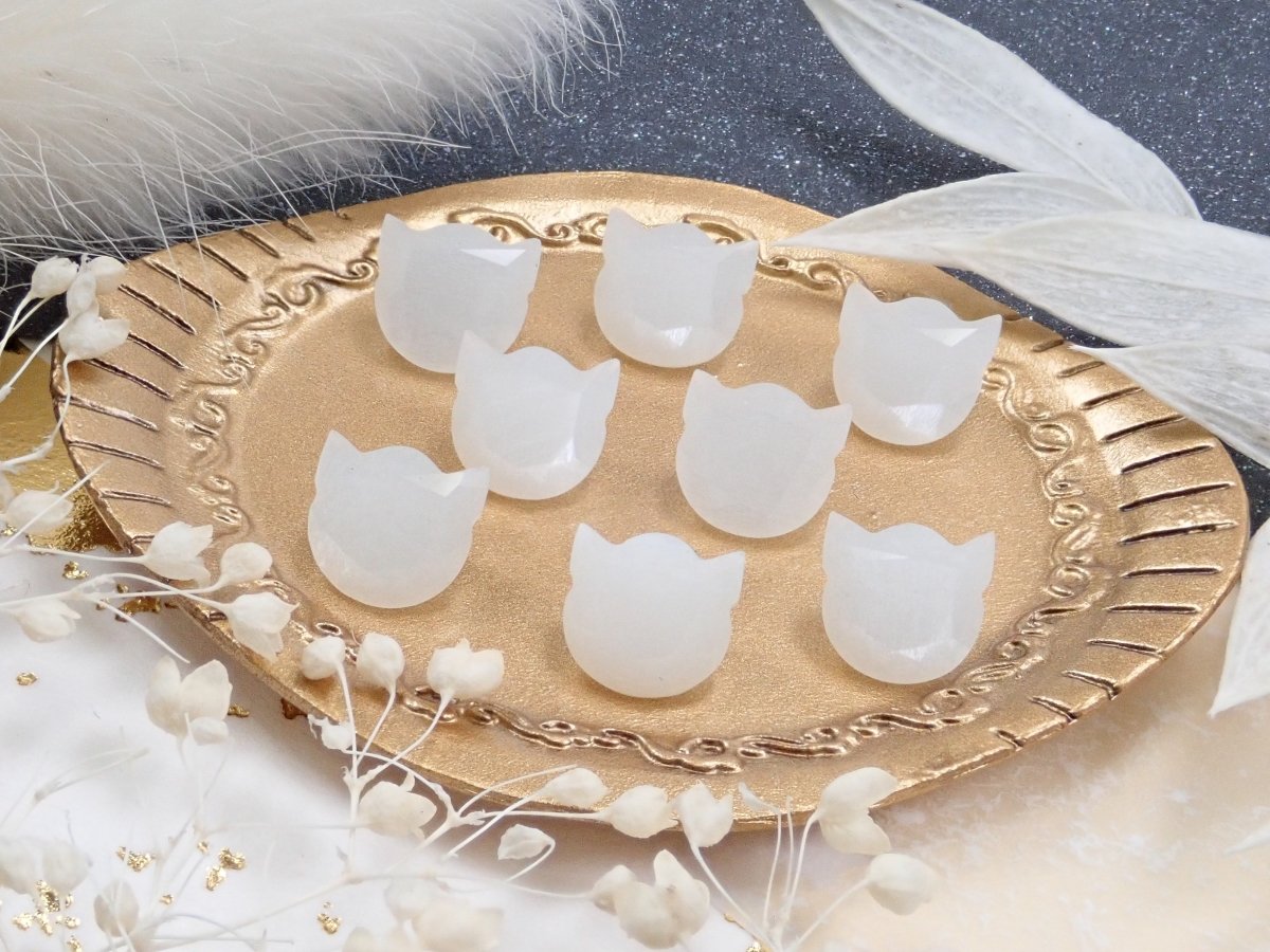 它被切割成貓臉的形狀,最初是由居住在泰國曼谷的 NOBU 先生經營的珠寶拋光工廠 NOBU 生產的。 [ 貓切]月光石5mm 。由於所有工作都是手工完成,即使是同一隻貓的形狀也可能略有不同,每隻貓都獨特而美妙。每天的產量限制在10件左右,這並不奇怪。 [ 貓切]