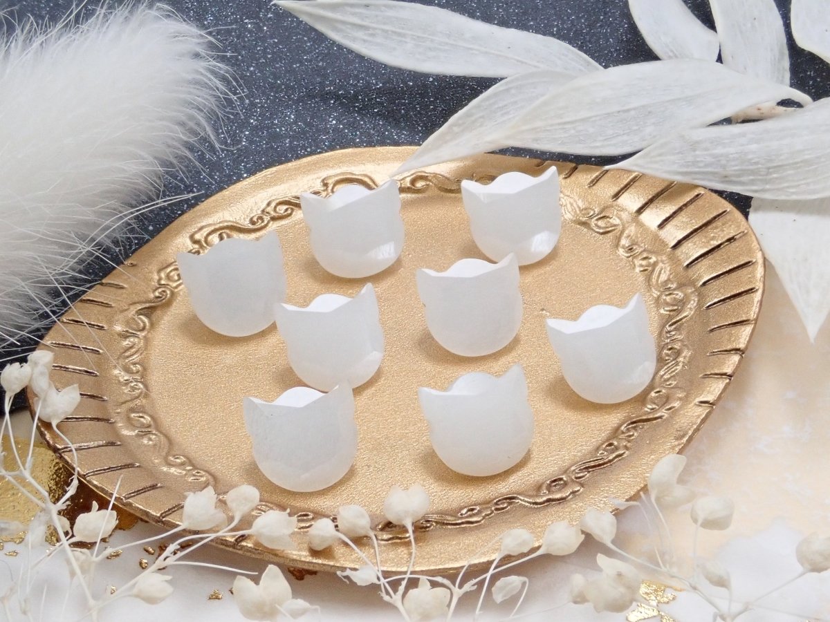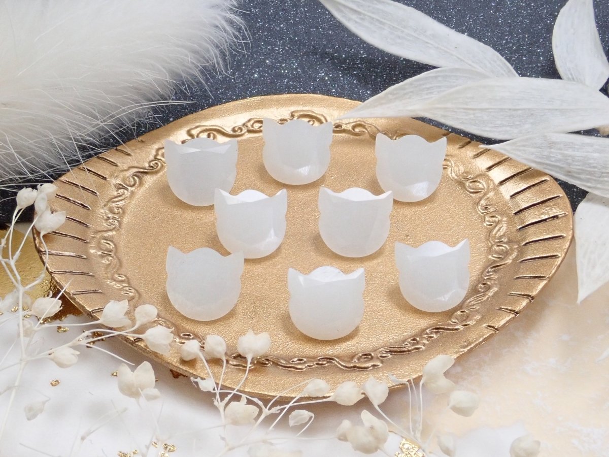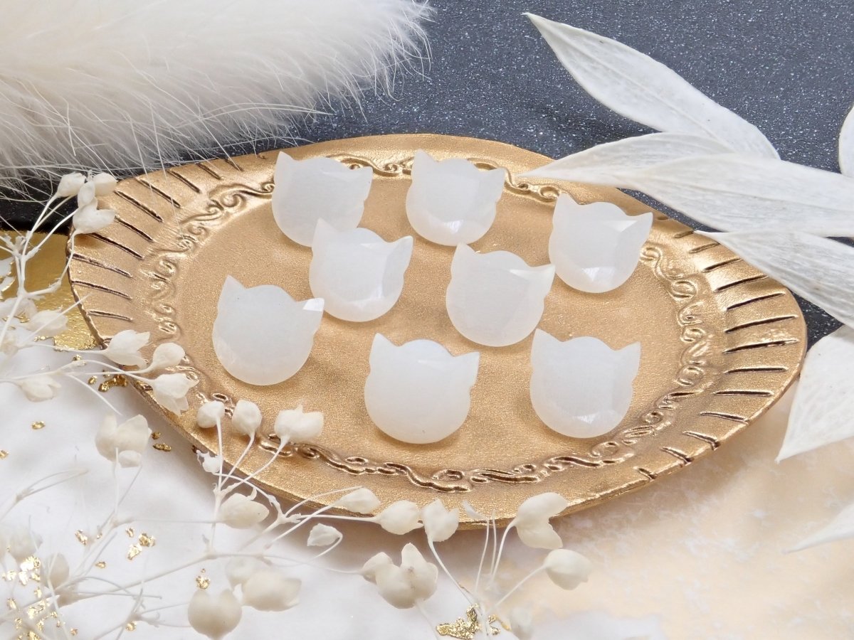 它被切割成貓臉的形狀,最初是由居住在泰國曼谷的 NOBU 先生經營的珠寶拋光工廠 NOBU 生產的。 [ 貓切]月光石5mm 。由於所有工作都是手工完成,即使是同一隻貓的形狀也可能略有不同,每隻貓都獨特而美妙。每天的產量限制在10件左右,這並不奇怪。 [ 貓切]