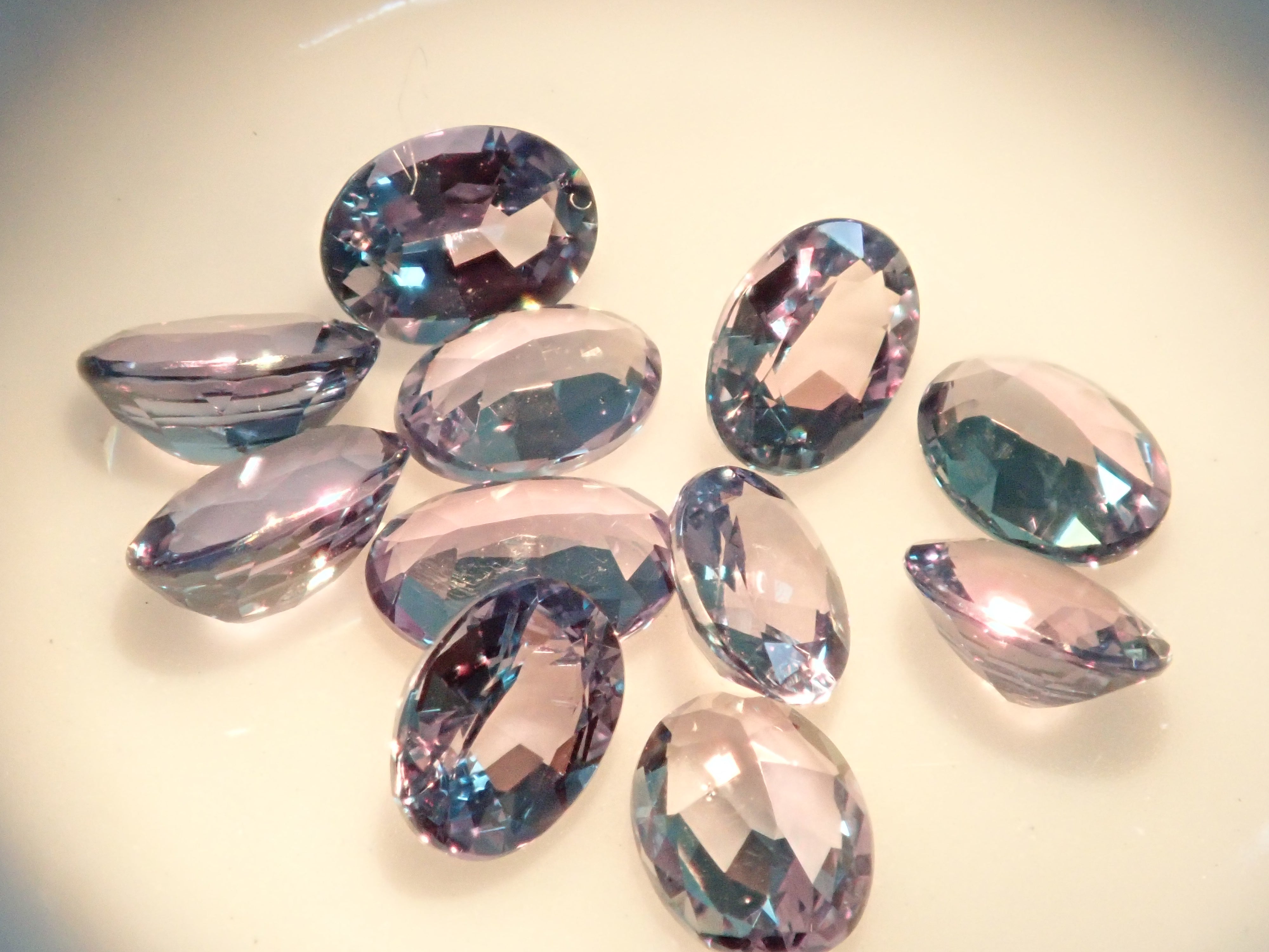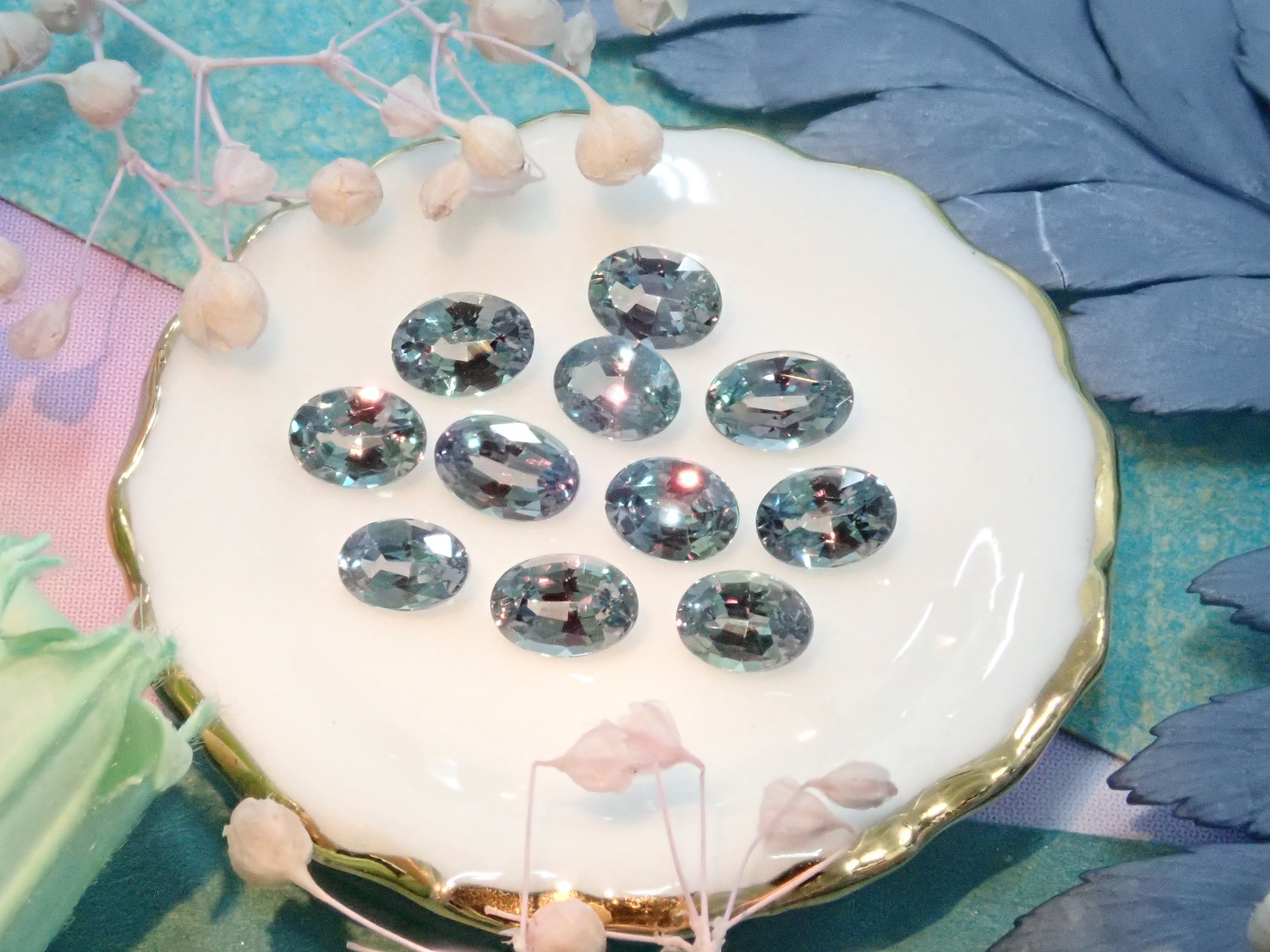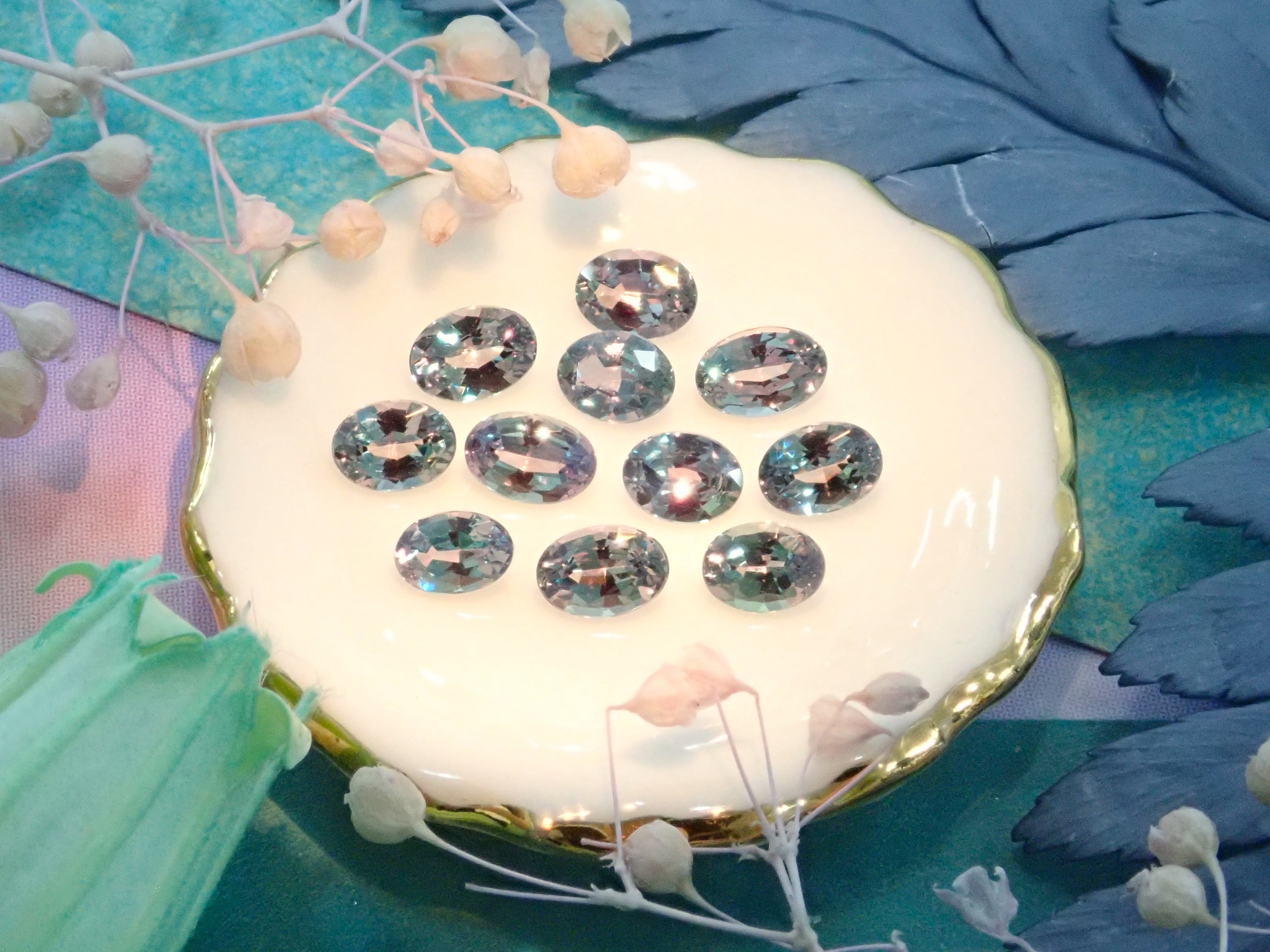 紫翠玉也被稱為「寶石之王」。它是一種顏色從綠色變為紅色的神秘寶石,也被稱為“白天的祖母綠和夜間的紅寶石”。這是巴西翠玉,透明度高,品質優良,可欣賞顏色變化。它們都明亮且高度透明。平均尺寸為 0.12 克拉。