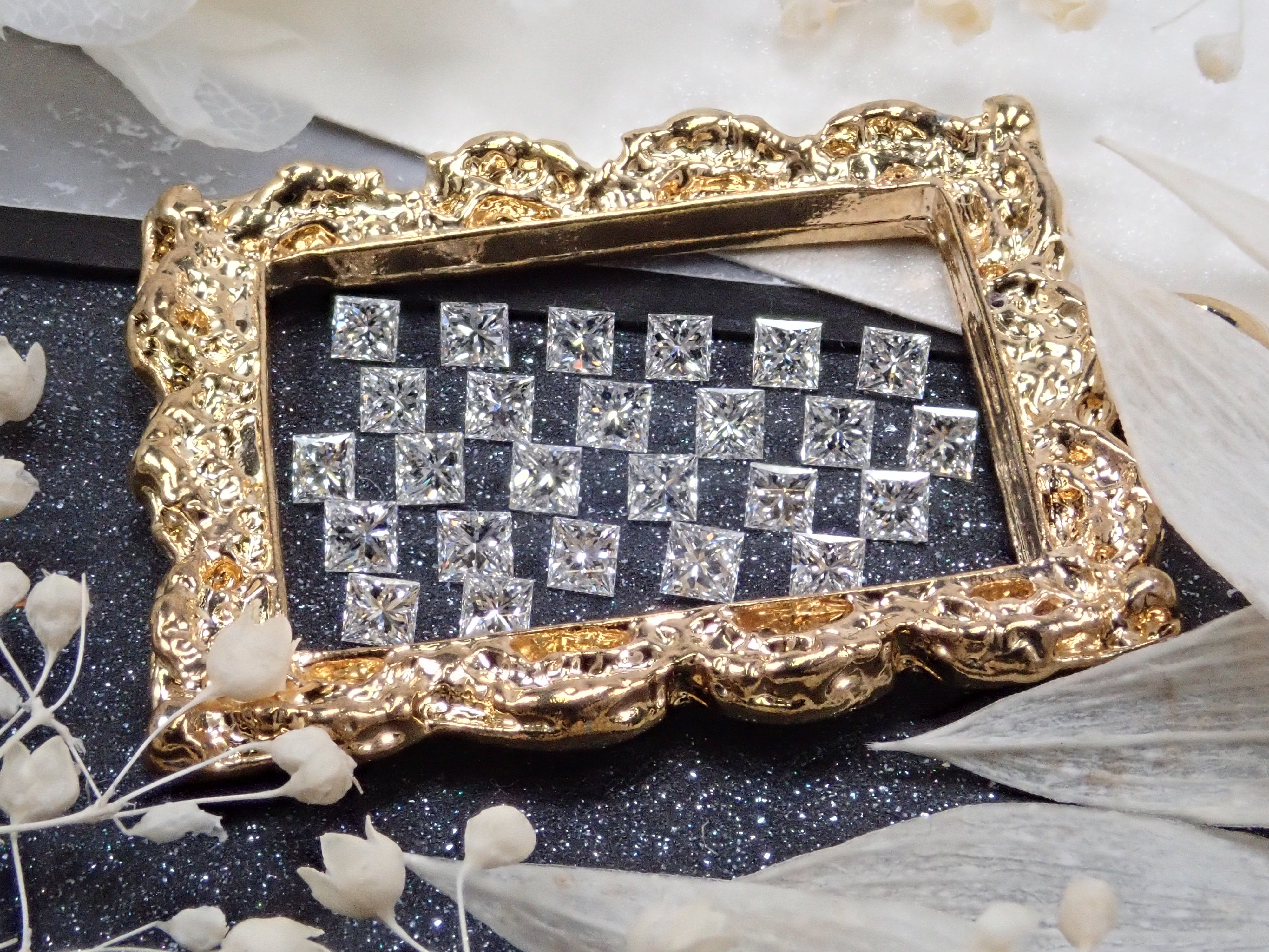 公主方形切割十分精細細膩,切工較多,但細小的切工卻營造出獨特的馬賽克般的反光,賦予其沉穩優雅的光澤。