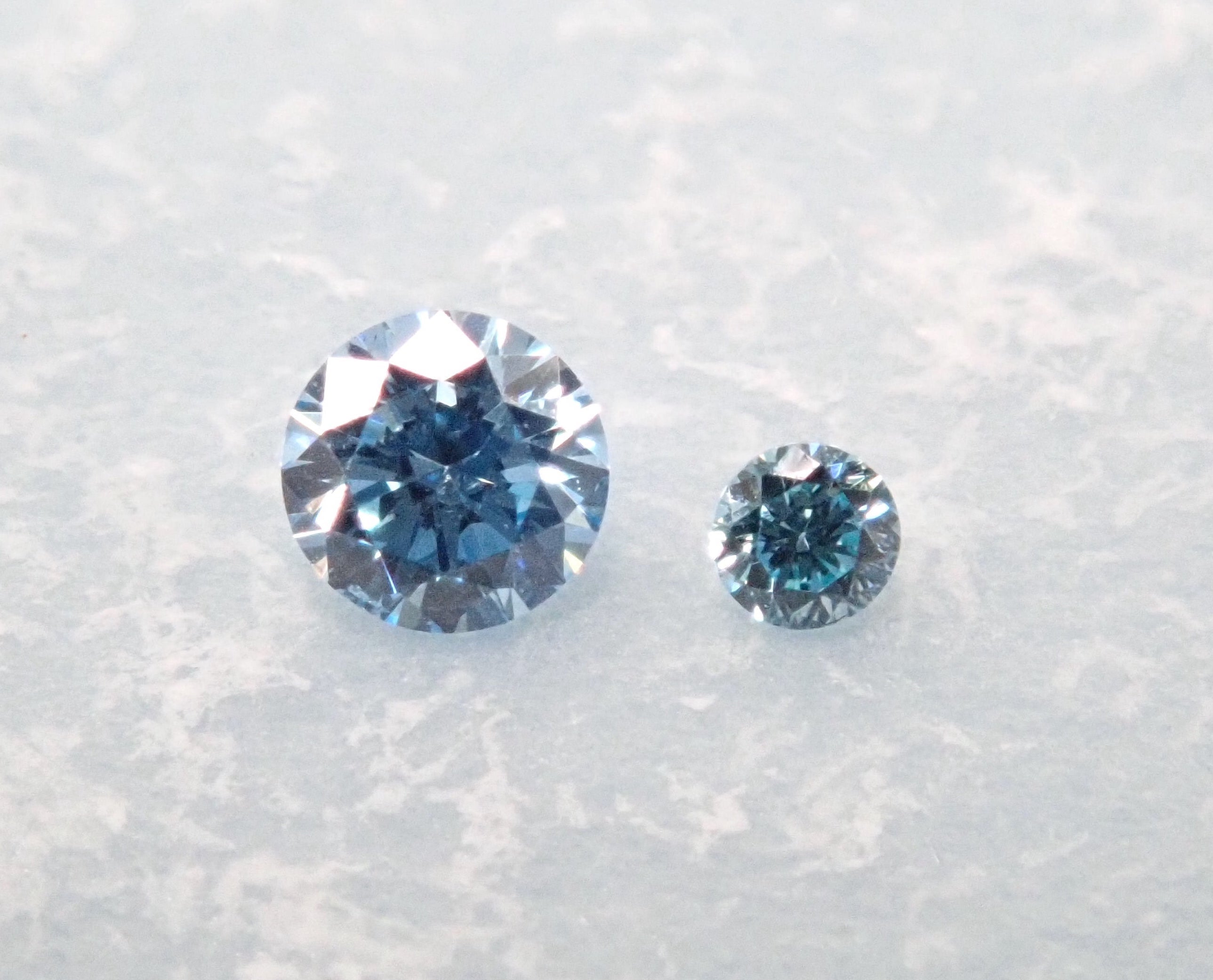 尺寸為1.2毫米或2.0毫米,淨度相當於VS級(即使用放大鏡也難以發現內含物的鑽石),顏色為彩綠藍至彩濃藍綠,切工相當於好至非常好。