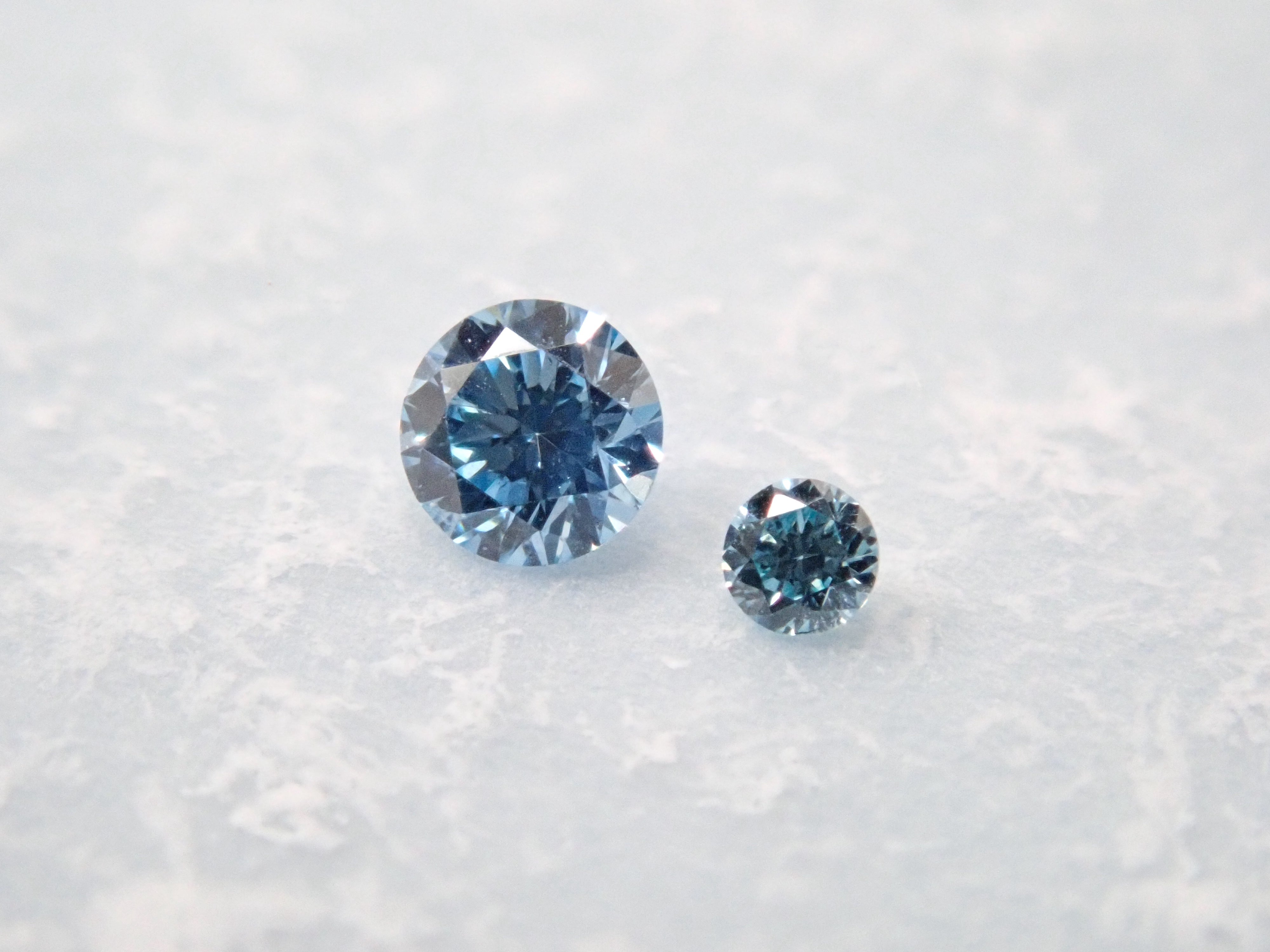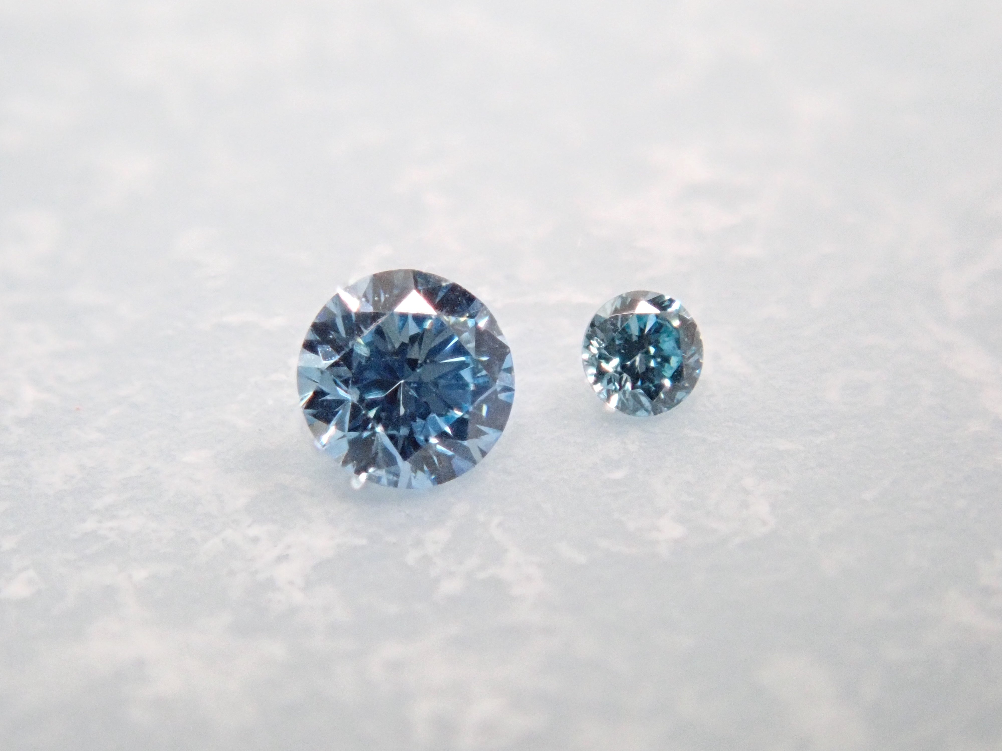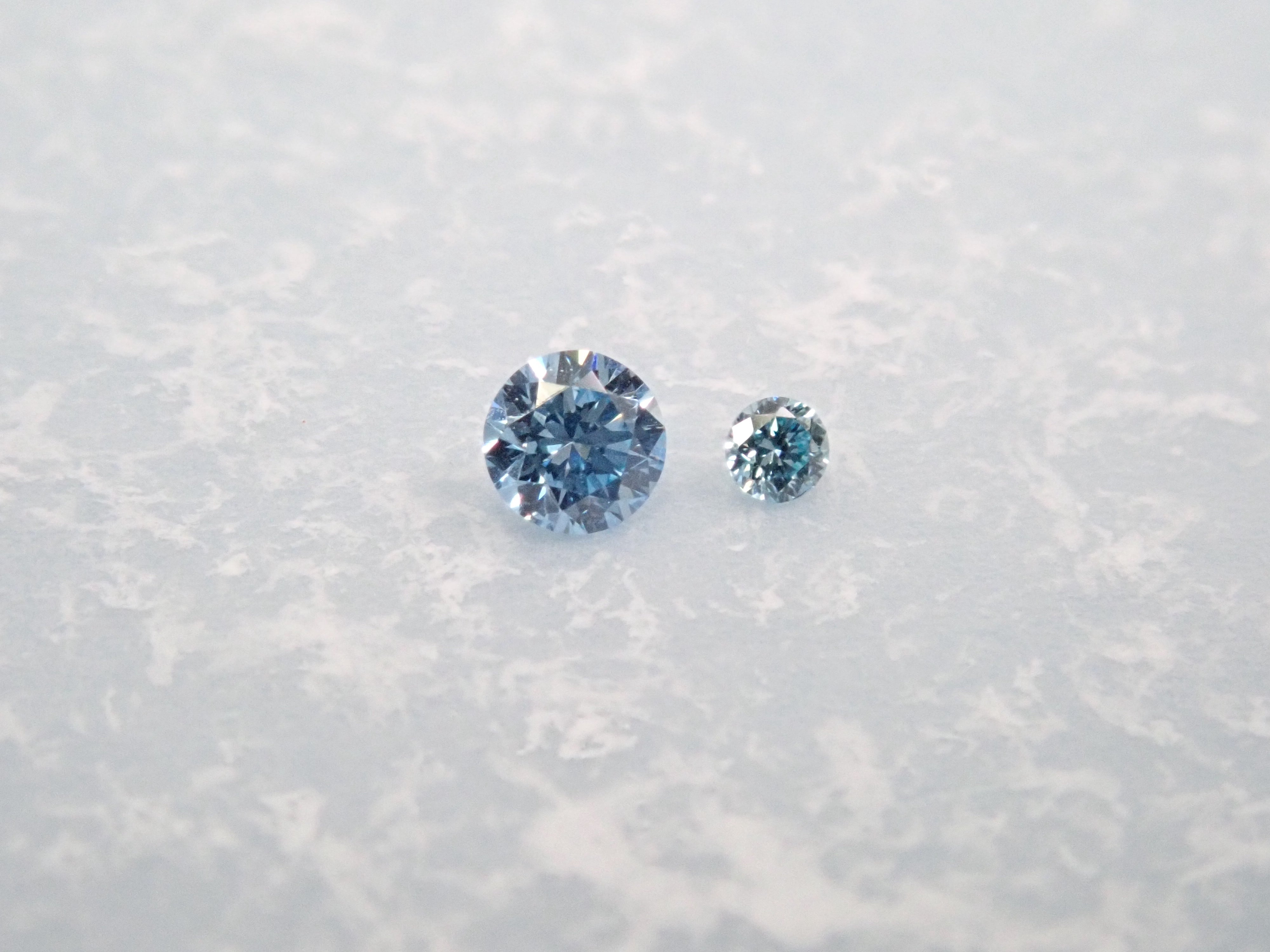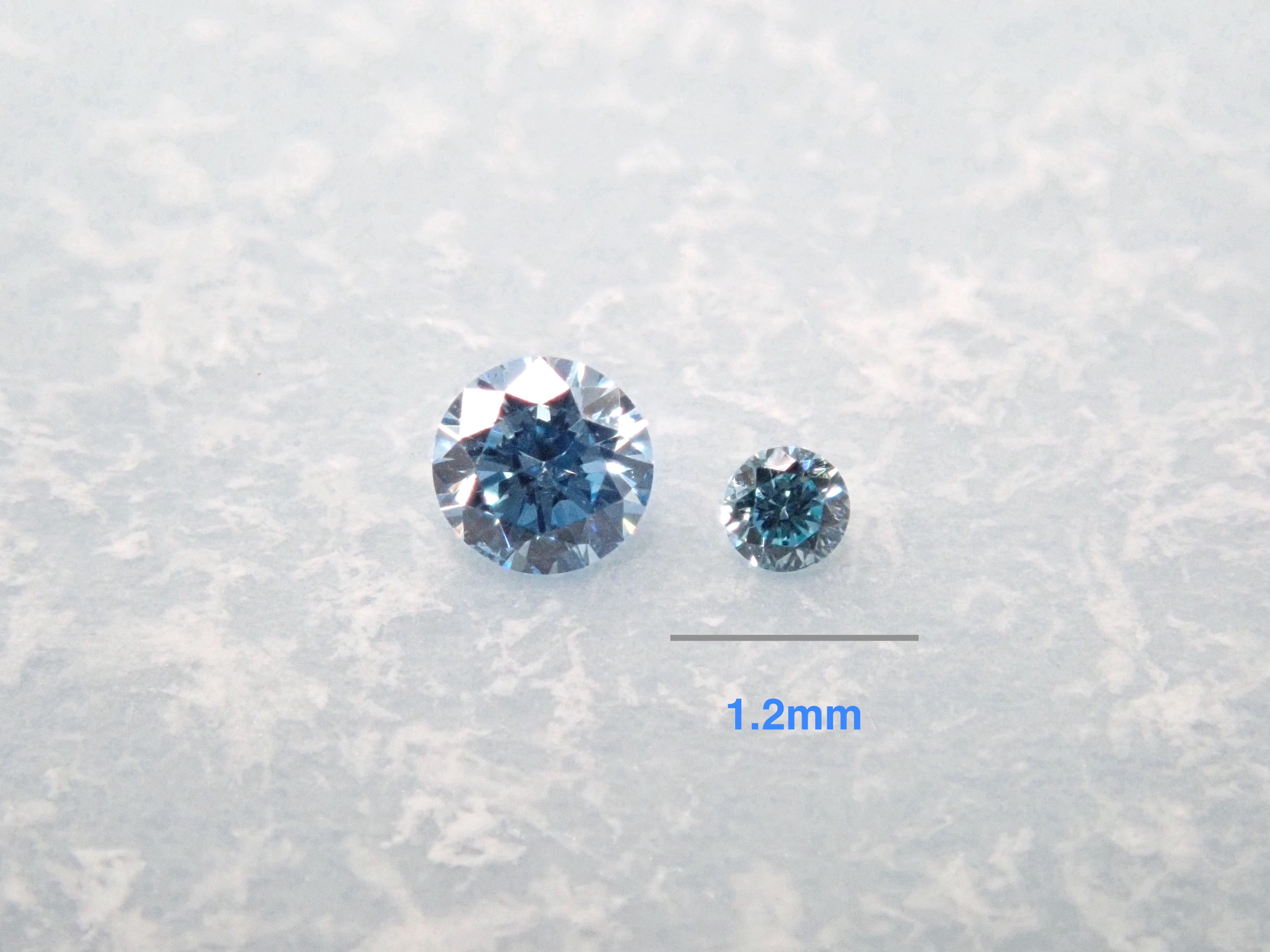 一顆冰藍鑽石,1.2毫米或2.0毫米(圓形切割,相當於VS級)。 這是一顆冰藍色鑽石,其特點是顏色為淡藍色,是經過處理的無色鑽石(D至H顏色鑽石)。