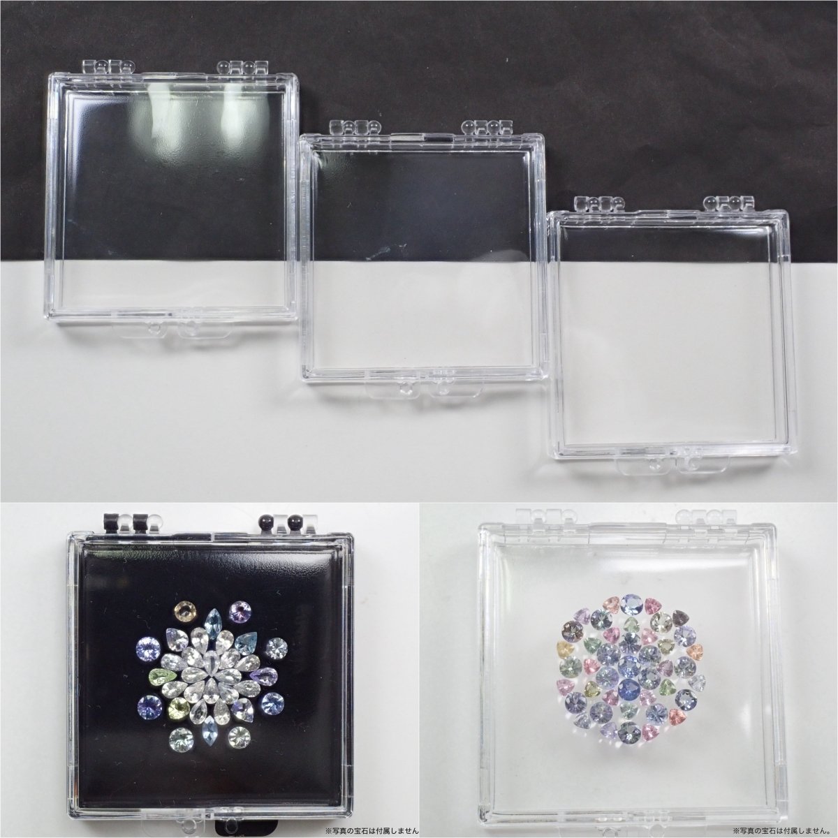 [珠寶商工具] 3 件組凝膠釘盒(2 種類型:透明和黑色背景)(包含 3 顆藍色藍寶石)(多件購買可享折扣)