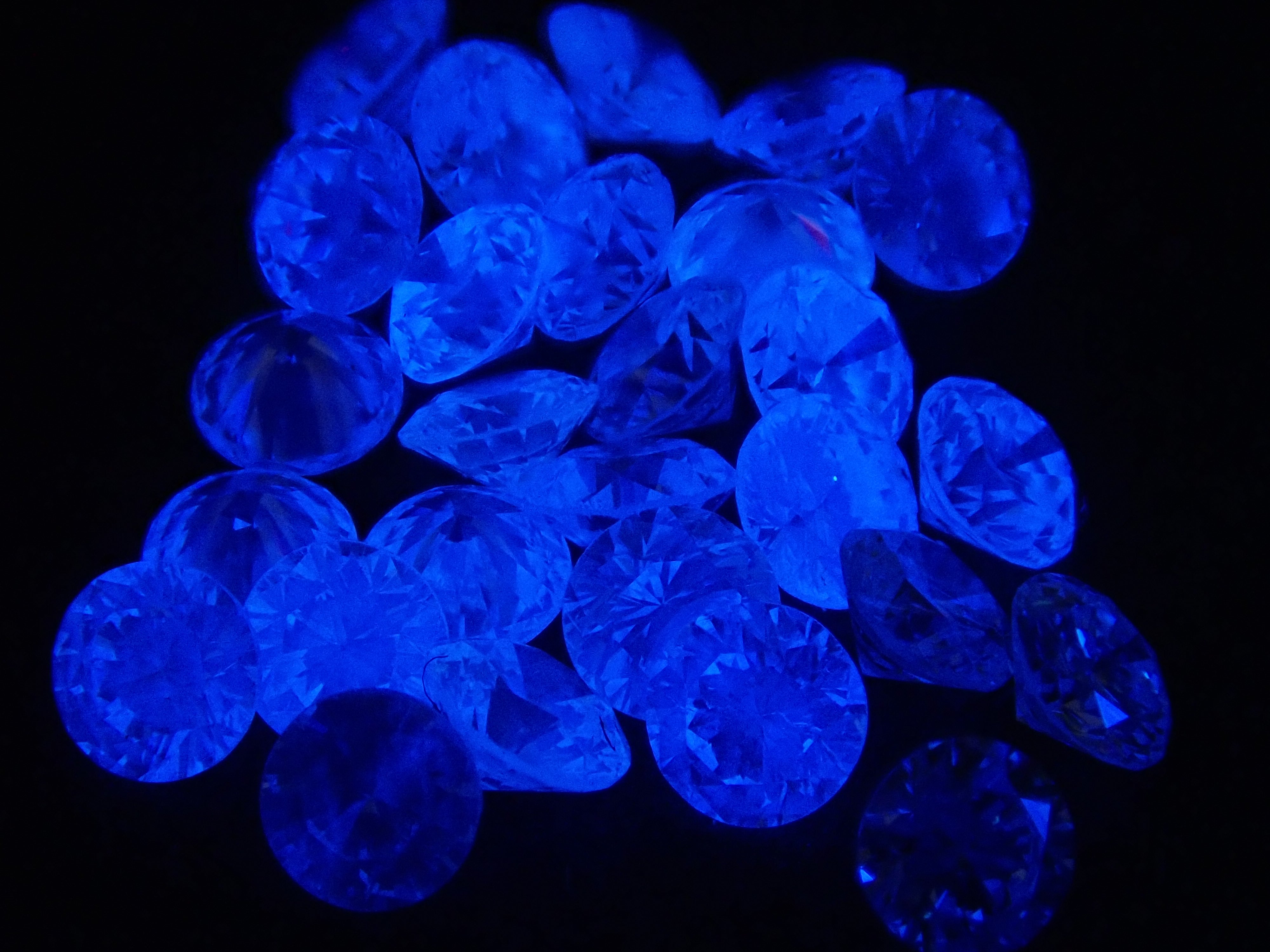 這些鑽石經過精心挑選,透明度高達VS-SI級,並帶有藍色螢光。在黑光照射下,它們會發出藍色螢光,顏色從淺藍色到深藍色。