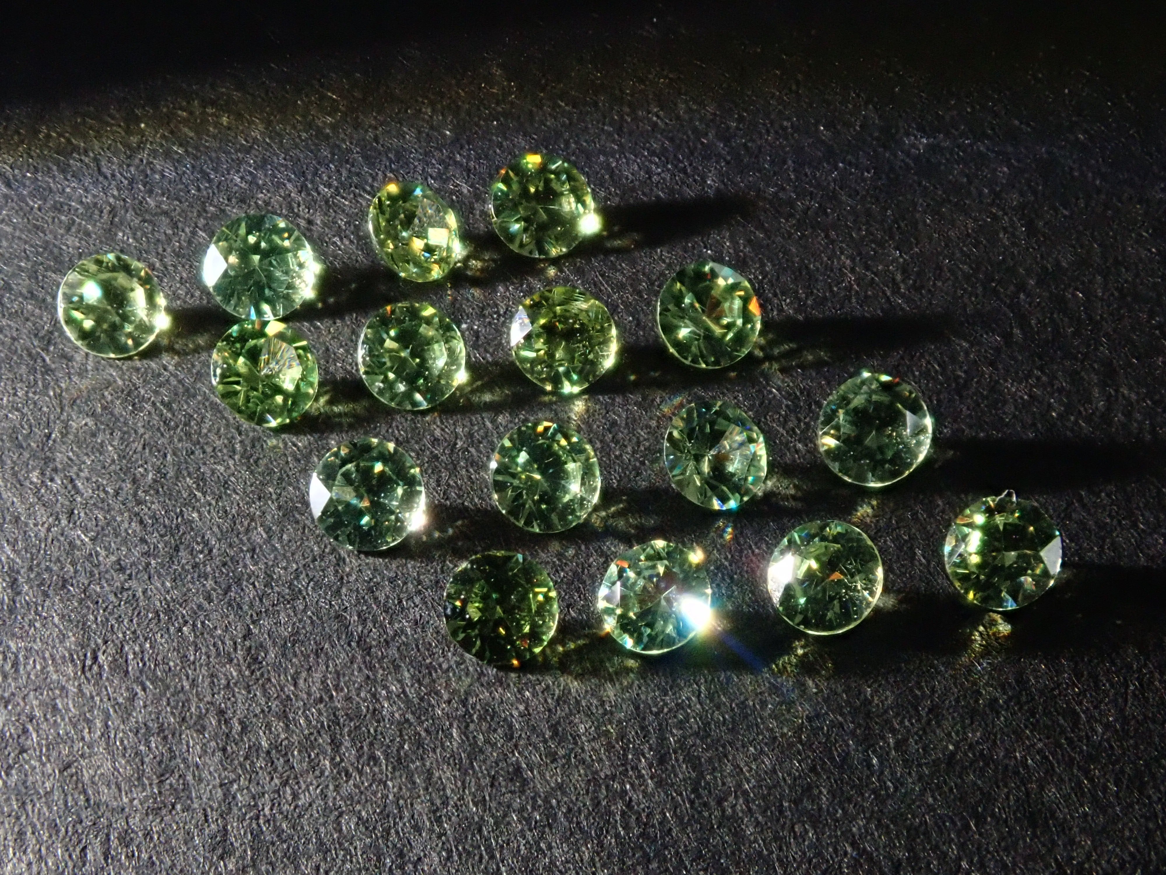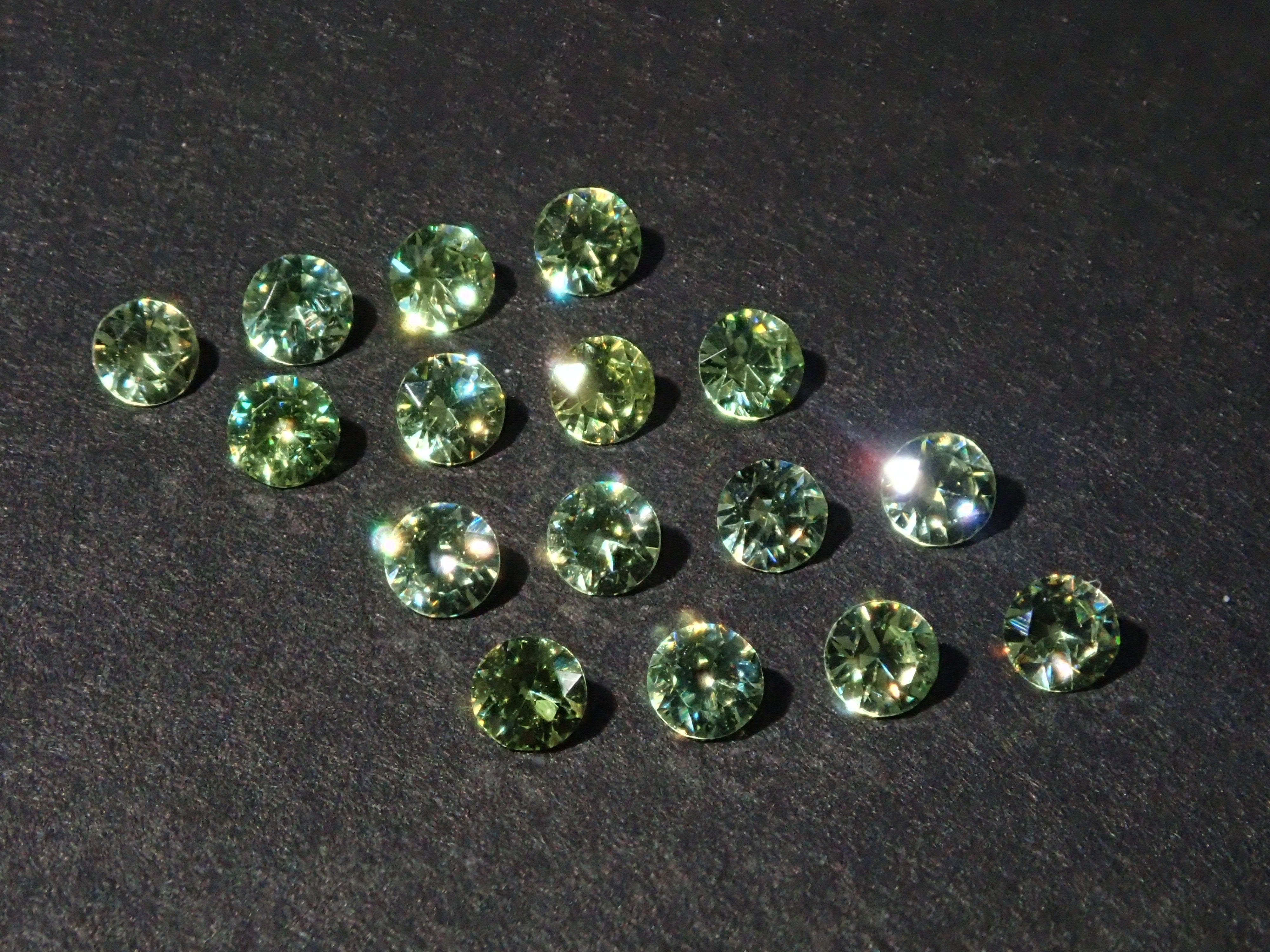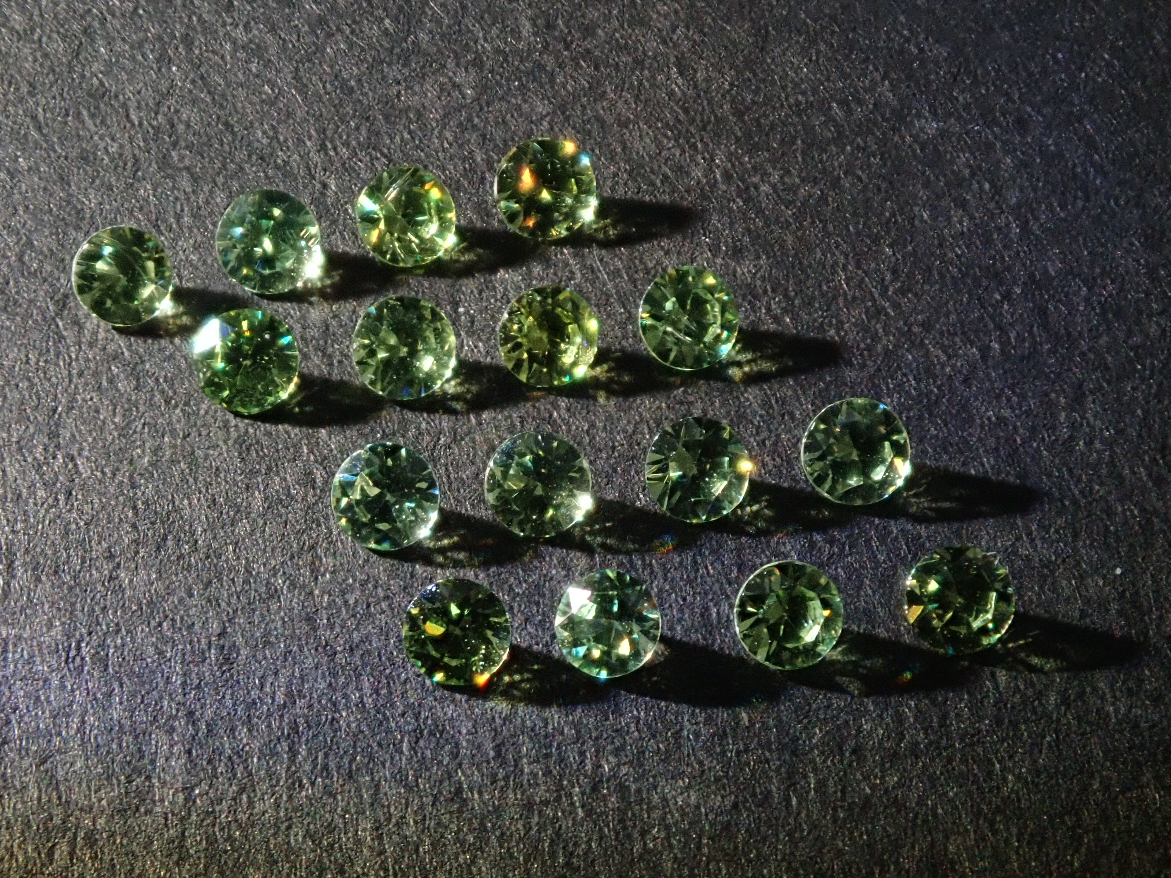 石榴石具有強烈的光色散和強烈的閃光。其中,這顆綠色的「濃綠榴石」是一種特別美麗且稀有的石榴石。這是俄羅斯濃綠榴石,具有清爽的綠色。所有刮痕:我們精心挑選S級以上且透明度高的刮痕。有些物品可能含有木賊內含物。圓切2mm。