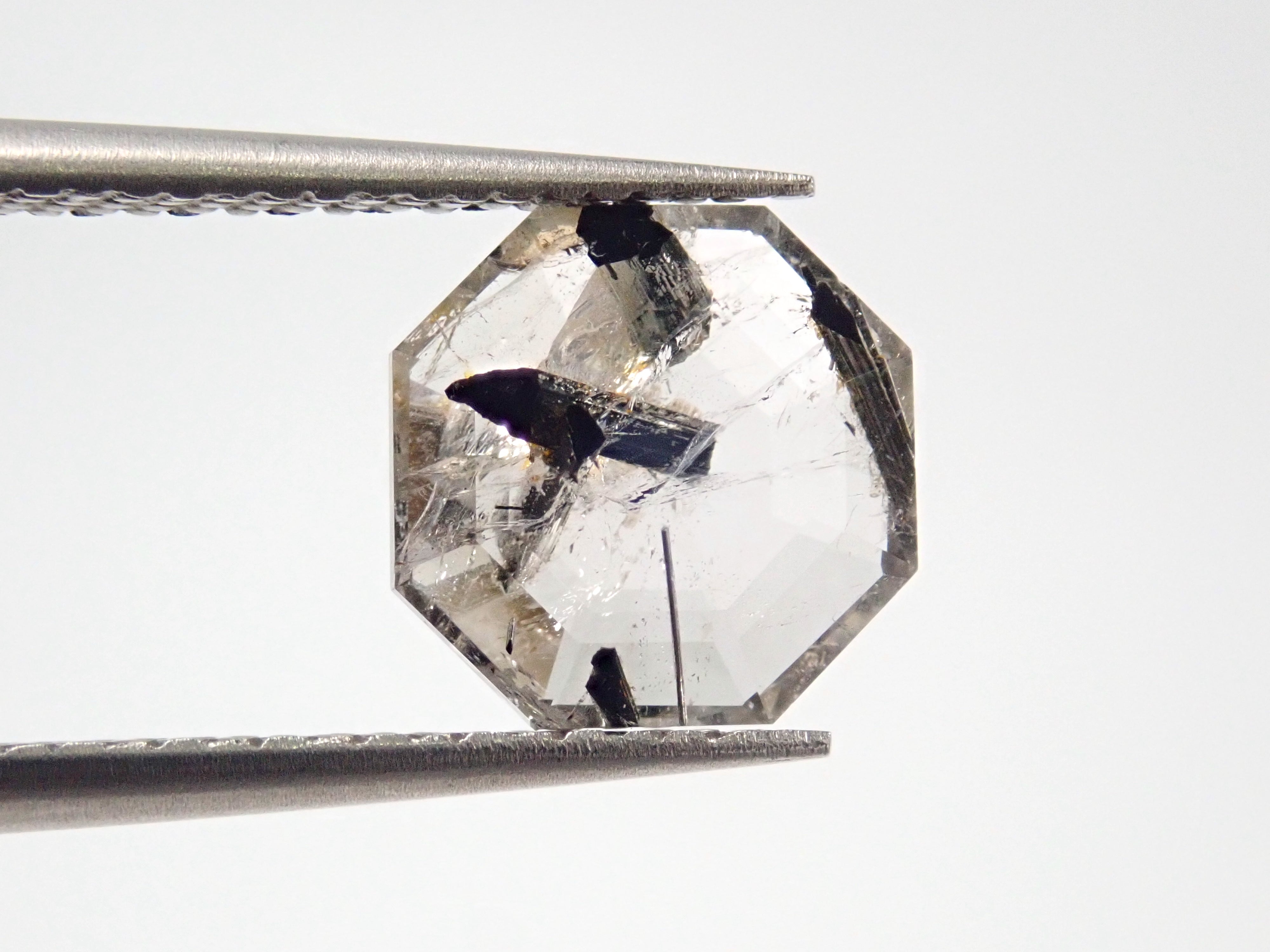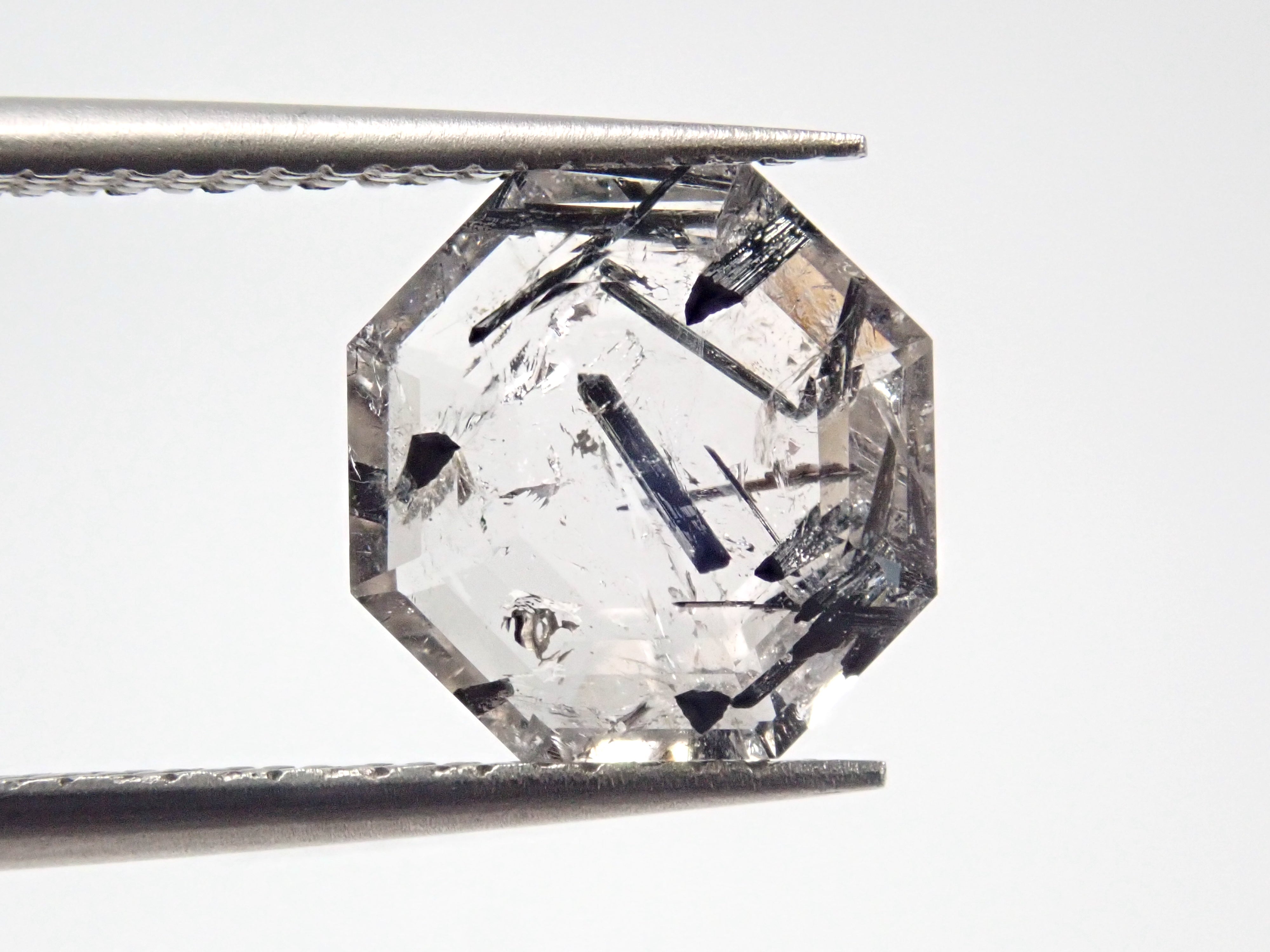 石英在日文中稱為水晶。這是嵌入黑色電氣石的石英。它是一種在某種程度上喚起了“日本”或“禪宗”形象的石頭。它也被稱為“石英中的電氣石”。這是來自斯里蘭卡的八角形切割。我們將交付照片中的 1 顆石頭。