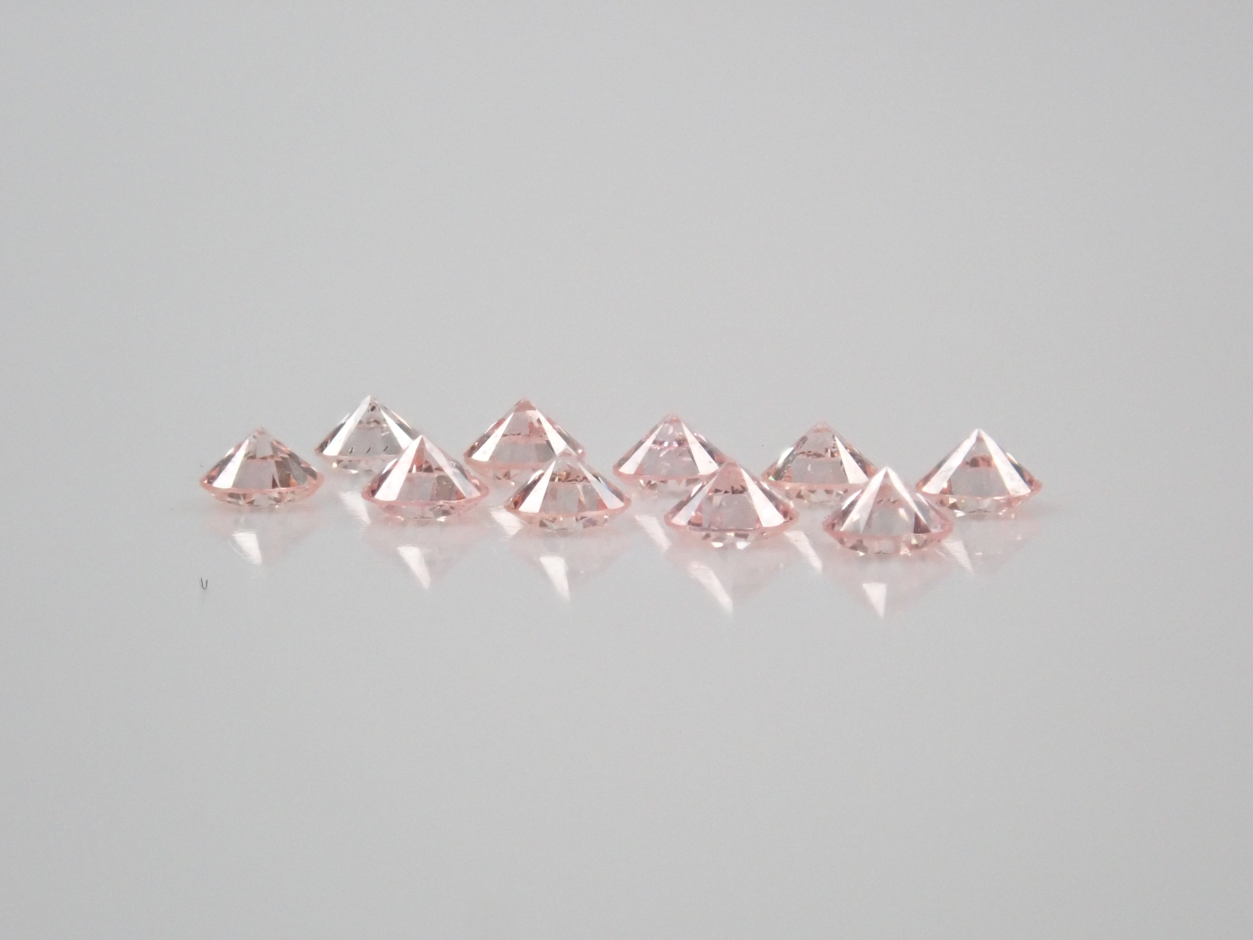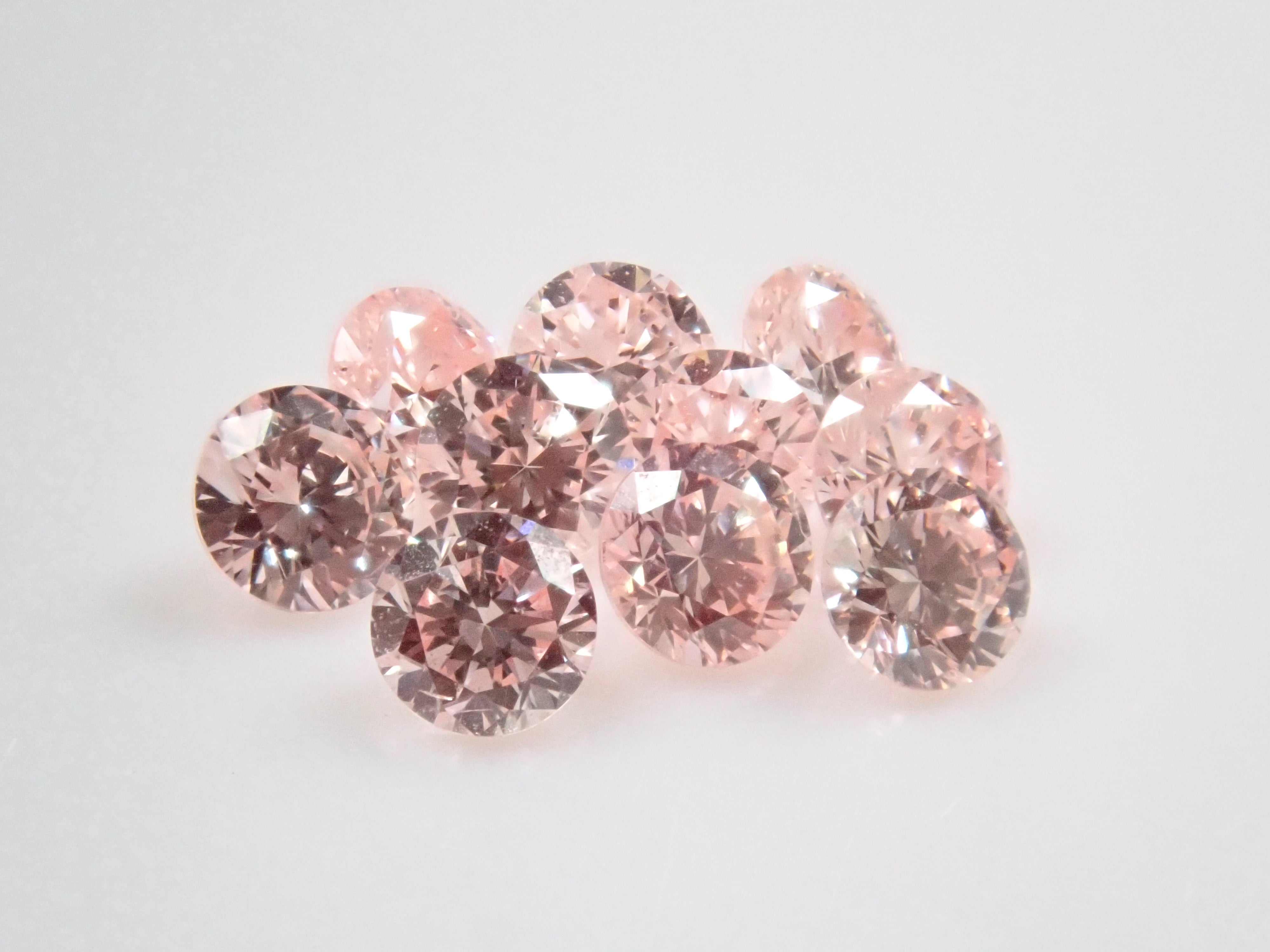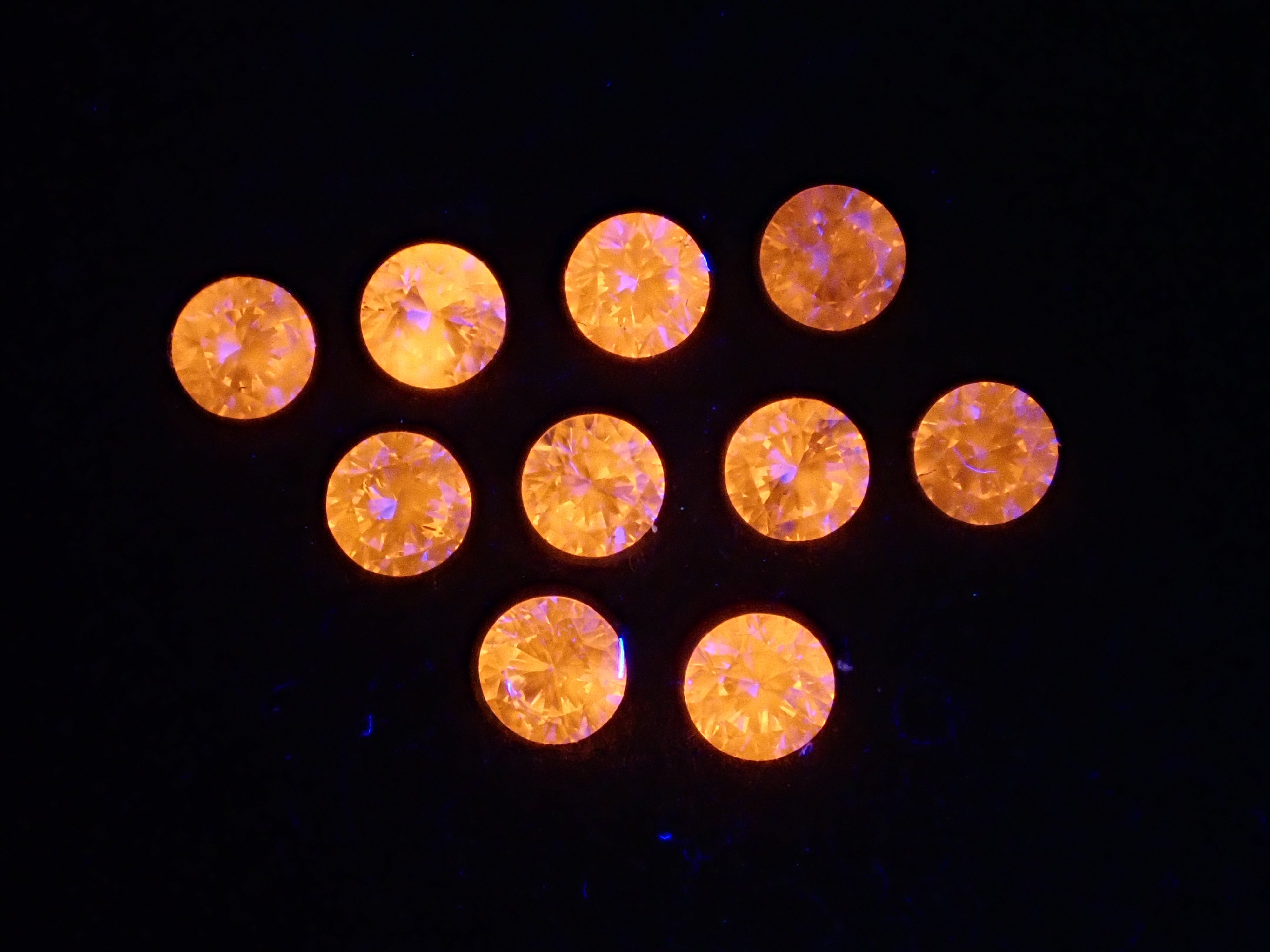 這是一顆實驗室培育的粉紅色鑽石,顏色是淡彩粉紅色。圓切2.0mm。當暴露在黑光下時,它會發出橙色螢光。