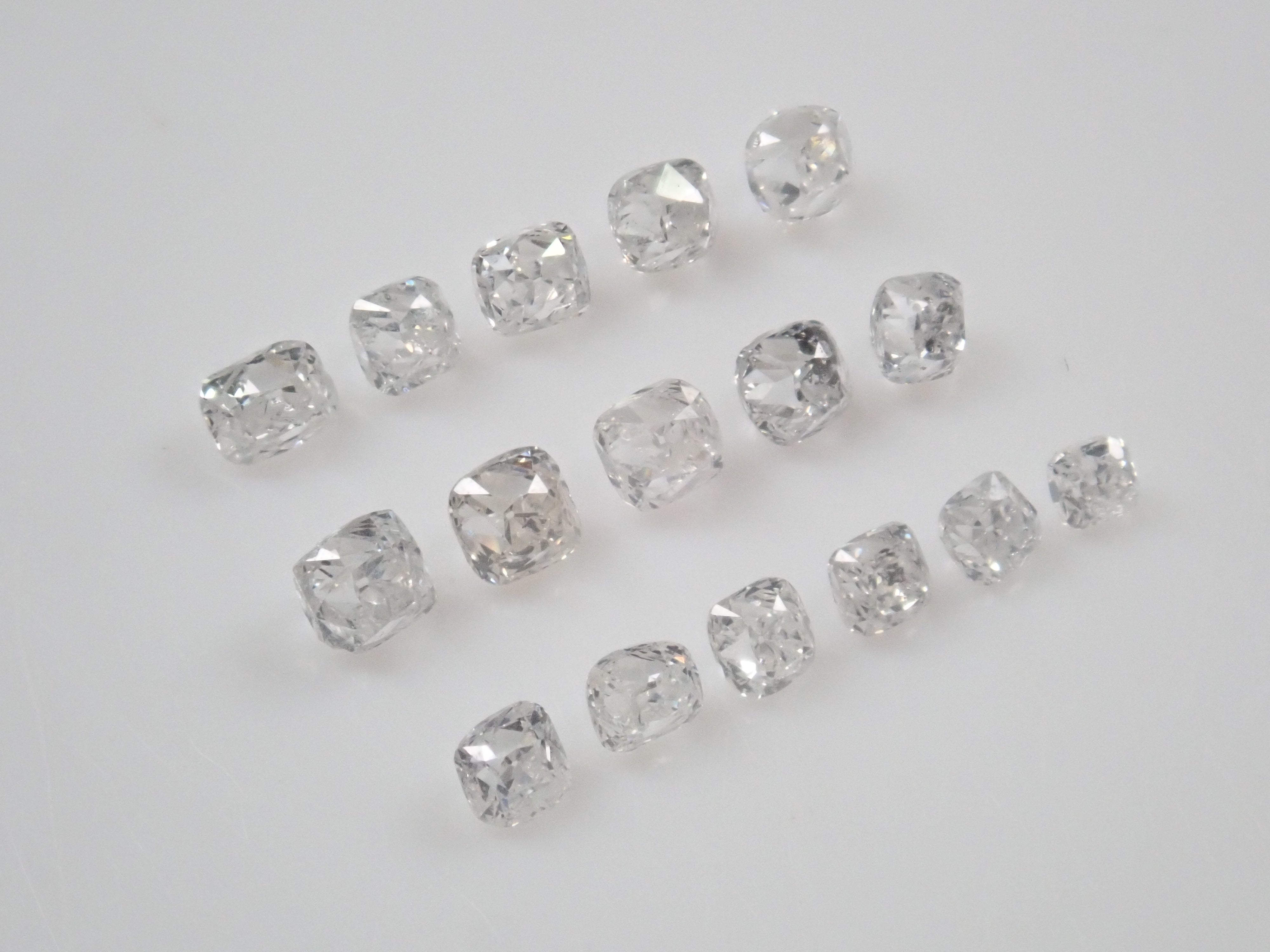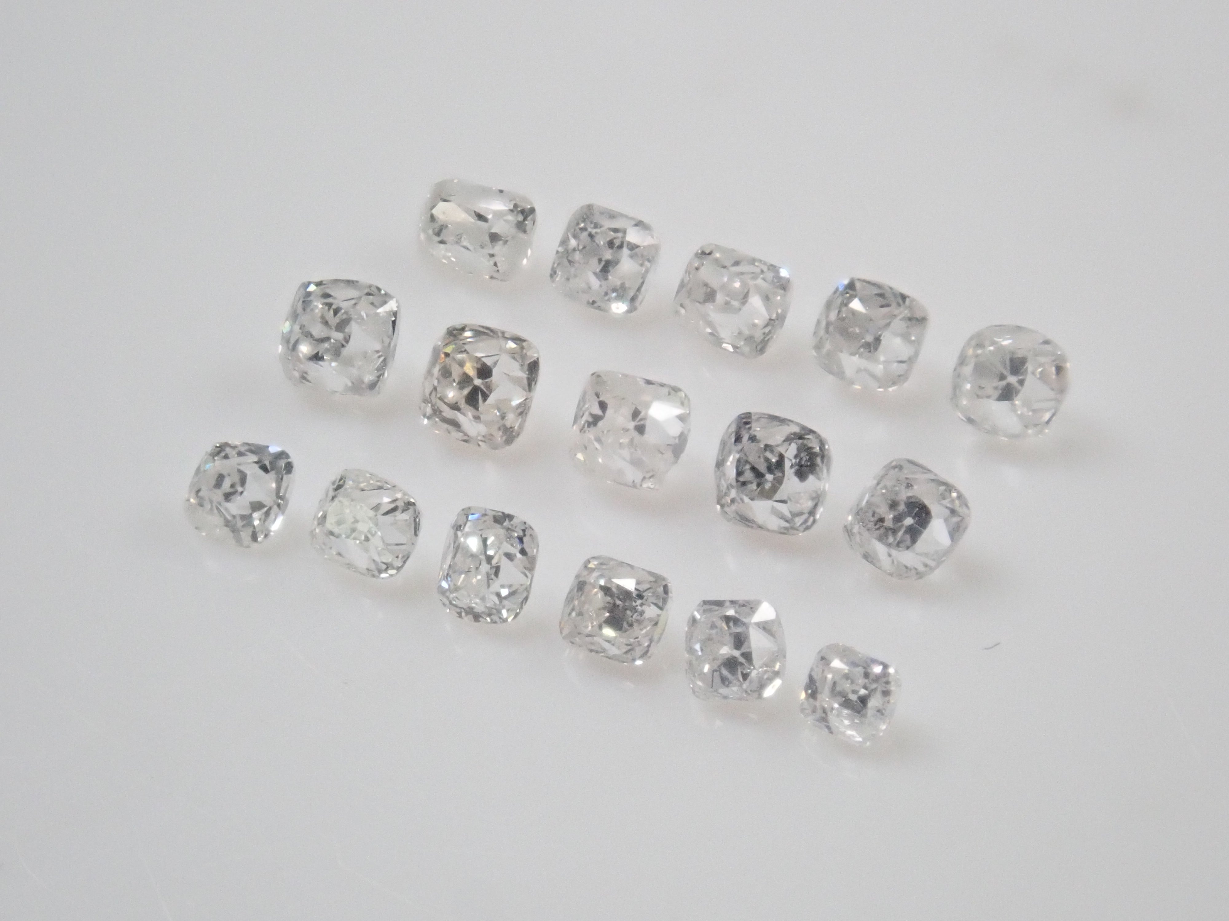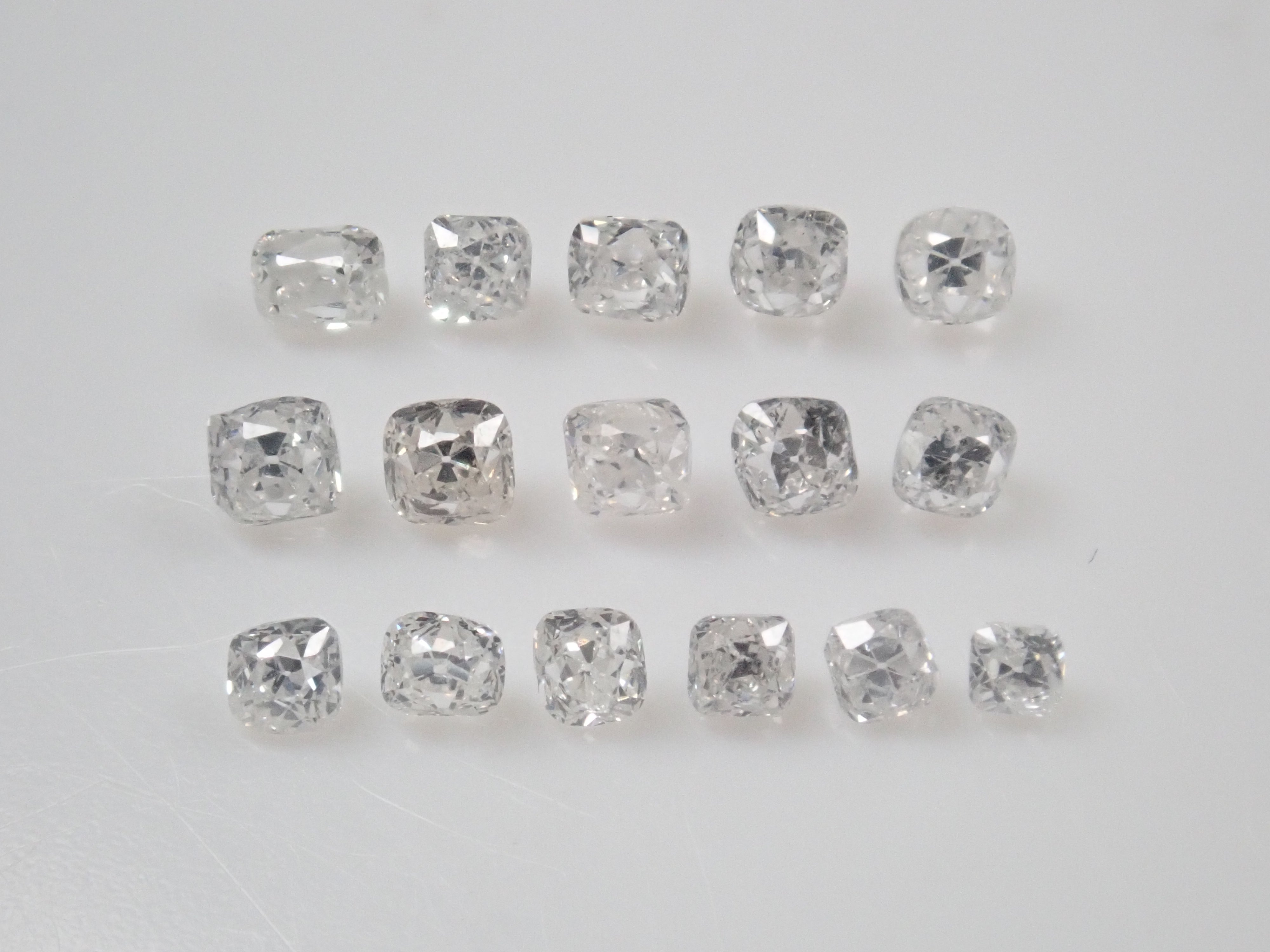 老礦式切割鑽石像徵過去時代的魅力和精緻。其獨特的切割再現了19世紀和20世紀初流行的傳統鑽石風格。圓角方形形狀和大切割鏡片美麗地反射光線,散發出豐富的光芒。老礦式切割鑽石因其獨特的外觀和歷史價值而對珠寶愛好者和收藏家特別有吸引力。這次我們有一顆無色老礦式切割鑽石,適合老礦式切割初學者或尋找米勒尺寸鑽石的人士。