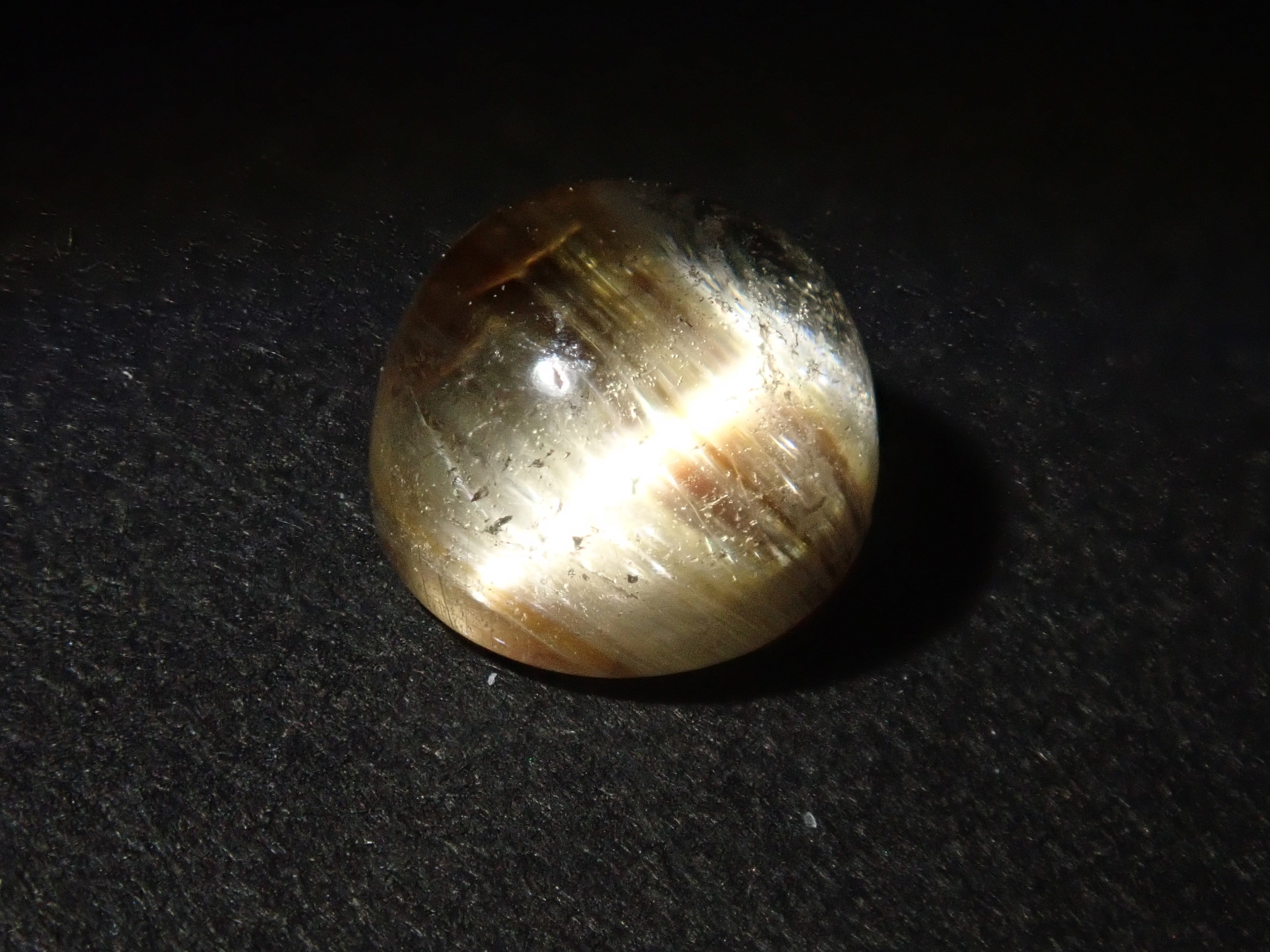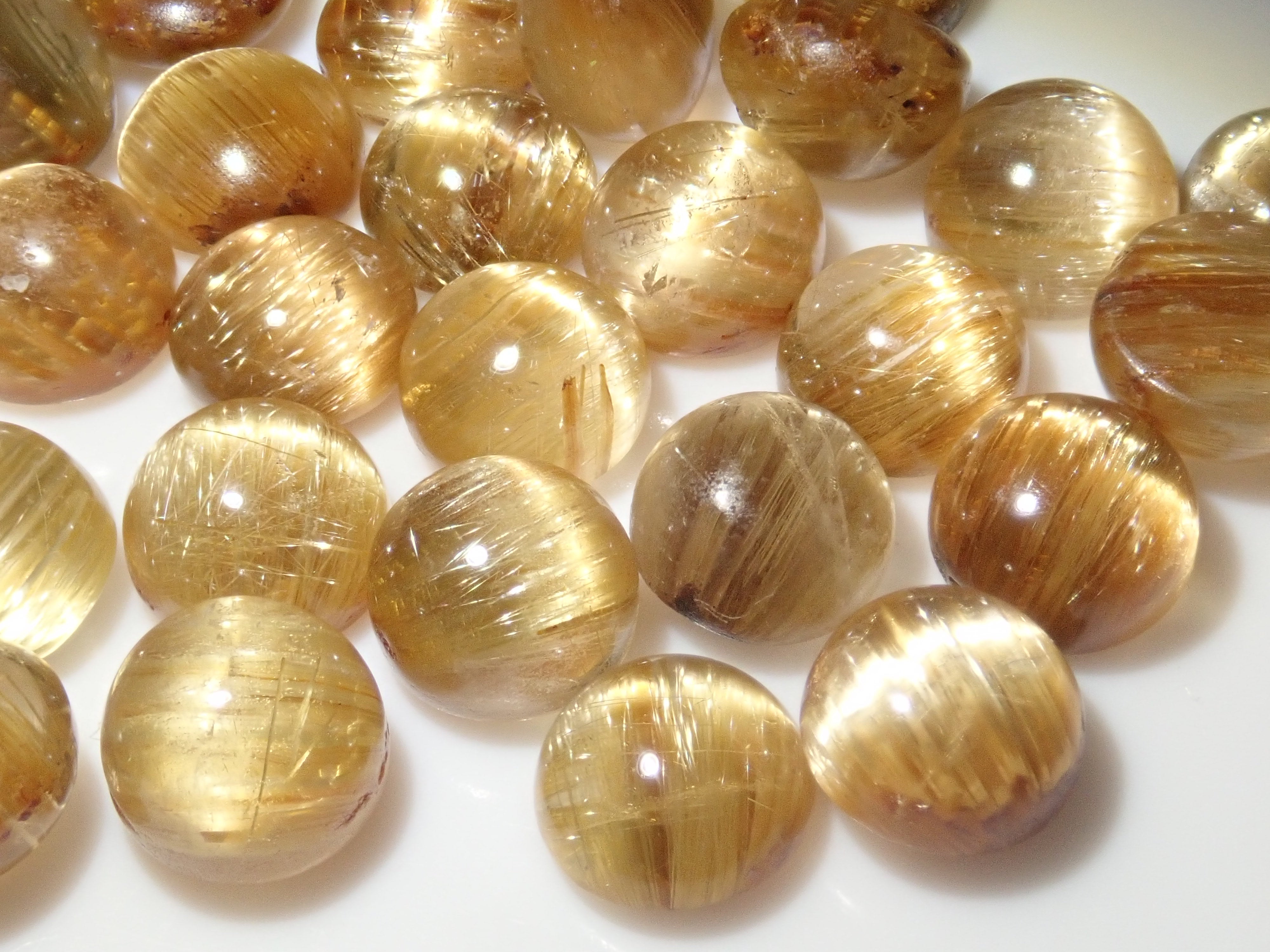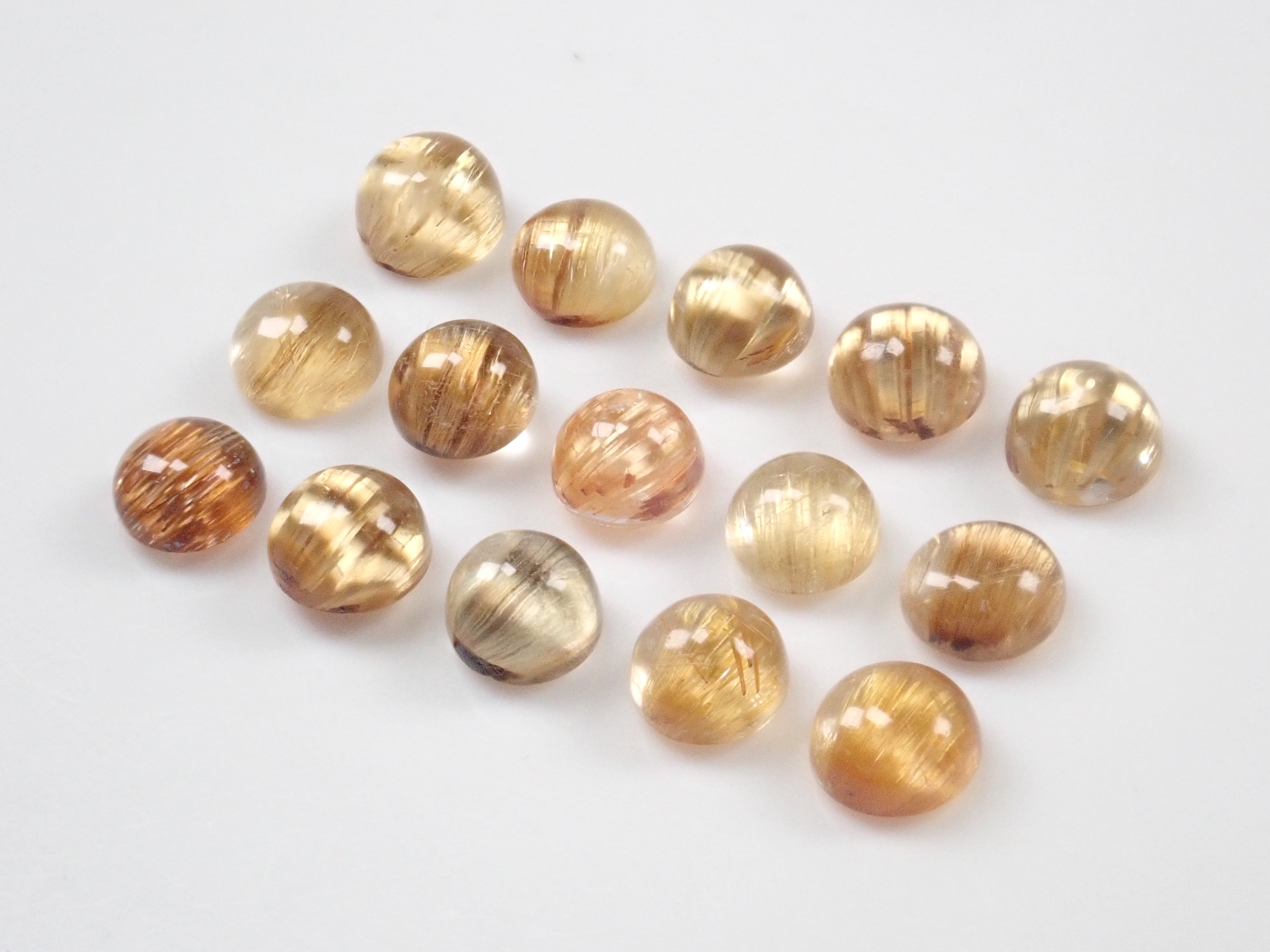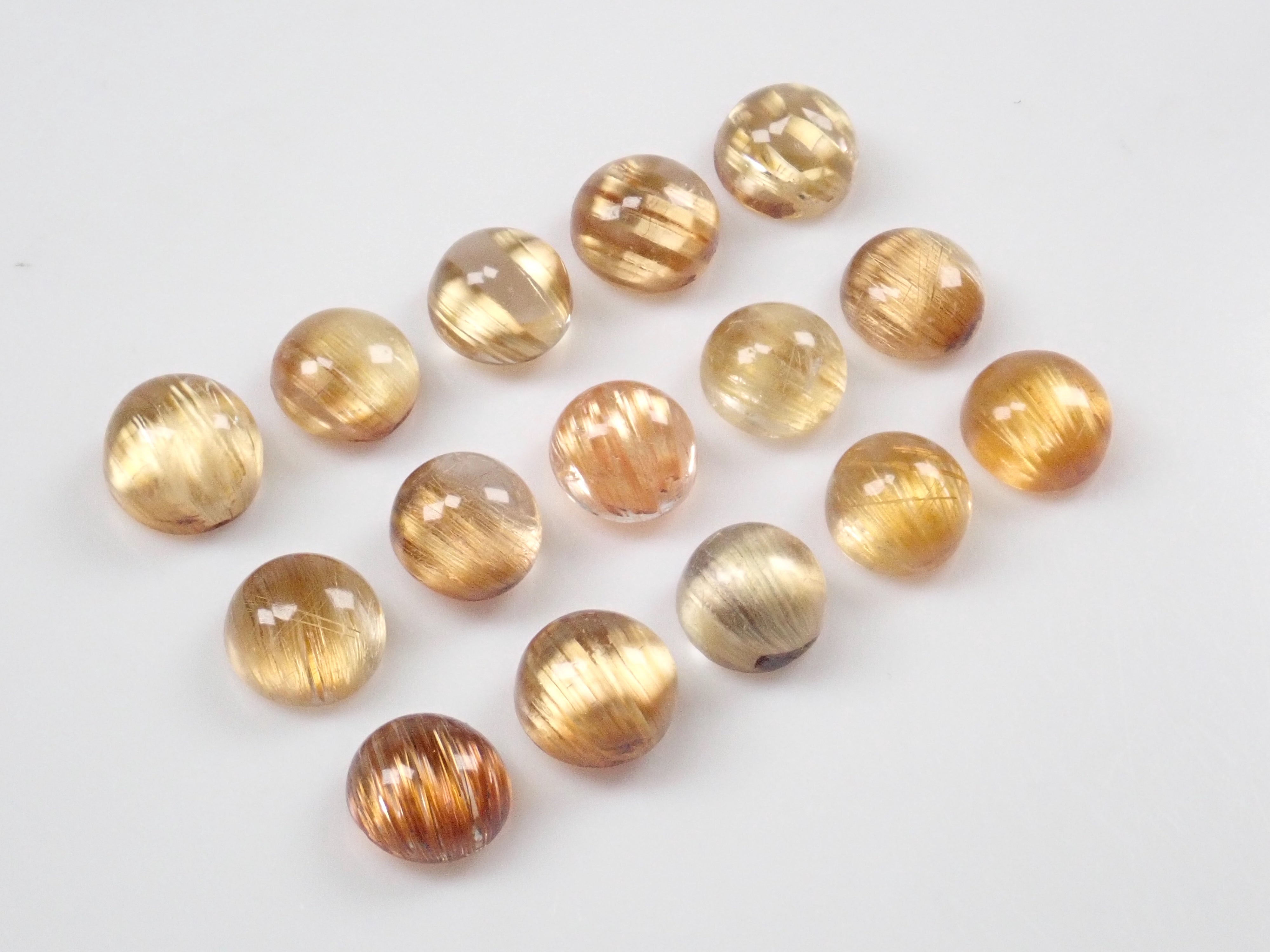 金紅石石英具有美麗的金色光澤。將一根由金紅石製成的「金針」插入晶體中。日本名字是“Kinkoishi”。它也被稱為“發晶石英”、“發晶石英”和“發晶石英”。攝影時使用筆形燈捕捉內含物的美麗光芒。這是巴西金紅石石英,尺寸為 6.0-6.5 毫米。我們精心挑選了美麗的金紅石,透明度高,許多都帶有清晰可見的貓眼。