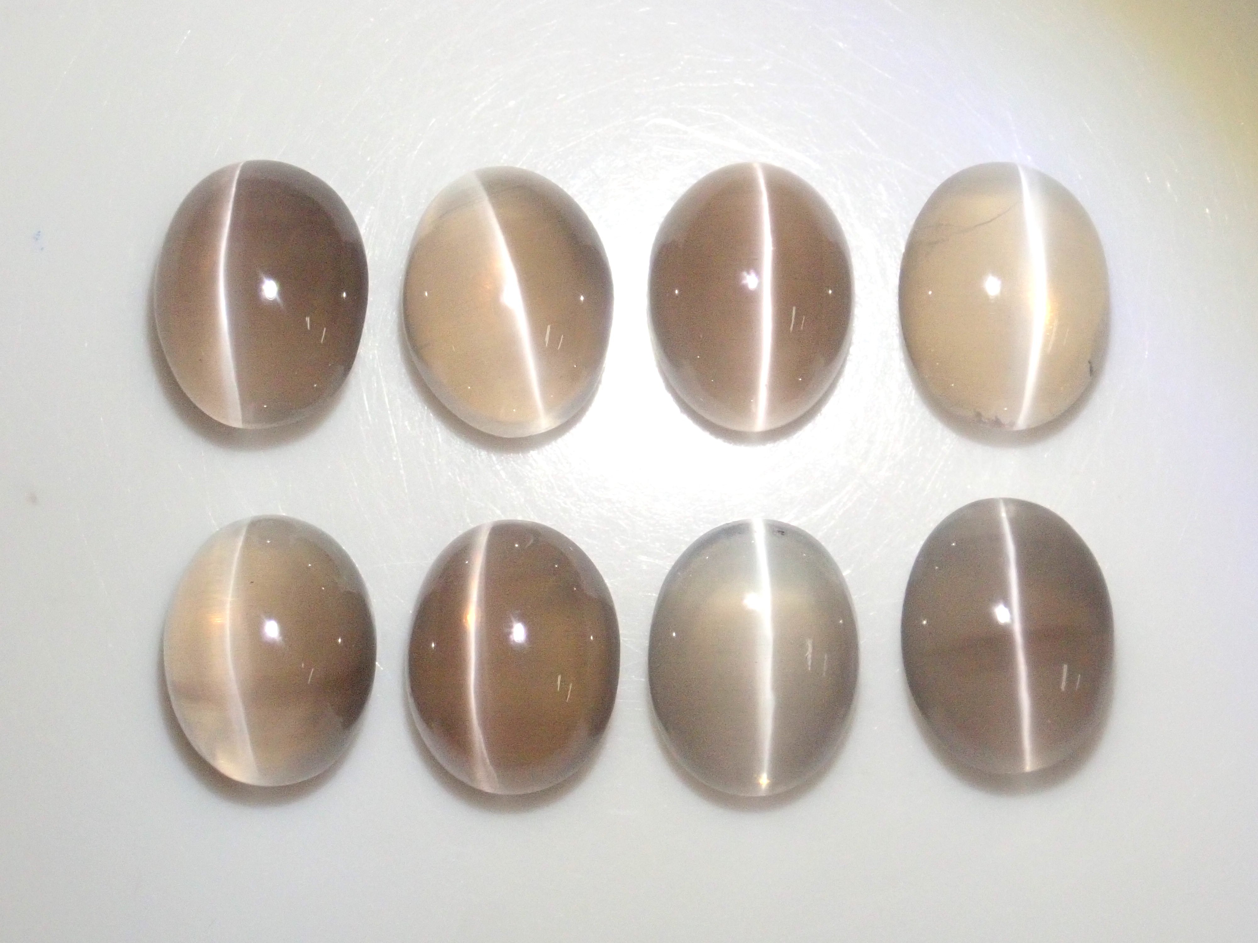 稀有石頭,矽線石。它提供了從透明到半透明的多種表現方式,讓您可以欣賞色彩。透明度高的大顆粒尤其罕見。莫氏硬度為6.5-7.5。這是一顆從透明寶石品質中精心挑選的橢圓形切割 9 x 7 毫米印度矽線石貓眼。您將收到照片中 8 顆寶石中的一顆。