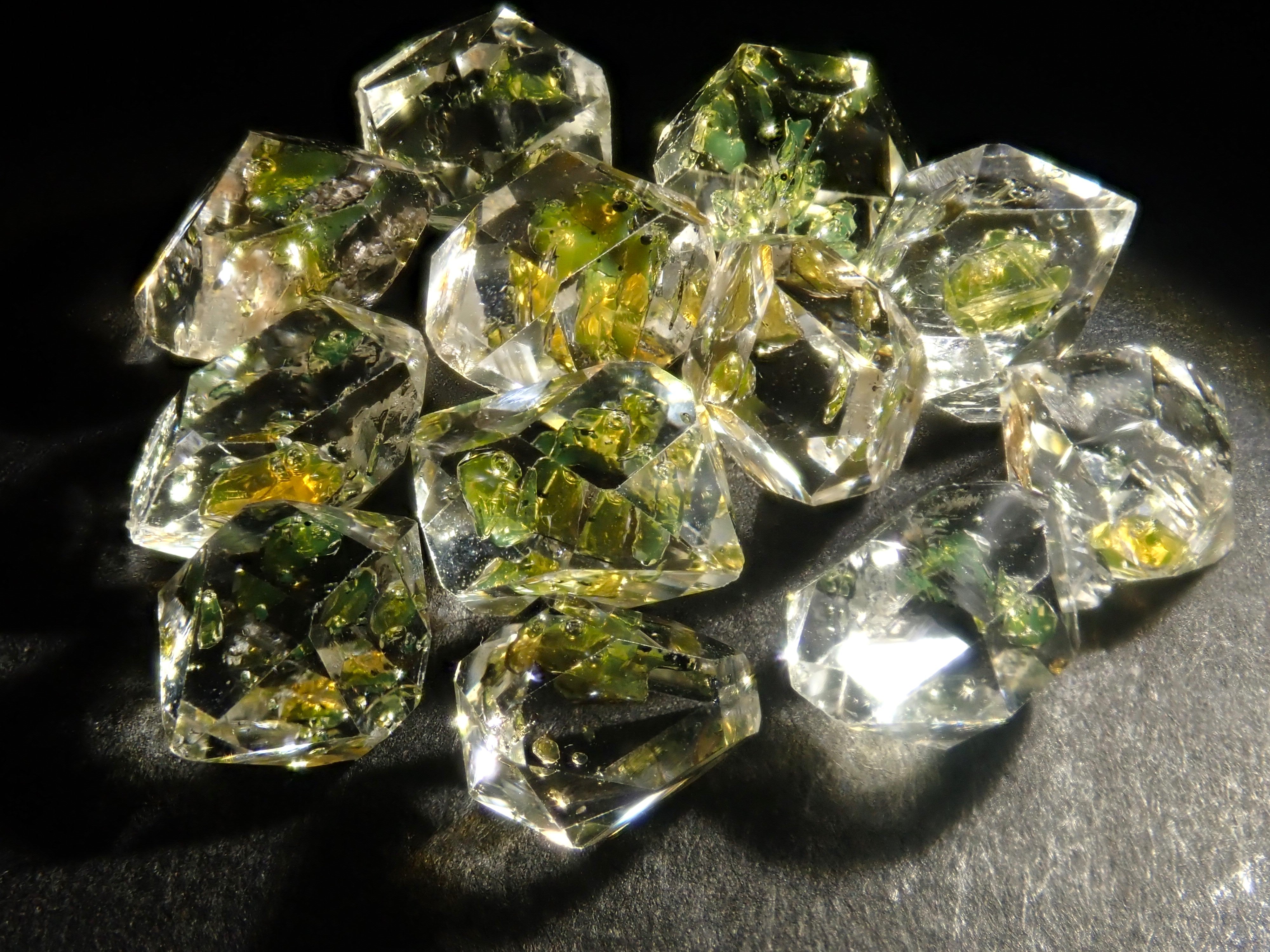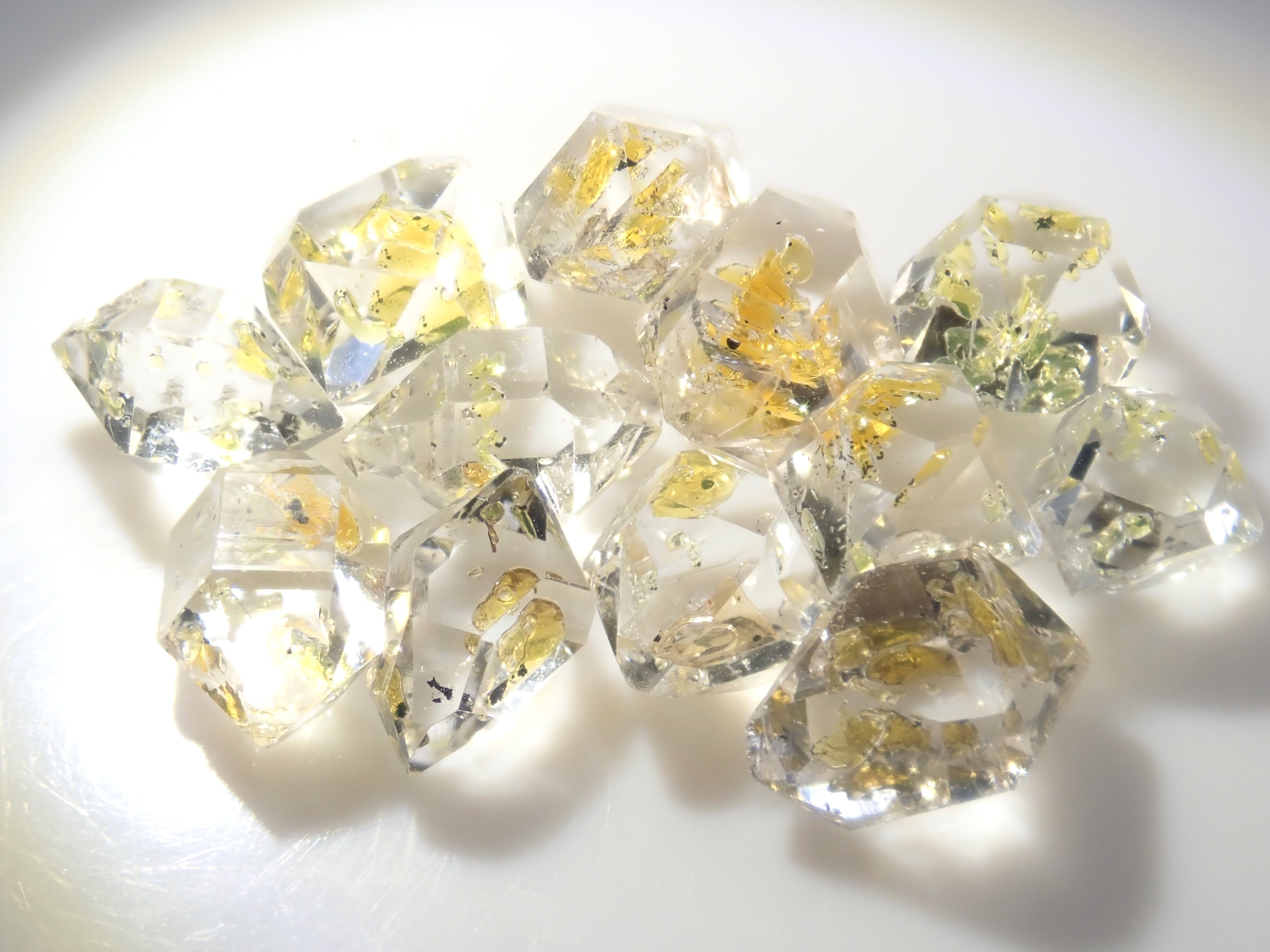 這是來自巴基斯坦的石英油,石頭中含有石油。當暴露在黑光下時,內含物會發出螢光並發出藍光,賦予它們非常神奇的外觀。這是一種內部有移動氣泡的類型,我們精心挑選了最優質的含油石英。鑑定員用放大鏡檢查每件物品,以確認氣泡是否在移動。當您收到它時,請用放大鏡尋找。您將收到照片中 12 顆寶石中的一顆。