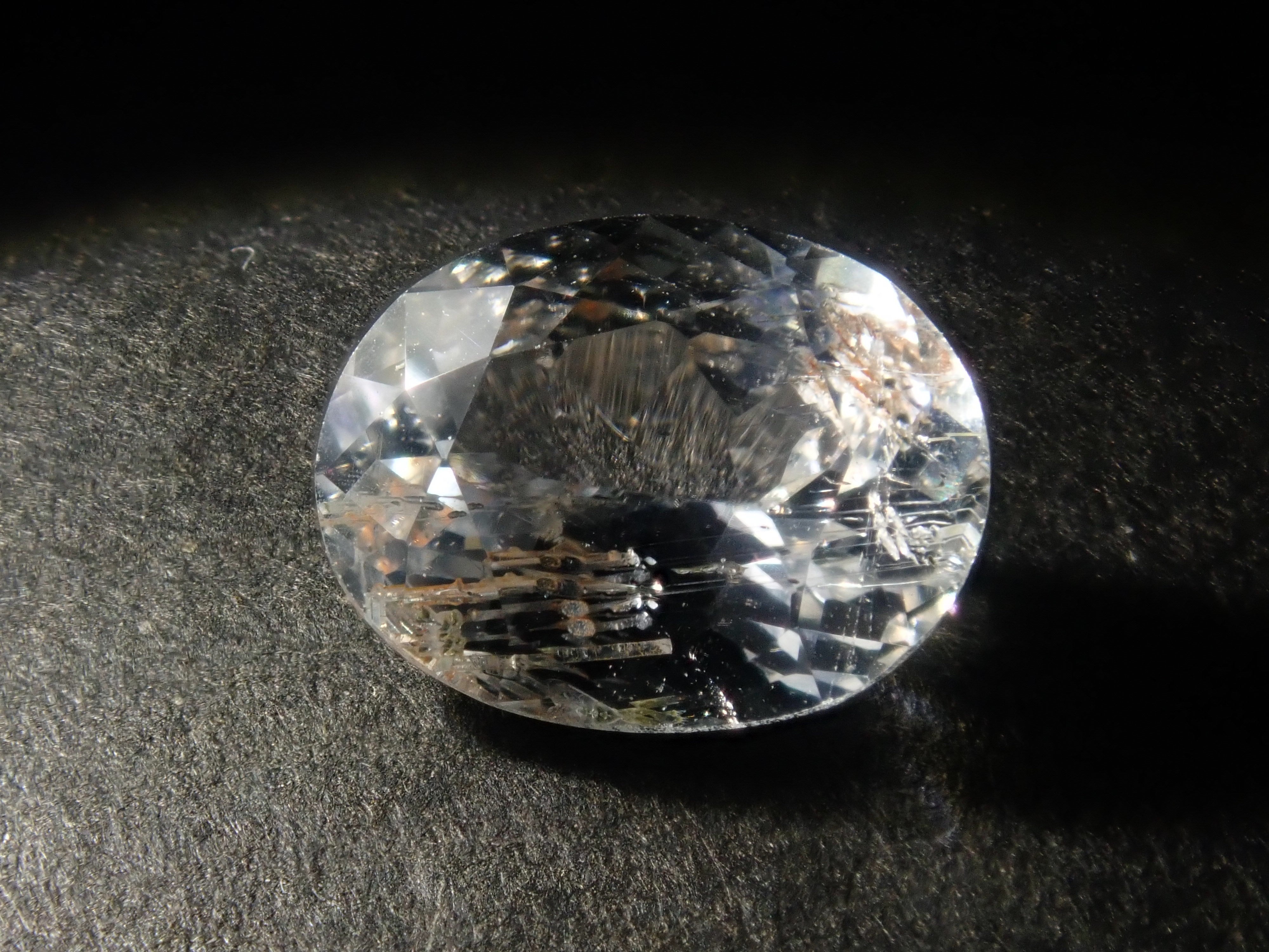 黃玉在生長過程中,如果周圍環境發生變化,其表面會逐漸融化。如果這種融化作用蔓延到晶體內部,就會在內部形成一個管狀空腔。這顆針狀黃玉就含有這種管狀內含物。它擁有獨特的美感,內部可見白色的針狀結構,而這些管狀結構反射的光線有時會產生彩虹般的光澤。