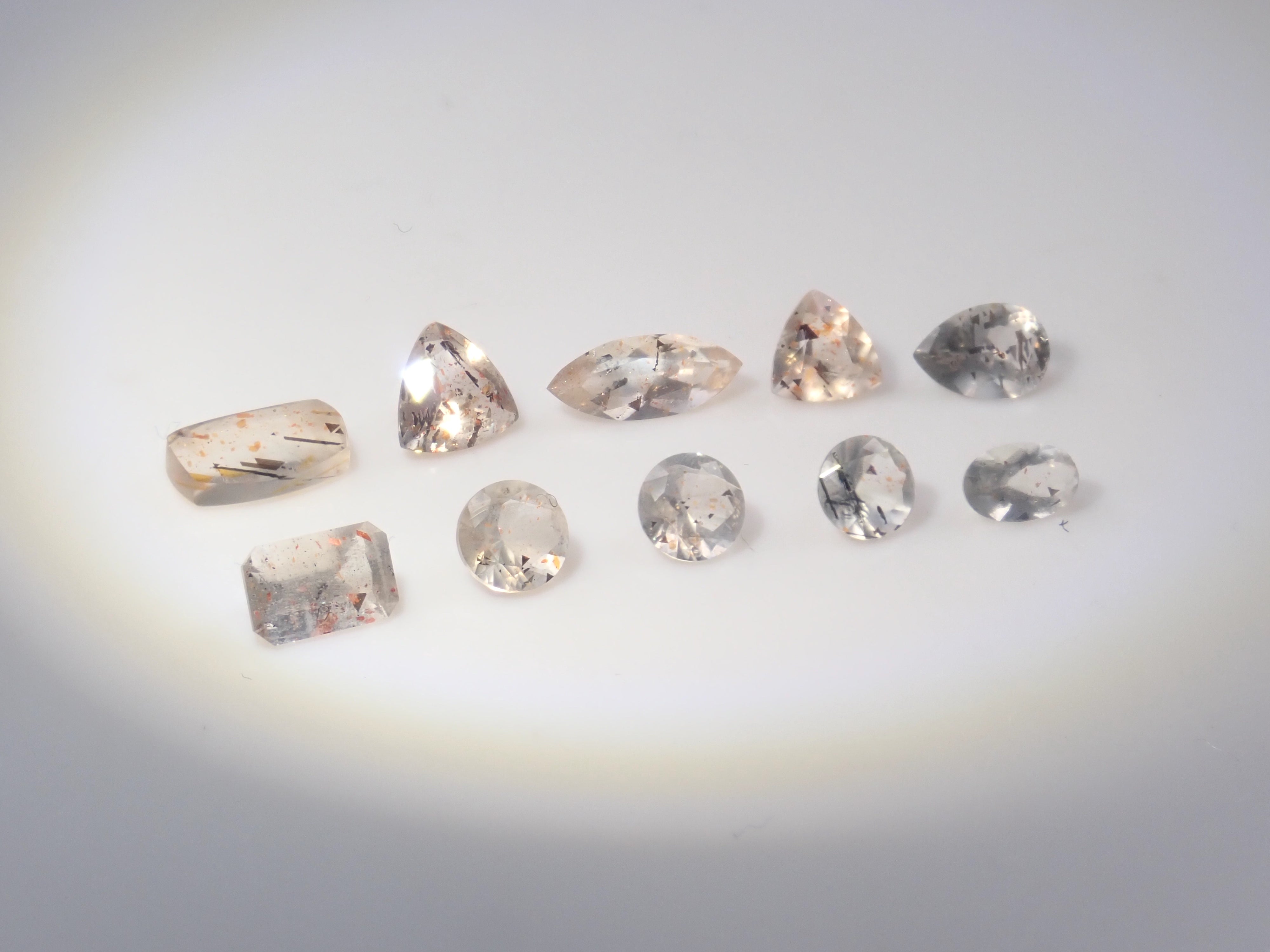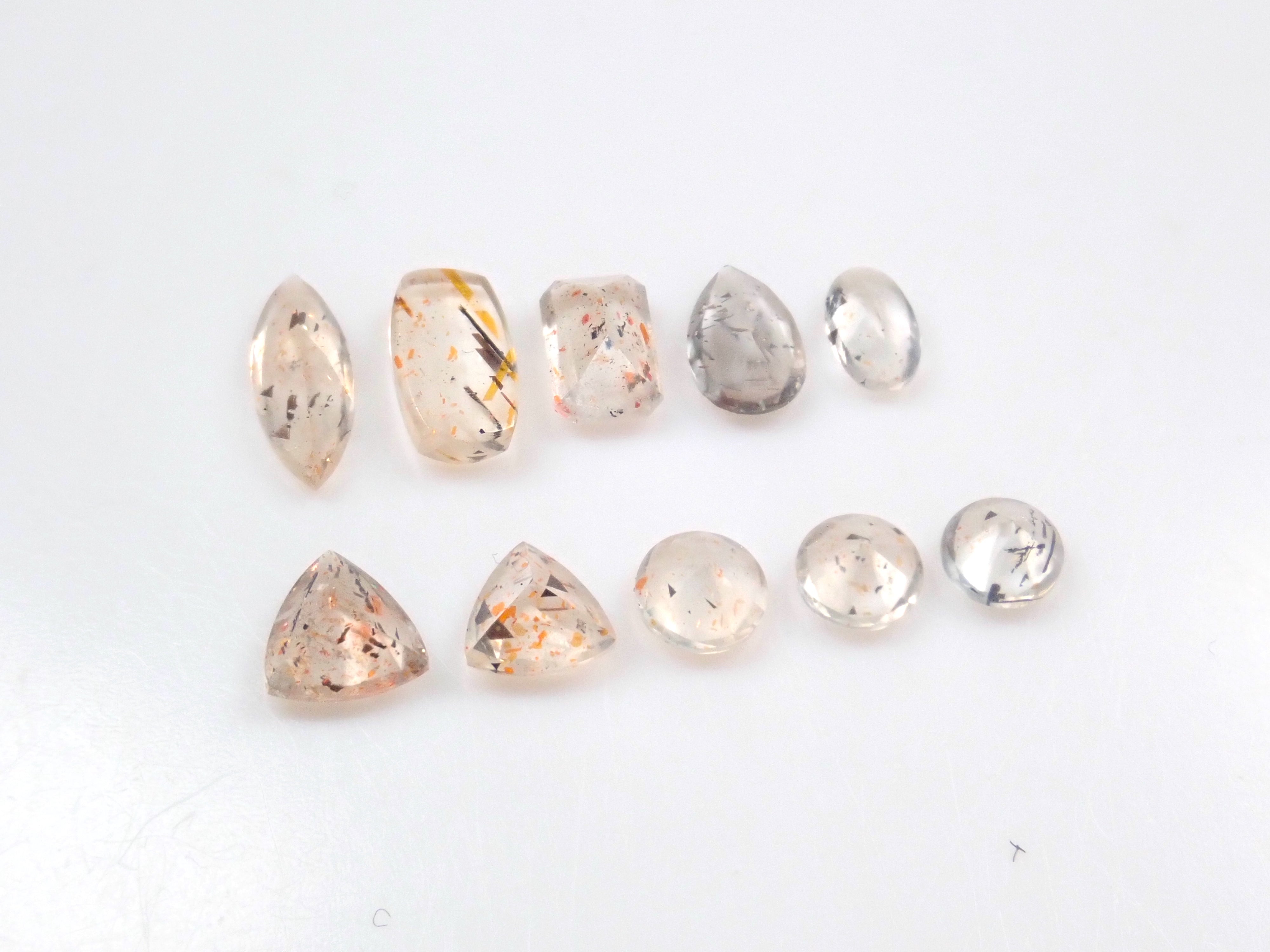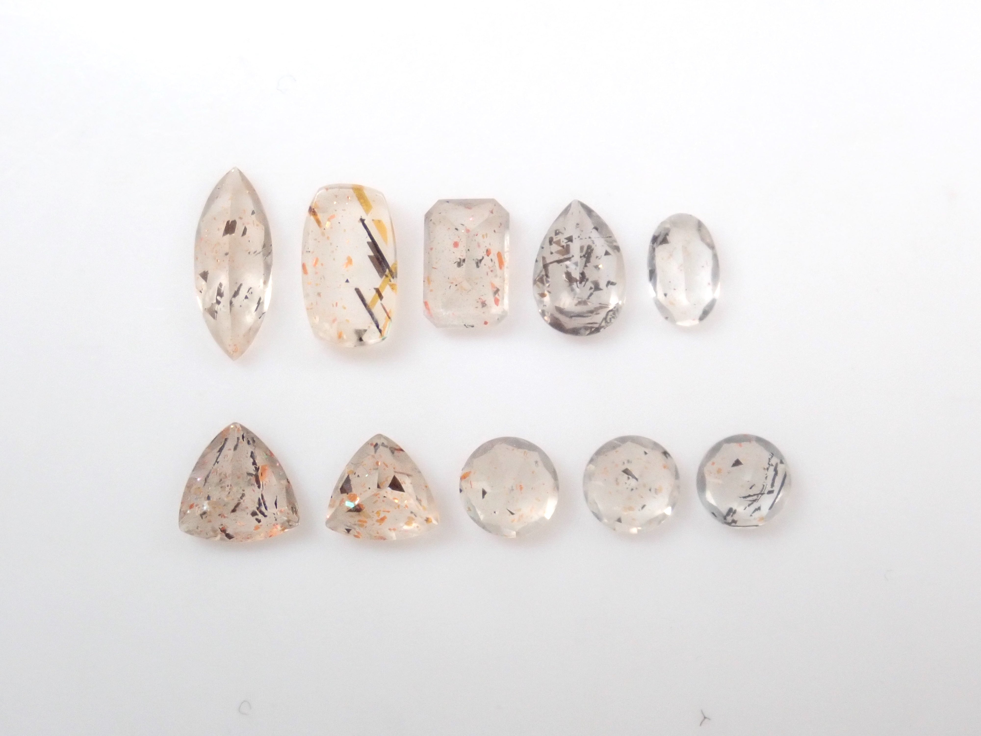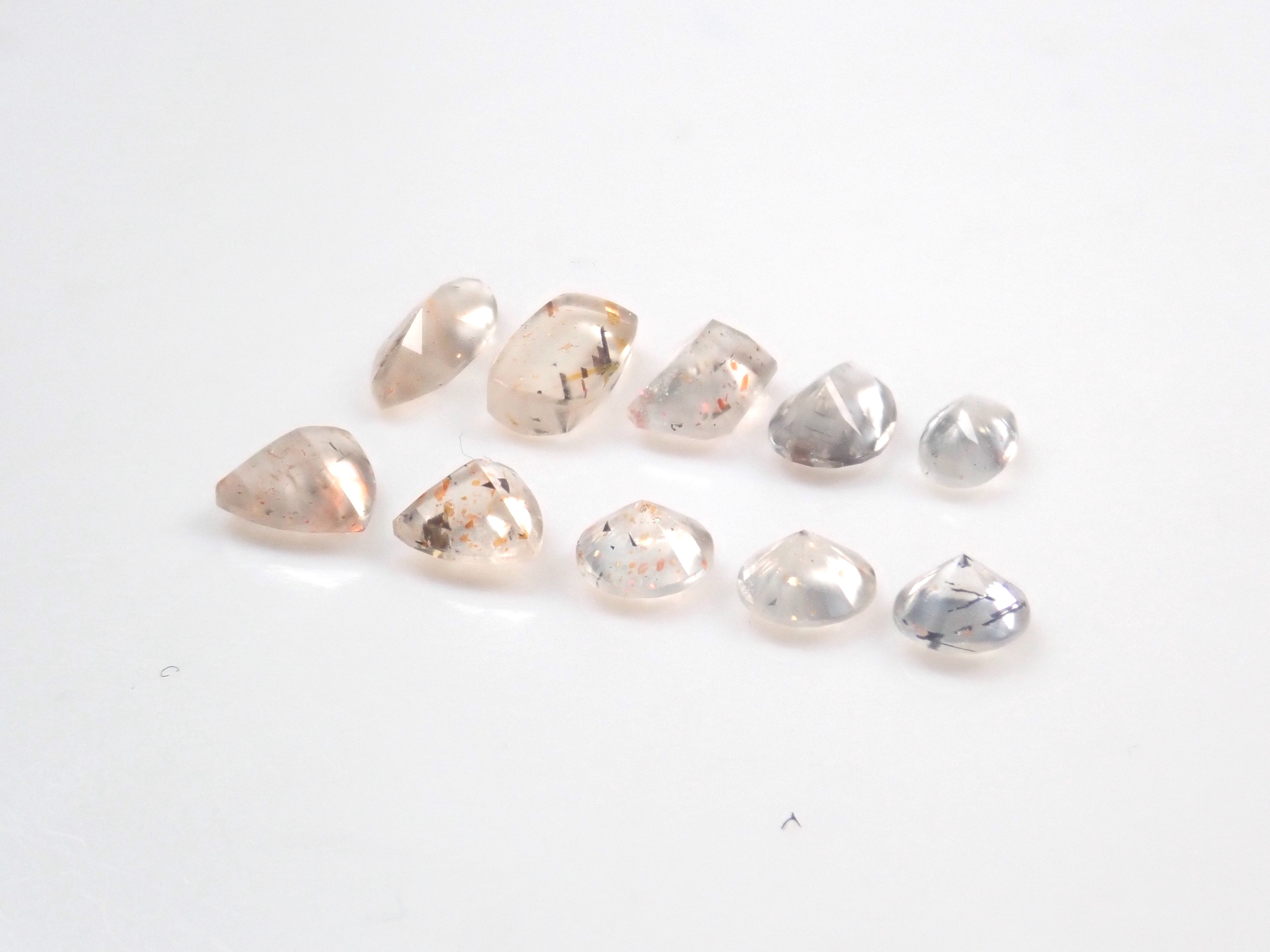 這是圖森新品,共鑲嵌10顆彩虹格子太陽石,如圖所示。平均尺寸為0.28克拉。