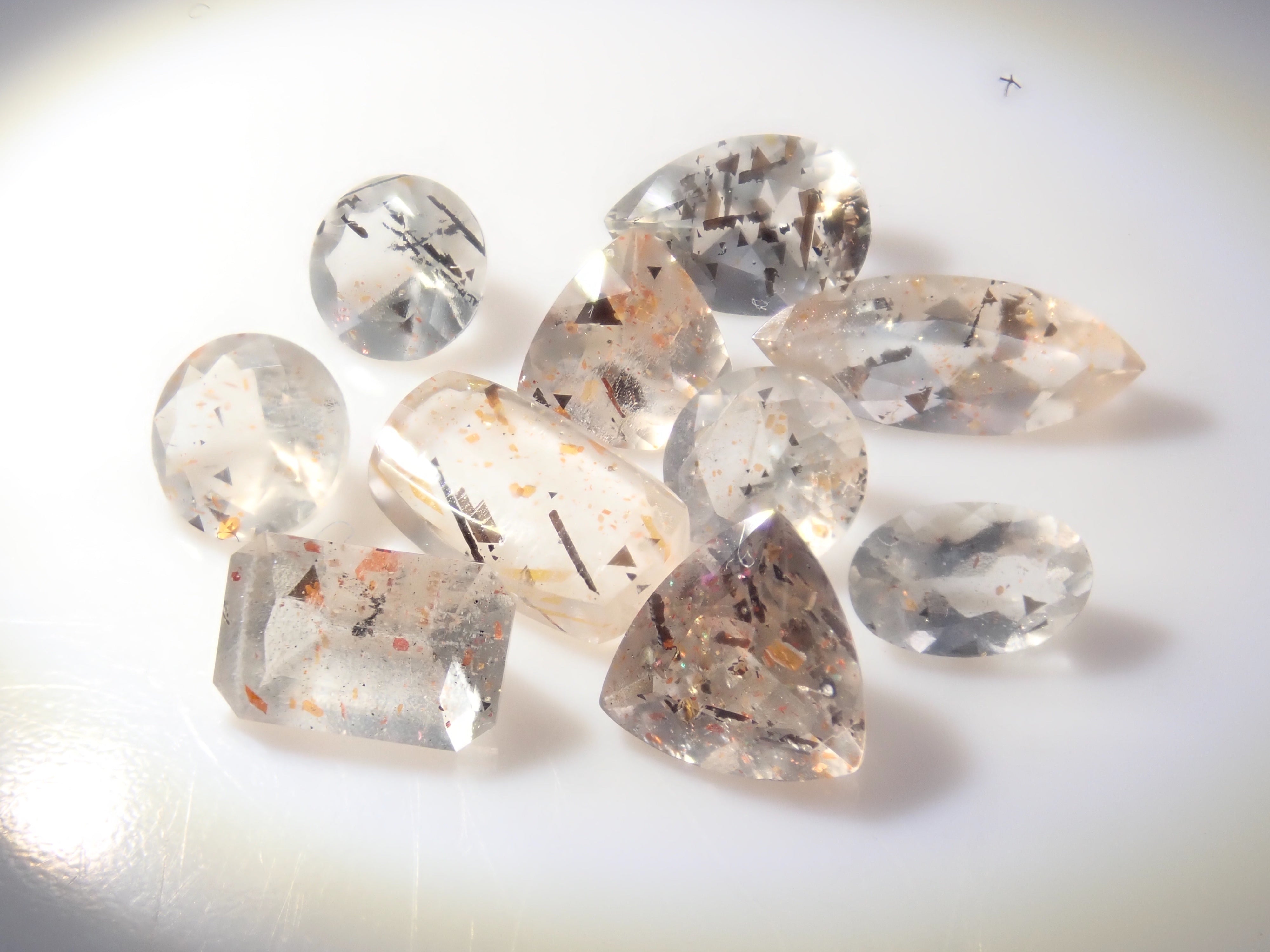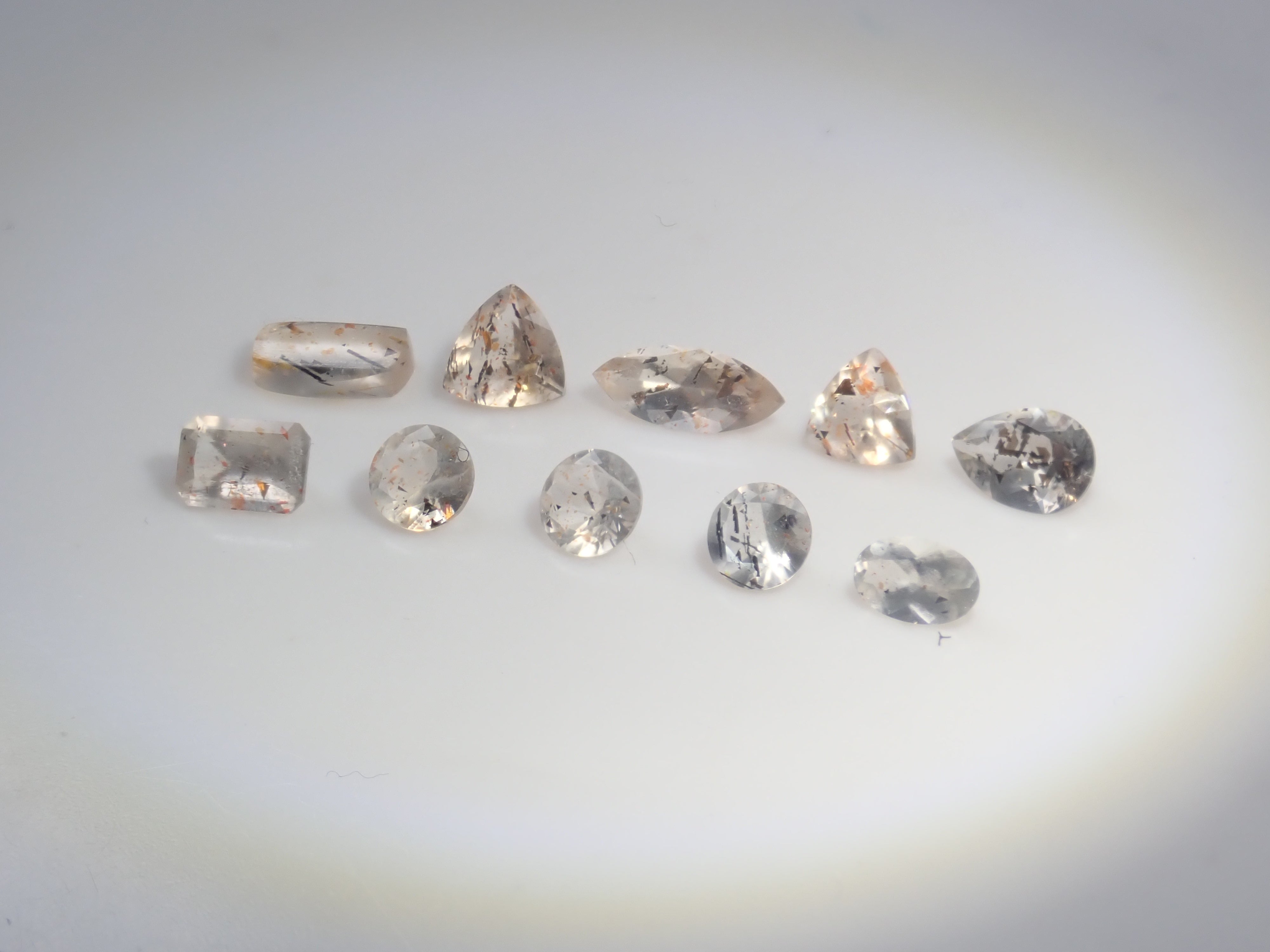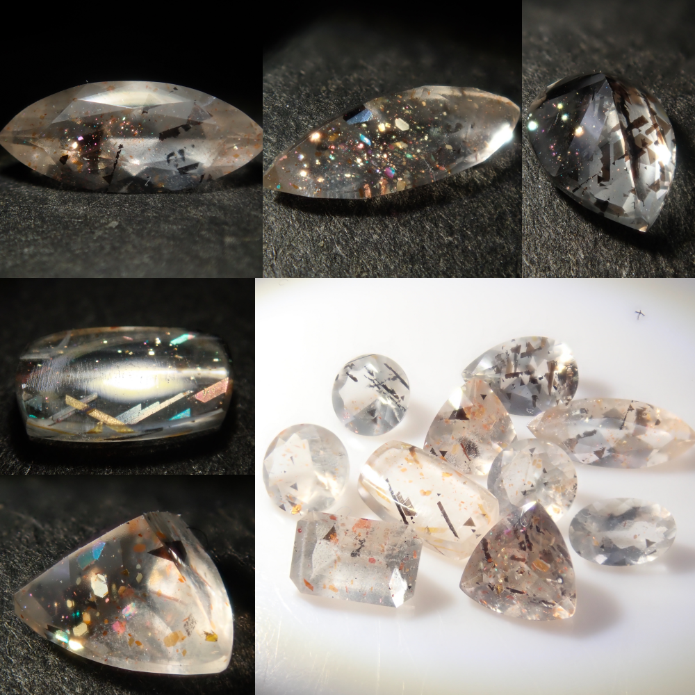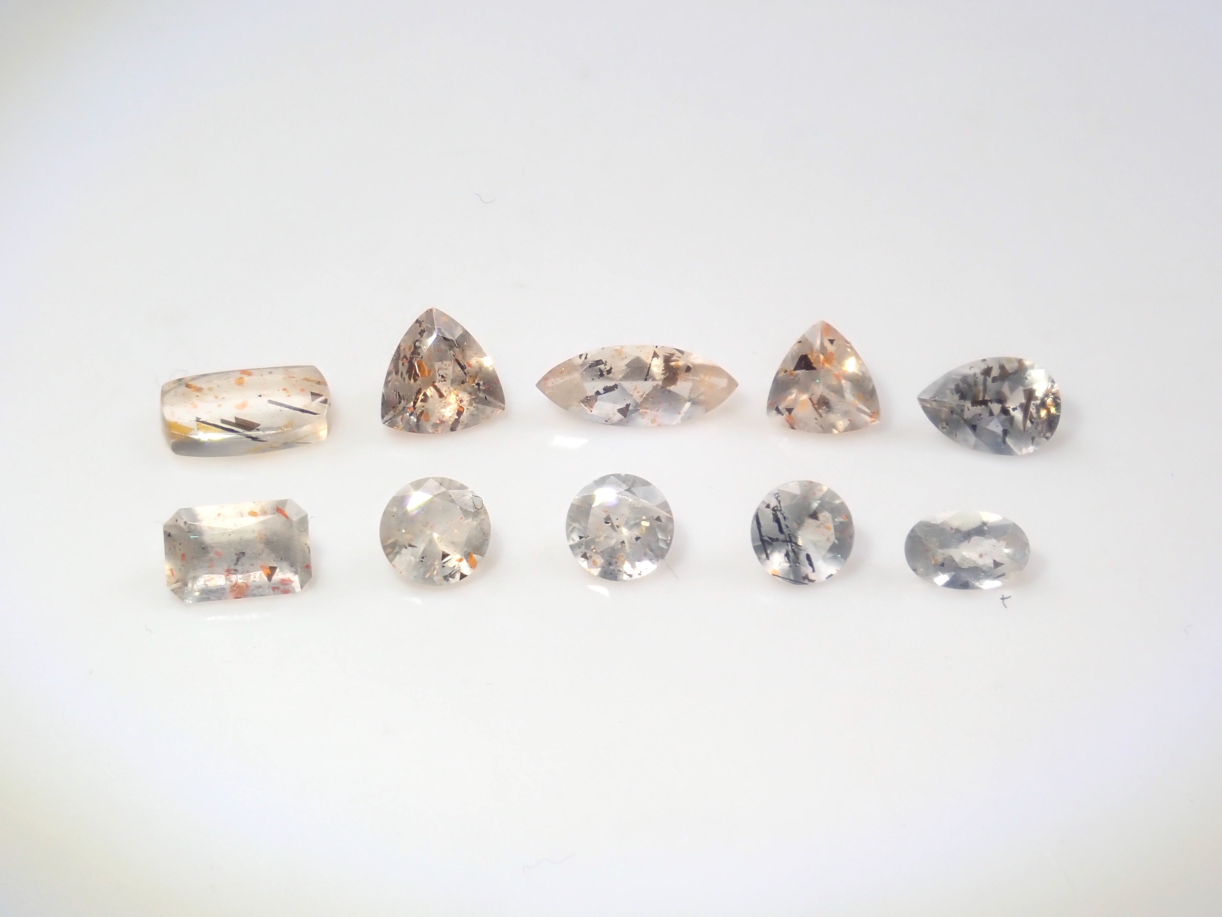 這是圖森新品,共鑲嵌10顆彩虹格子太陽石,如圖所示。平均尺寸為0.28克拉。