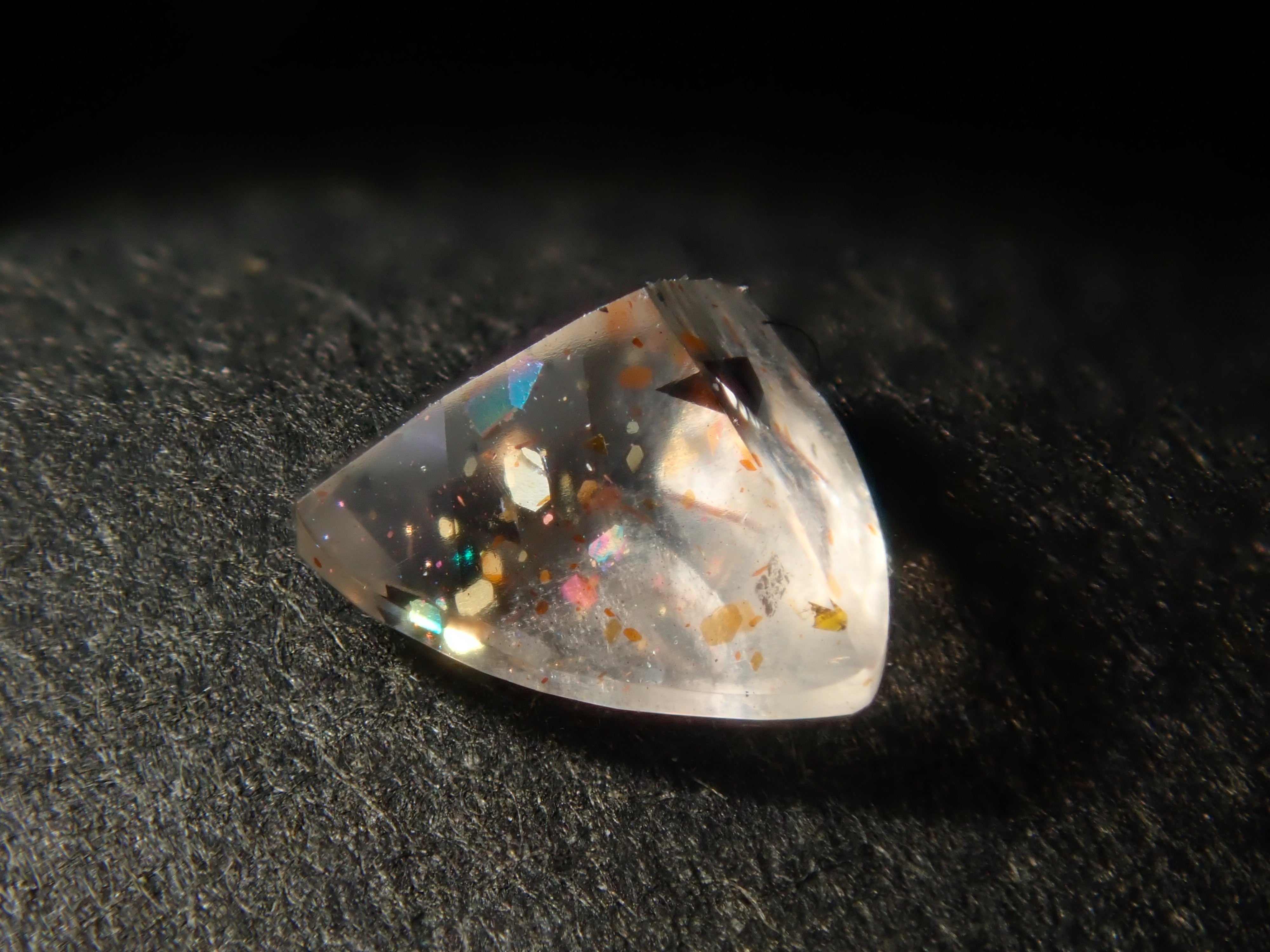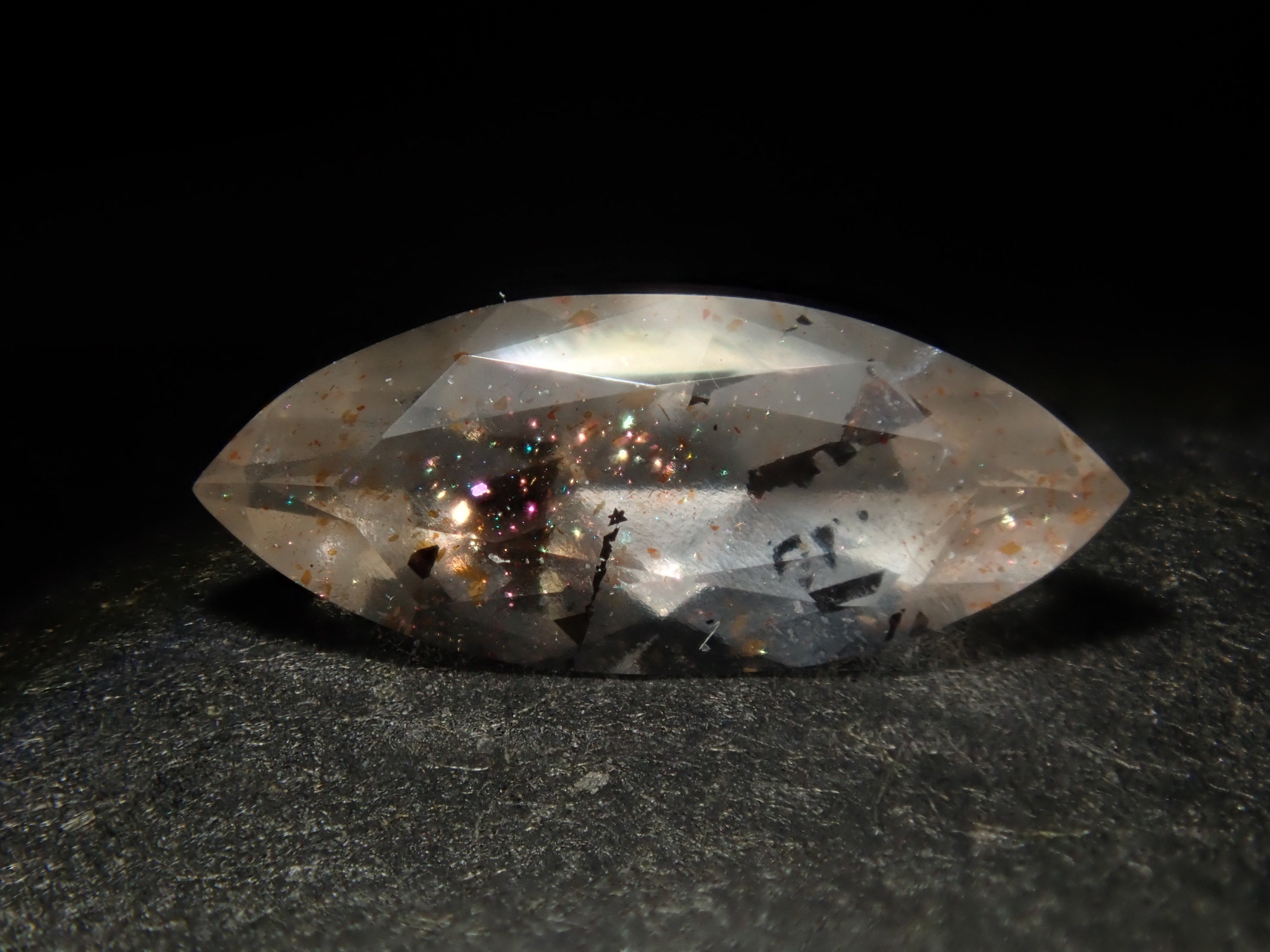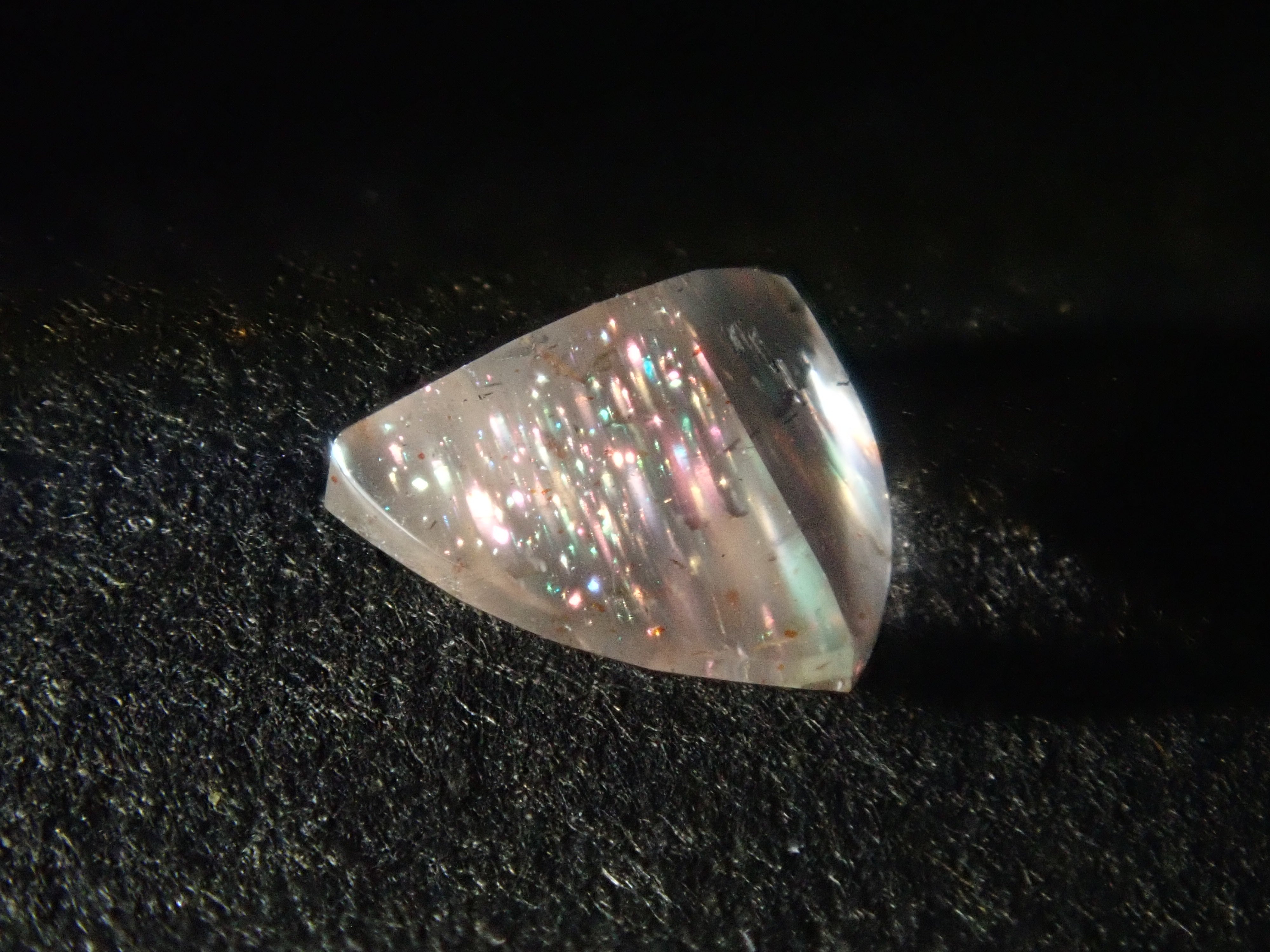 彩虹格子日光石據說是所有日光石中最稀有的一種。它據說是最稀有的日光石,擁有月光石般的彩虹暈彩效果。它屬於長石族的正長石類型,被稱為彩虹格子日光石(商業名稱)。