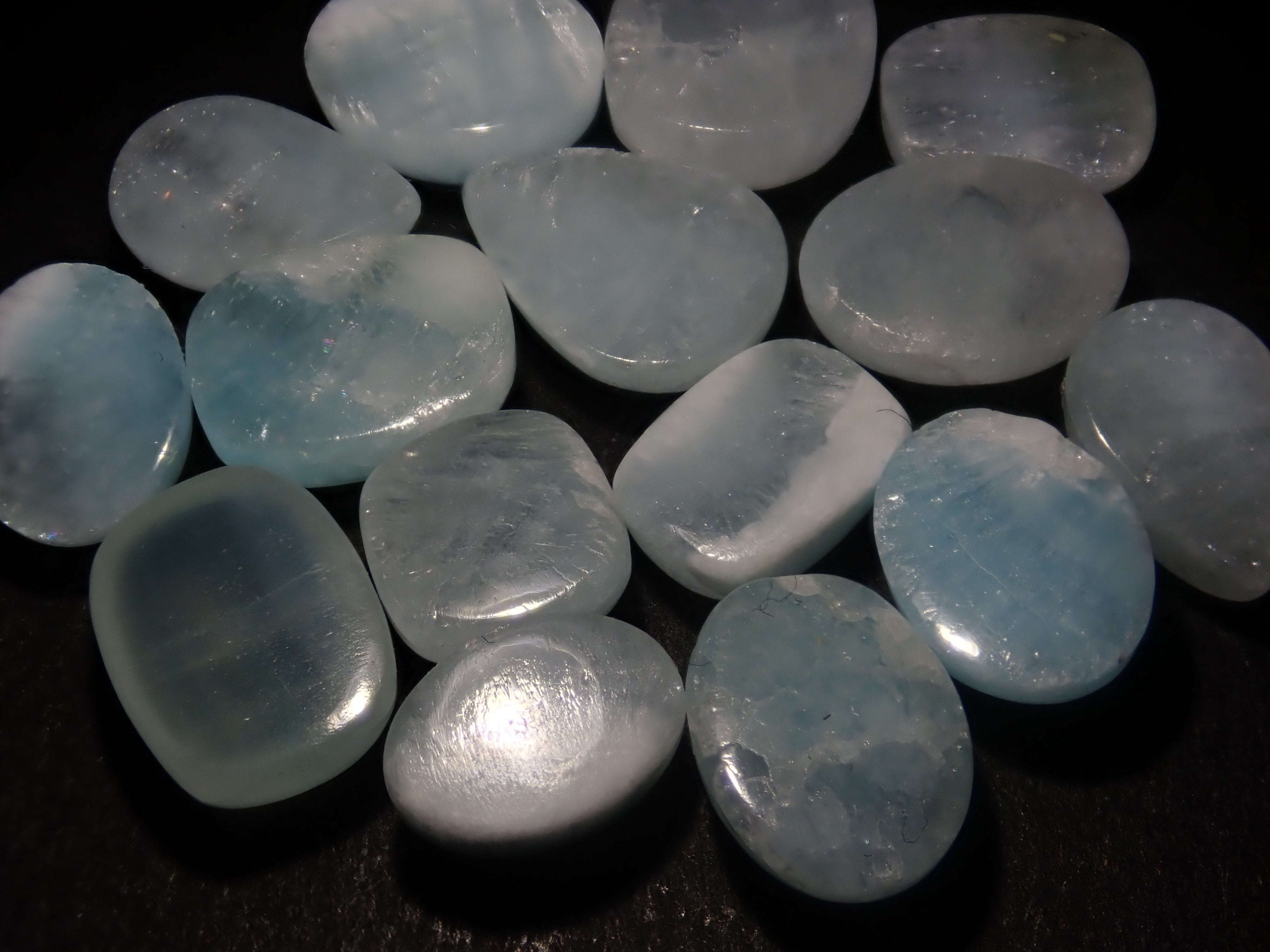 您將收到照片中 15 顆寶石中的一顆。這些寶石均為凸圓形切割,平均尺寸為 2 克拉,尺寸驚人。