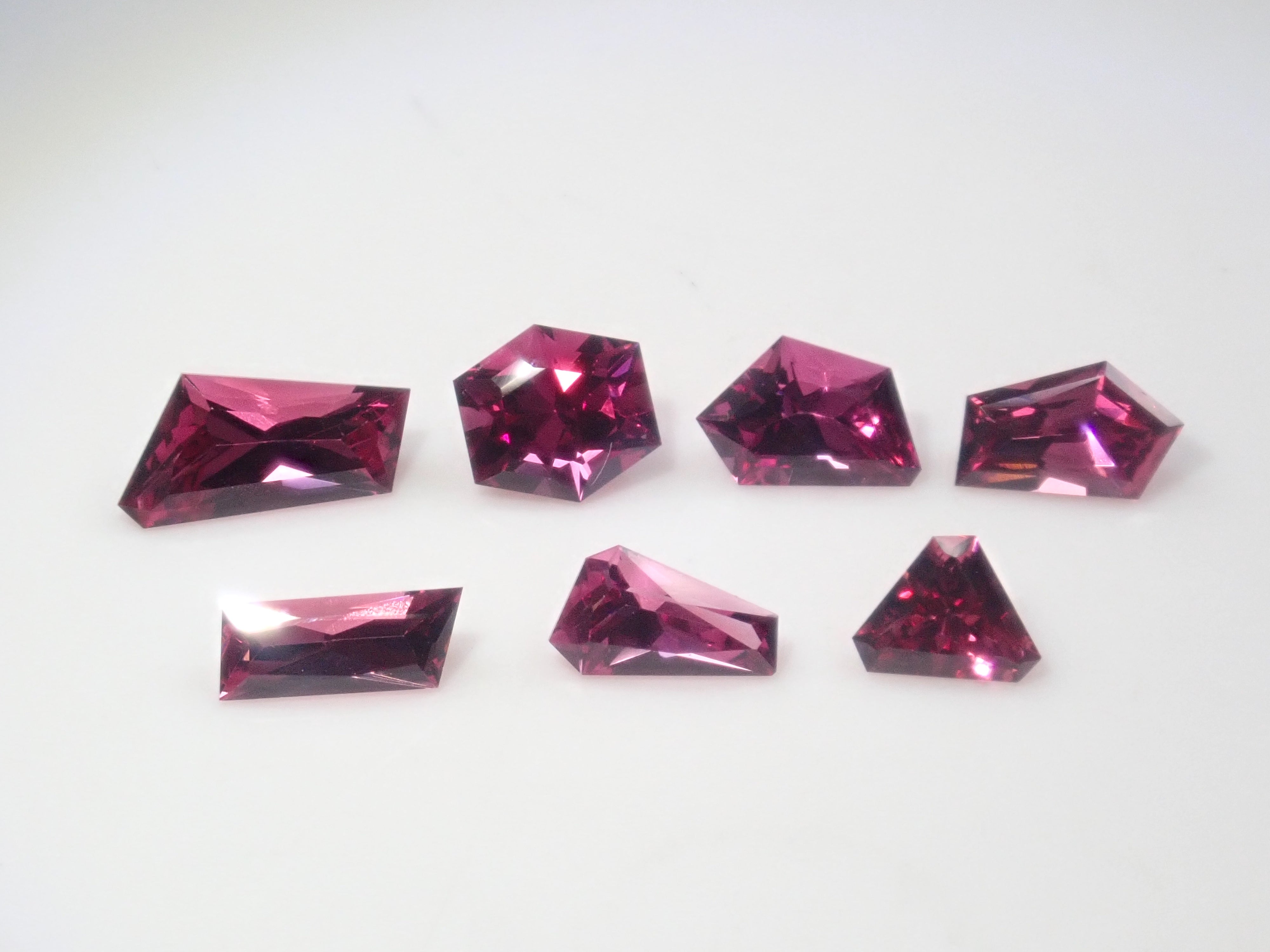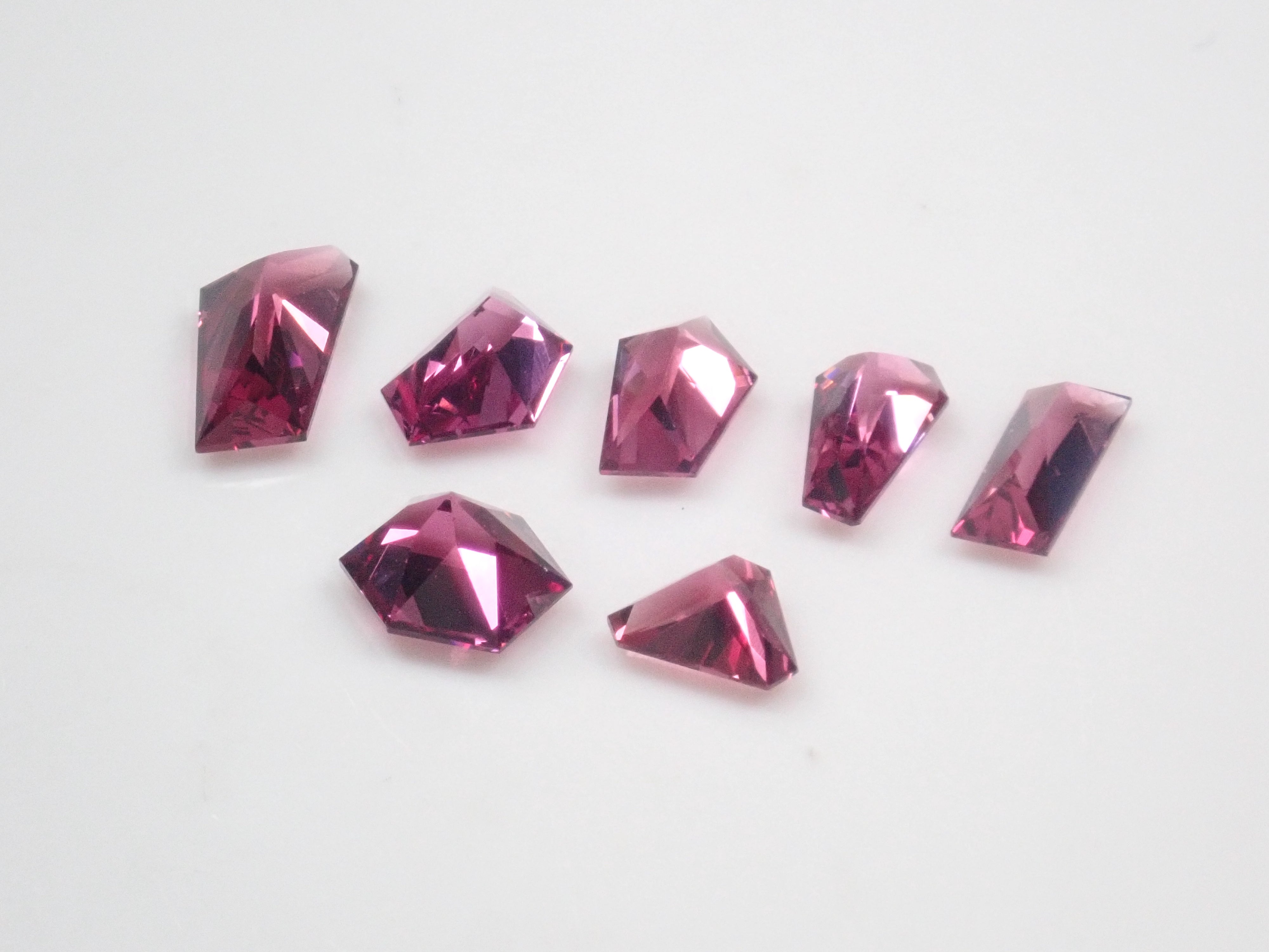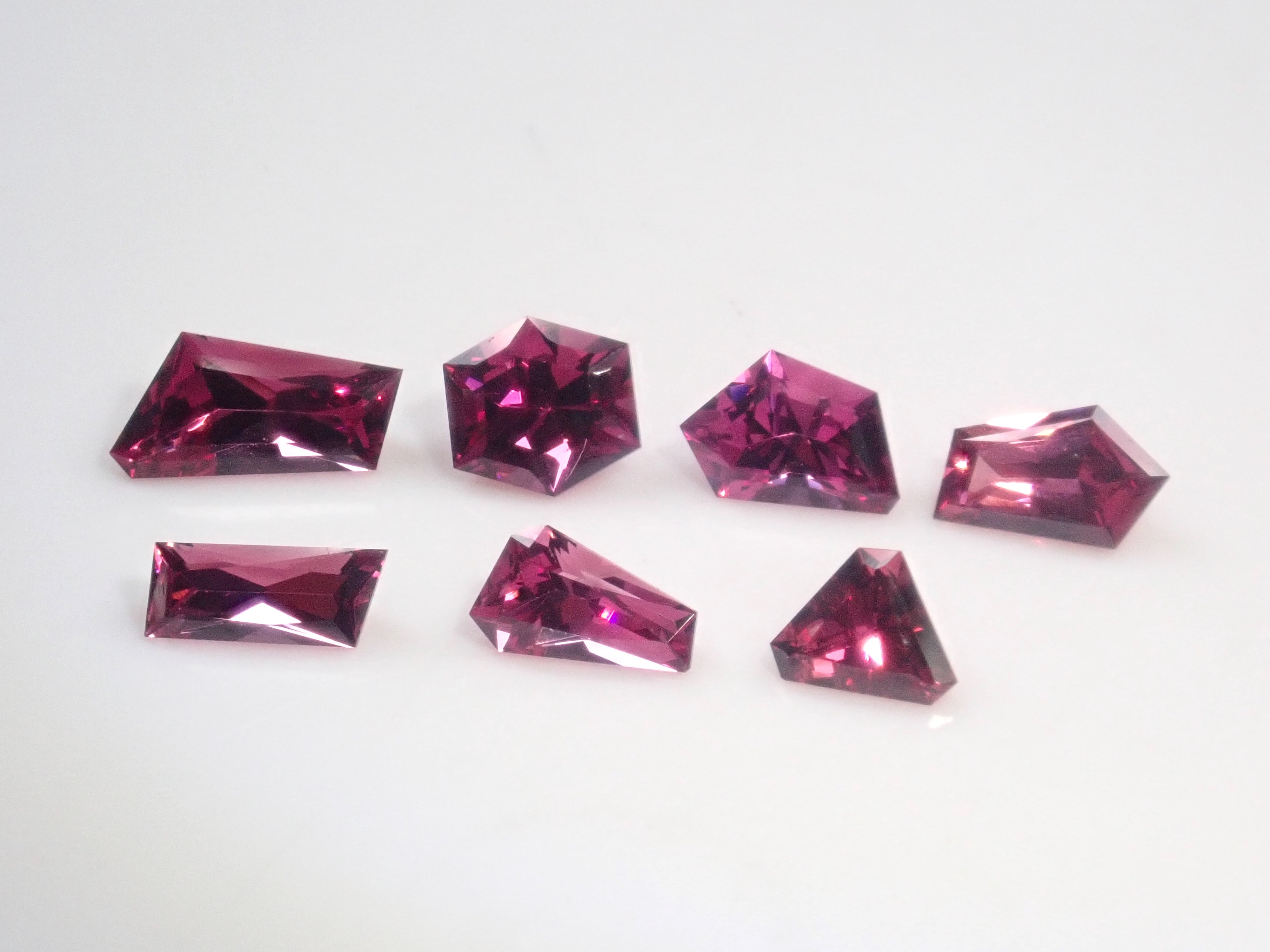 這是一顆坦尚尼亞玫瑰榴石,由美國切割師KEN切割。其切工獨特,透明度高,色澤鮮豔。平均尺寸為0.65克拉。