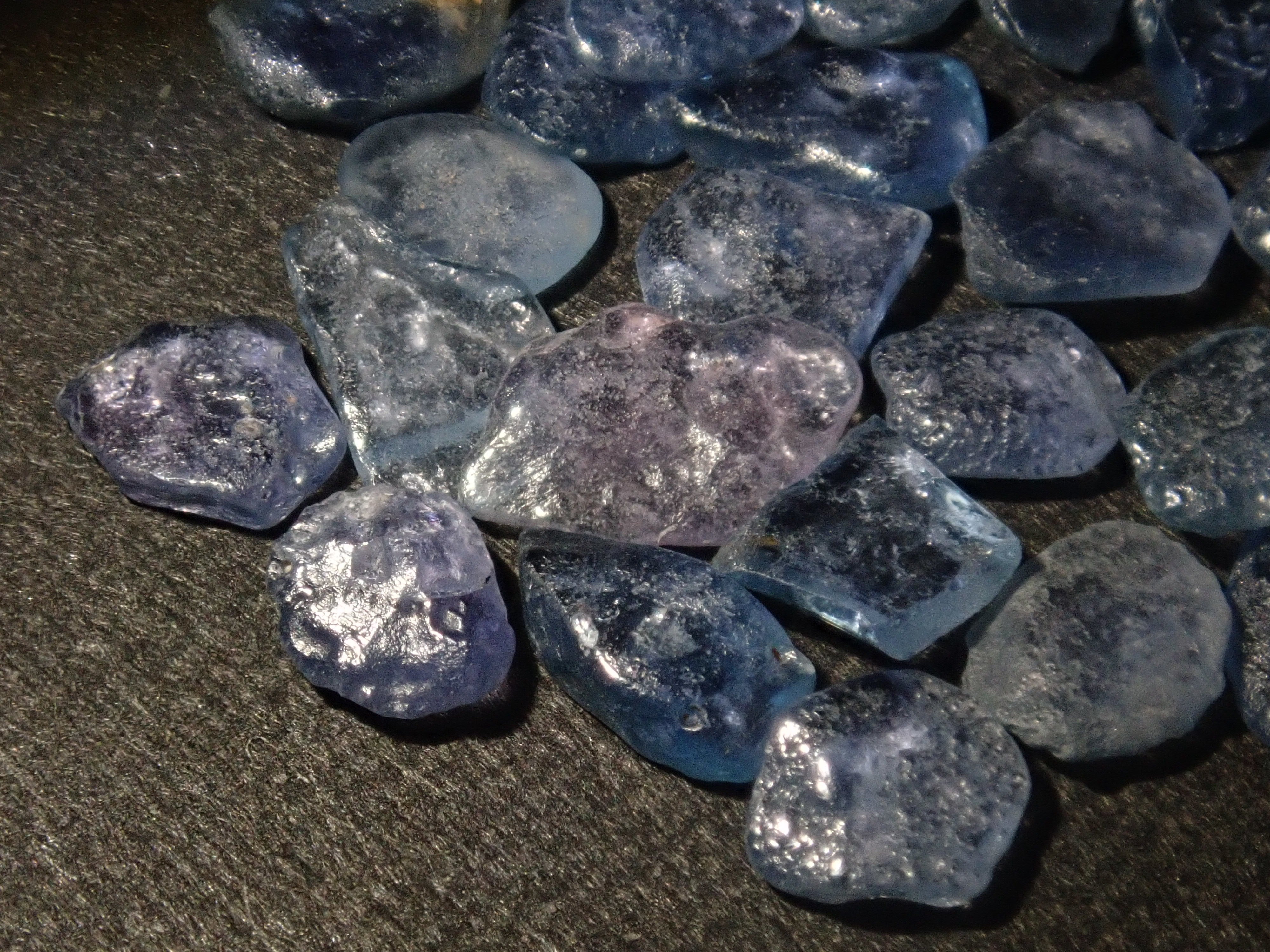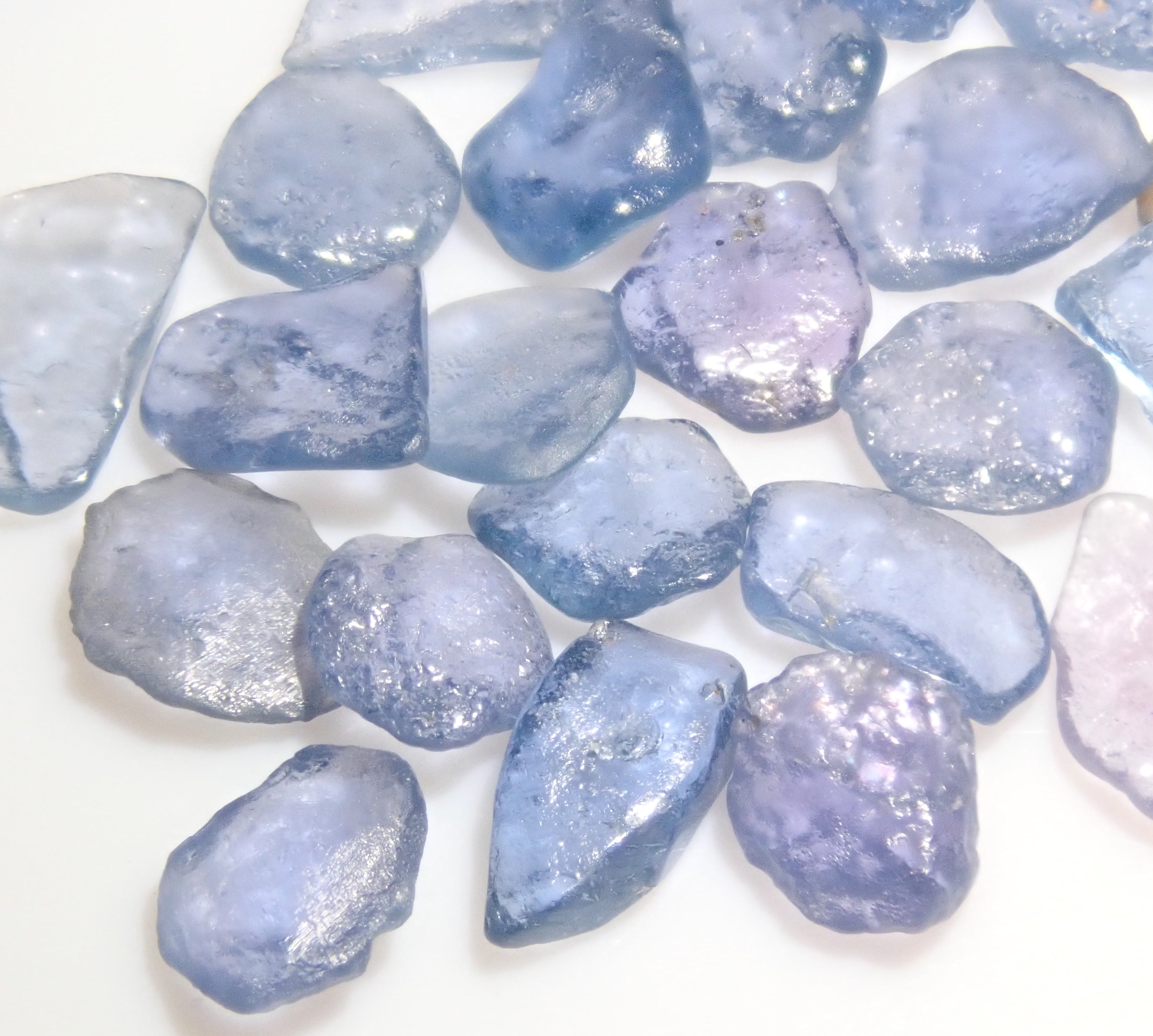 這是一顆未經加熱的約戈藍寶石原石,於2025年從美國圖森運抵。美國約戈藍寶石的特點是其原石表面扁平,這顆原石也具備這項特色。它的平均重量為0.25克拉。您將會收到照片中25顆原石中的一顆。