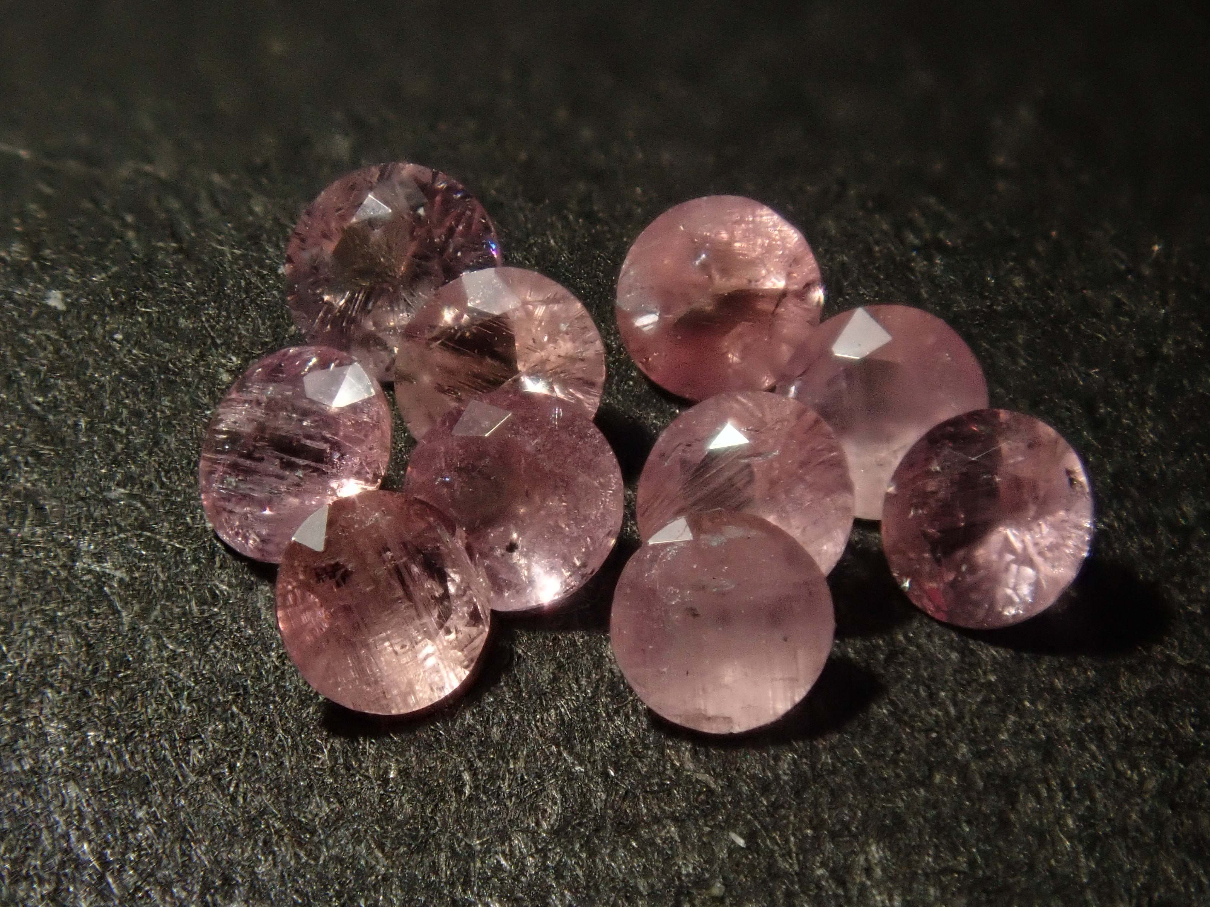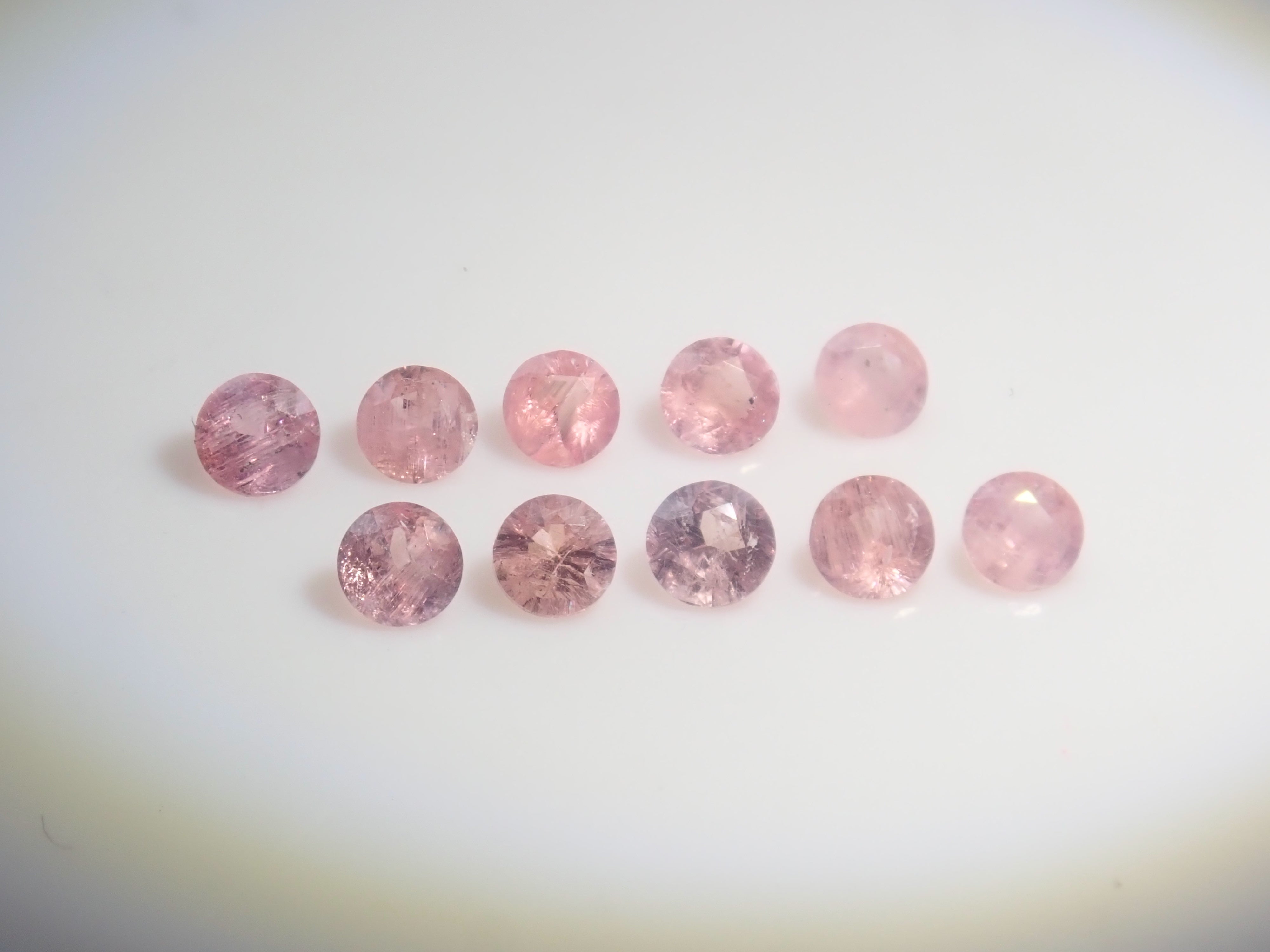 這是一塊圓形切割的鬆散寶石,約 2 毫米,由斯里蘭卡的一塊粗石——碧璽打磨而成。碧璽(Pezotite)並非廣泛分佈,因此也建議用作珠寶的配石。如圖所示,僅10顆寶石。